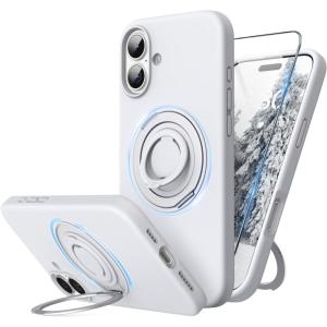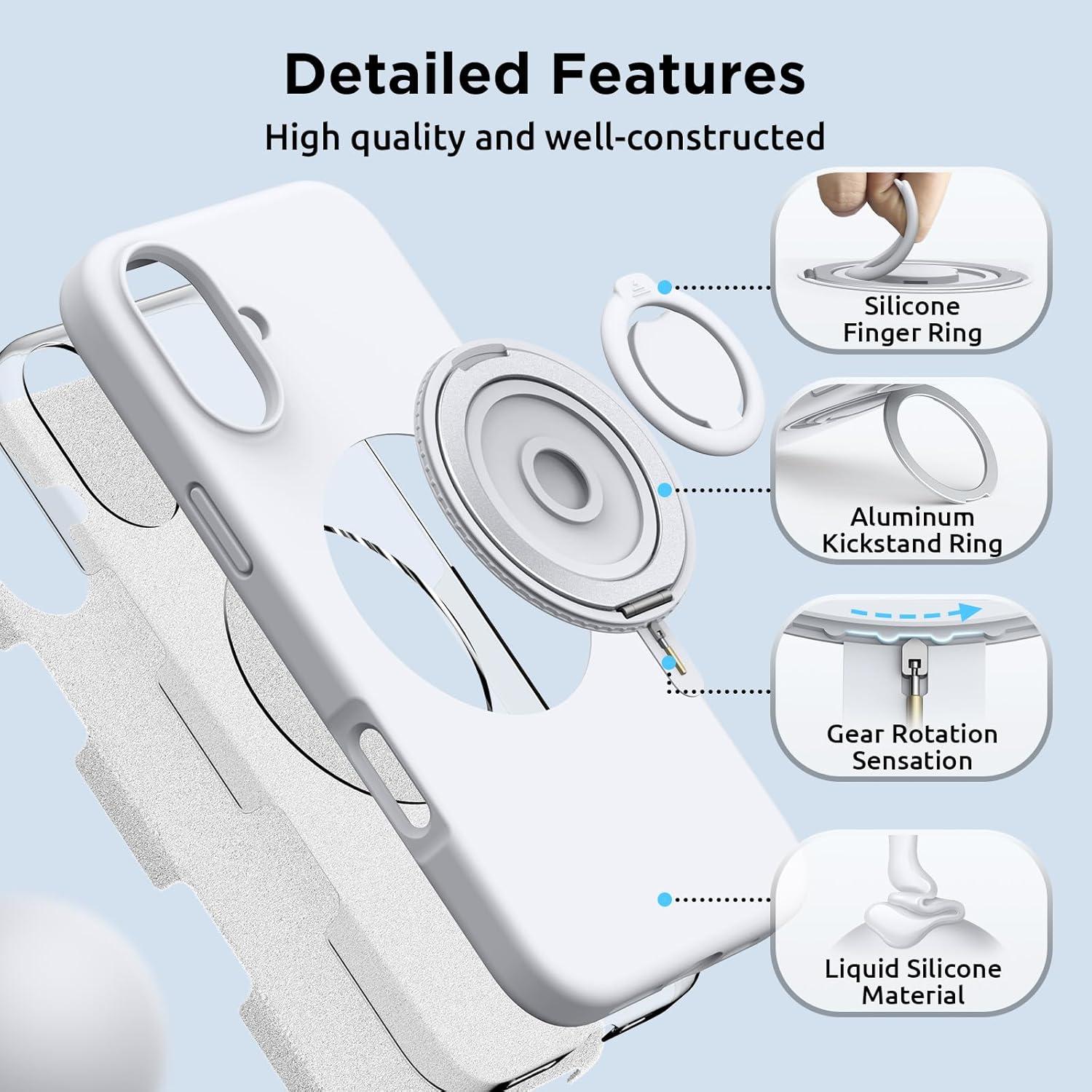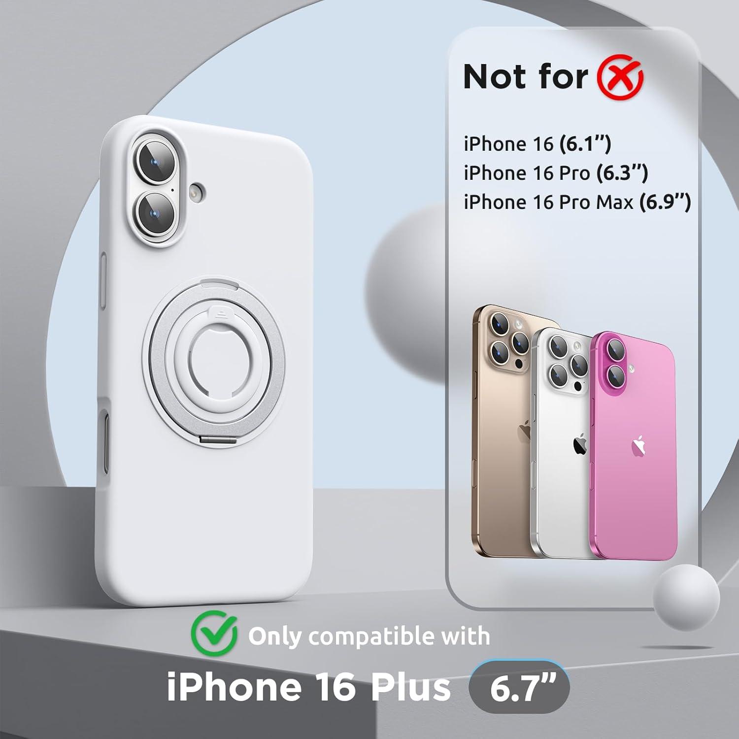 SURPHY 360° Magnetic Stand for iPhone 16 Plus Case with Finger Ring, Compatible with MagSafe, with Screen Protector, Ring Stand and Finger Phone Case for 16 Plus 6.7 inch 2024, Frosted Black(White Titanium)