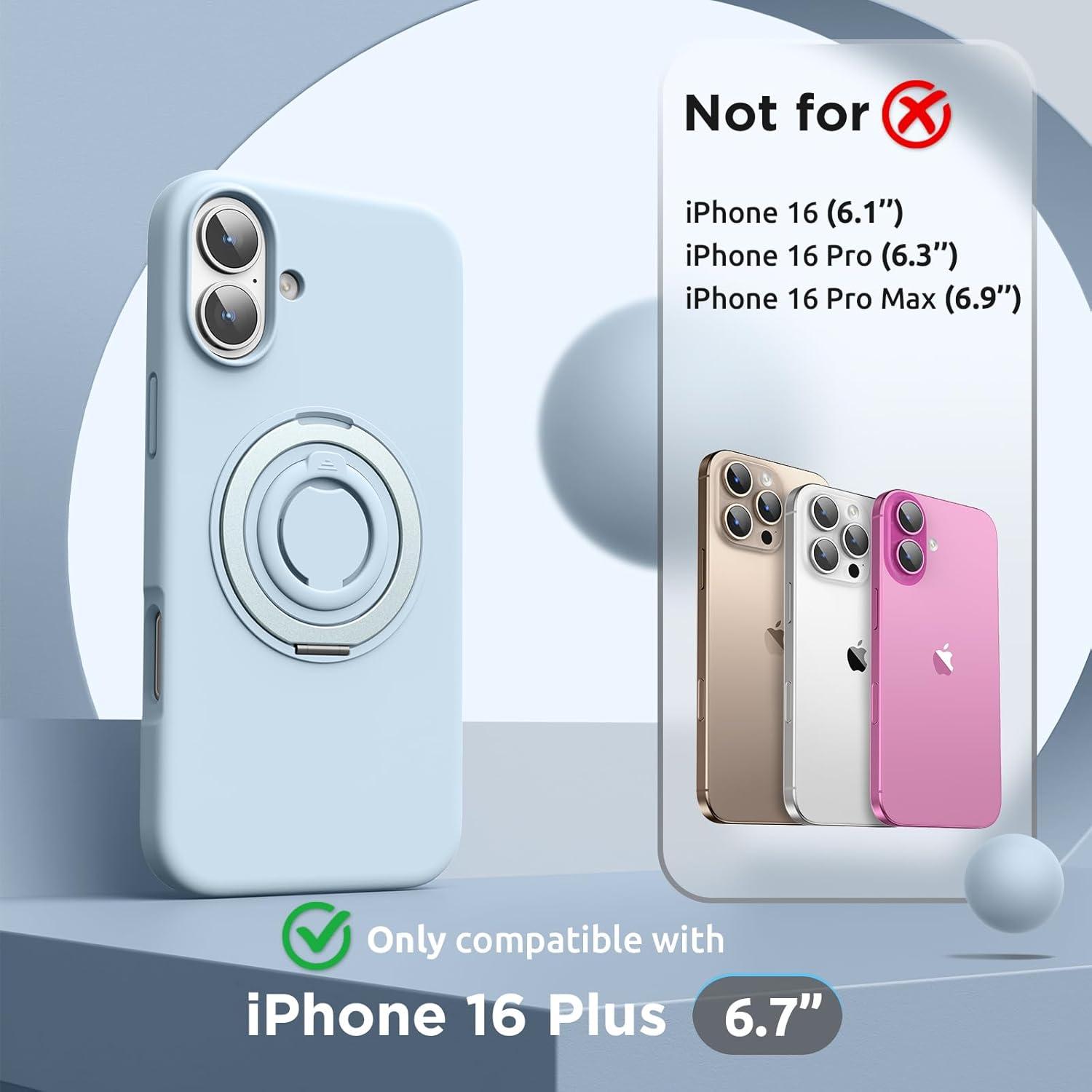 SURPHY 360° Magnetic Stand for iPhone 16 Plus Case with Finger Ring, Compatible with MagSafe, with Screen Protector, Ring Stand and Finger Phone Case for 16 Plus 6.7 inch 2024, Frosted Black(Cloud Blue)