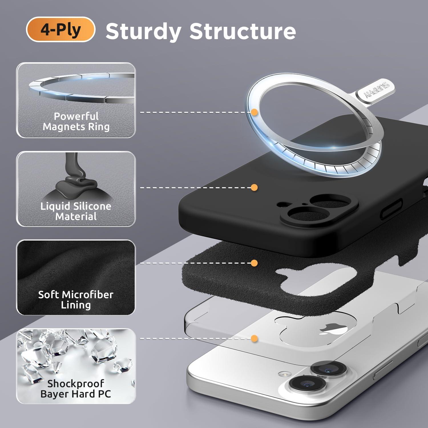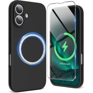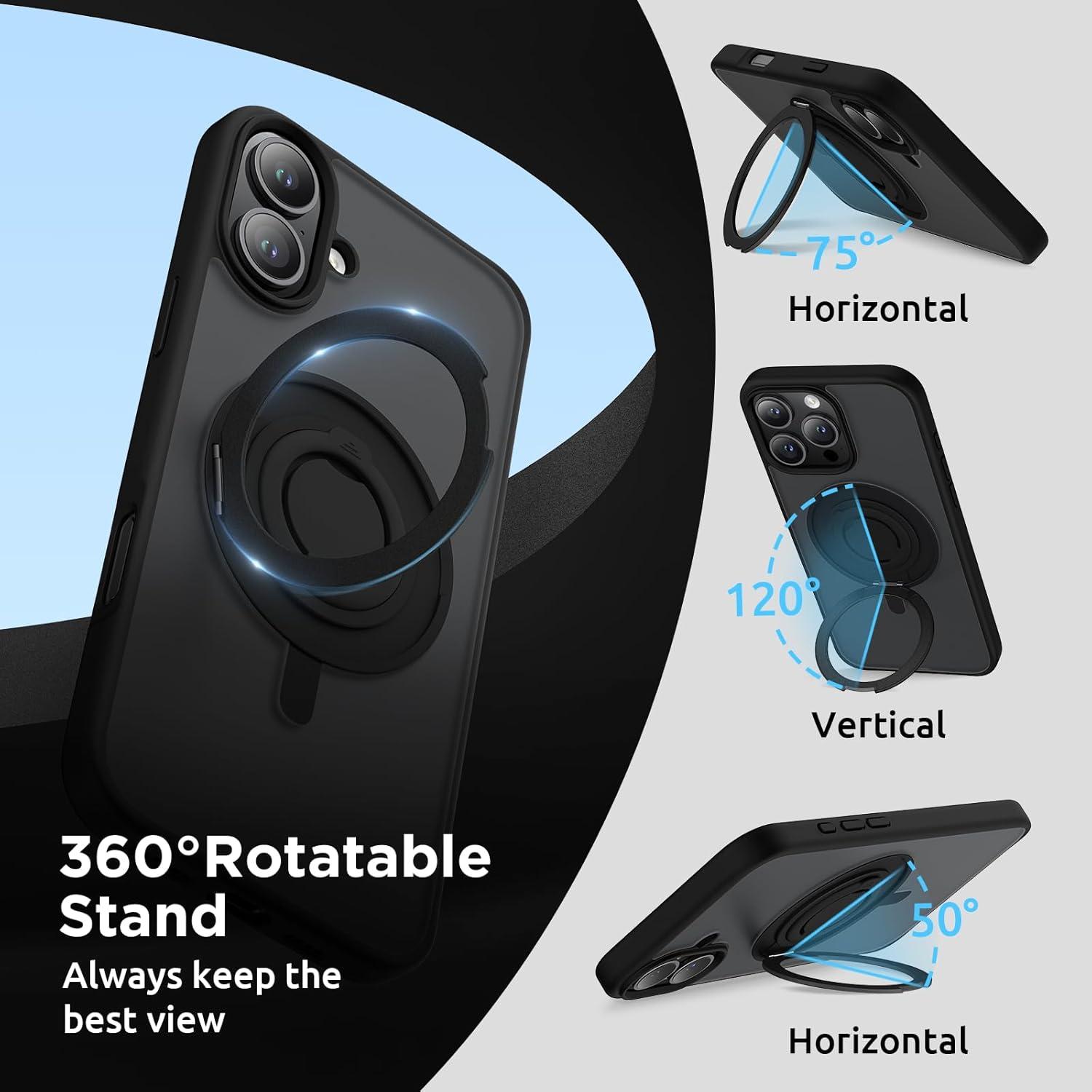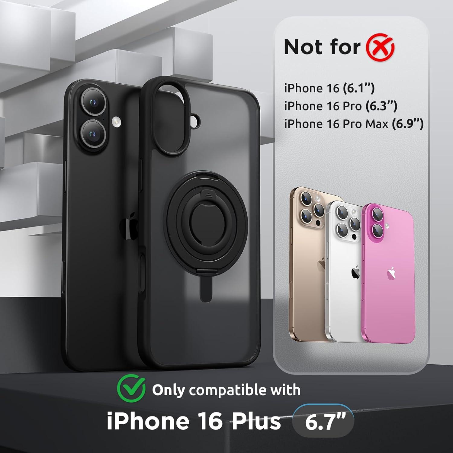 SURPHY 360° Magnetic Stand for iPhone 16 Plus Case with Finger Ring, Compatible with MagSafe, with Screen Protector, Ring Stand and Finger Phone Case for 16 Plus 6.7 inch 2024, Frosted Black(Frosted Black)