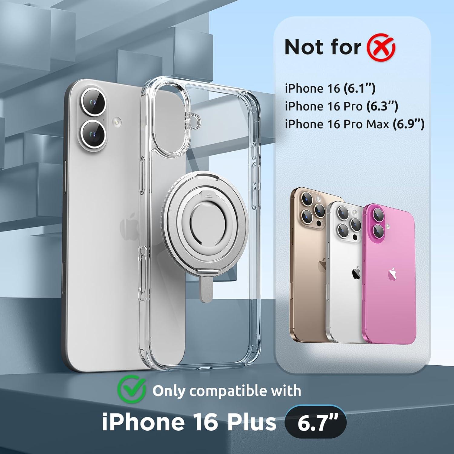 SURPHY 360° Magnetic Stand for iPhone 16 Plus Case with Finger Ring, Compatible with MagSafe, with Screen Protector, Ring Stand and Finger Phone Case for 16 Plus 6.7 inch 2024, Frosted Black(Clear)