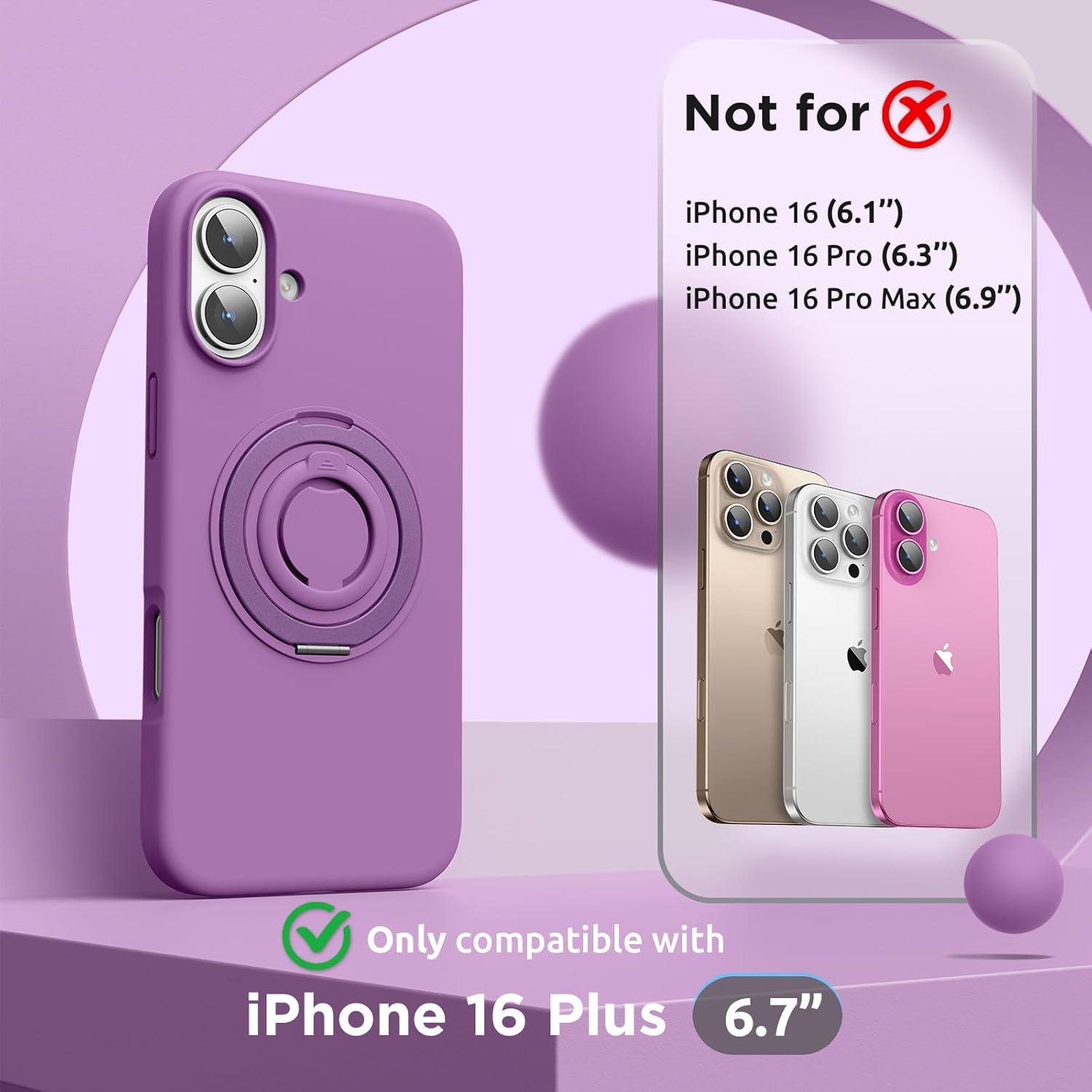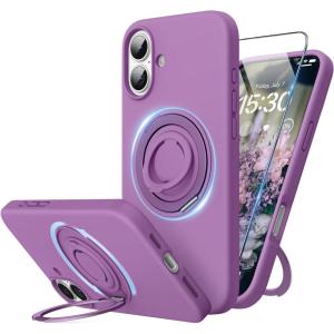 SURPHY 360° Magnetic Stand for iPhone 16 Plus Case with Finger Ring, Compatible with MagSafe, with Screen Protector, Ring Stand and Finger Phone Case for 16 Plus 6.7 inch 2024, Frosted Black(Orchid Purple)