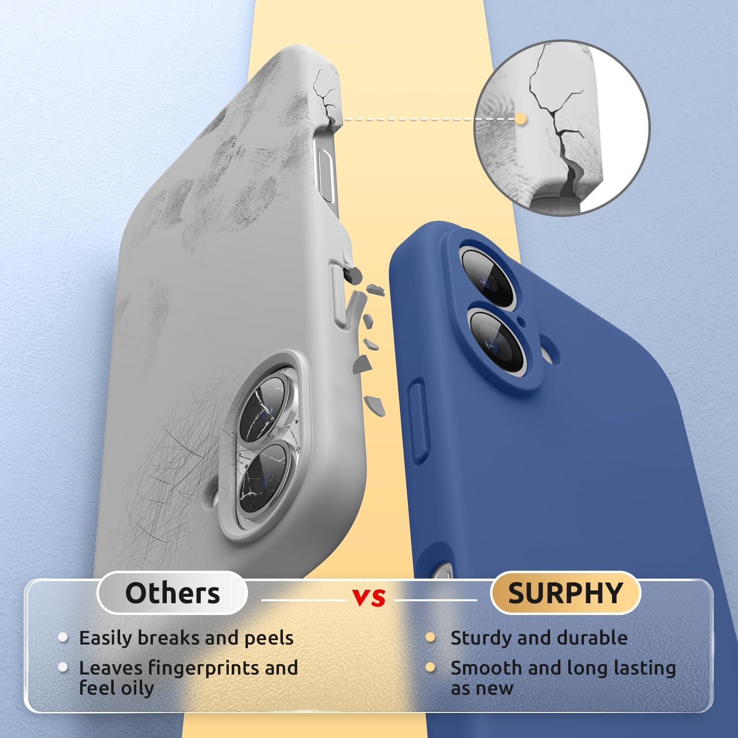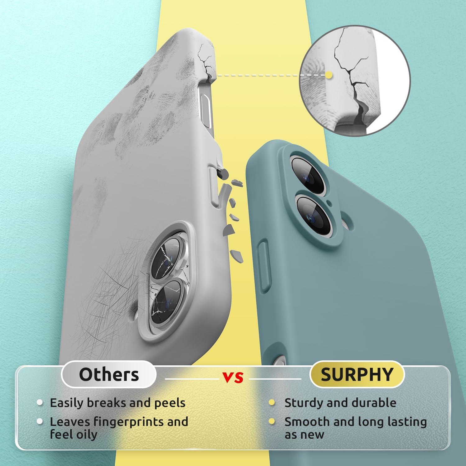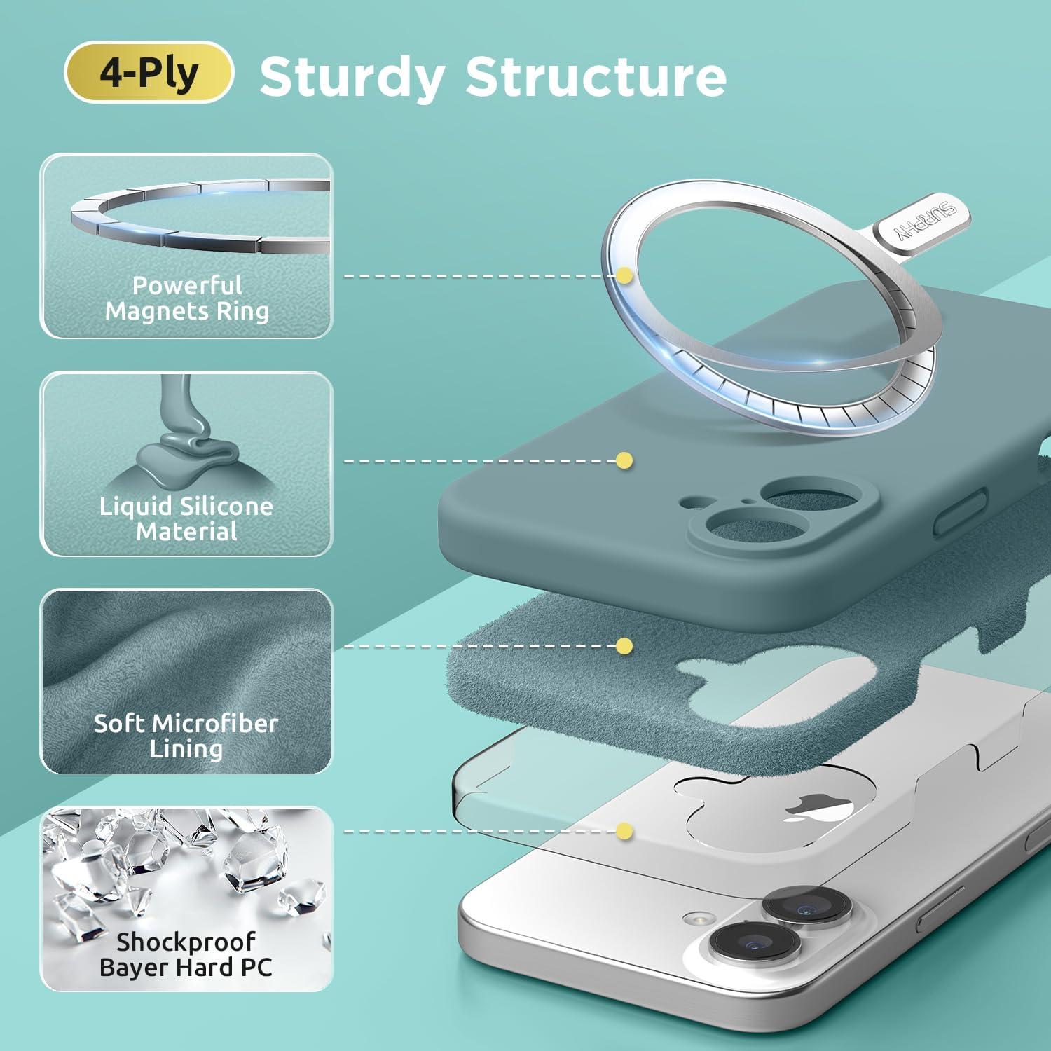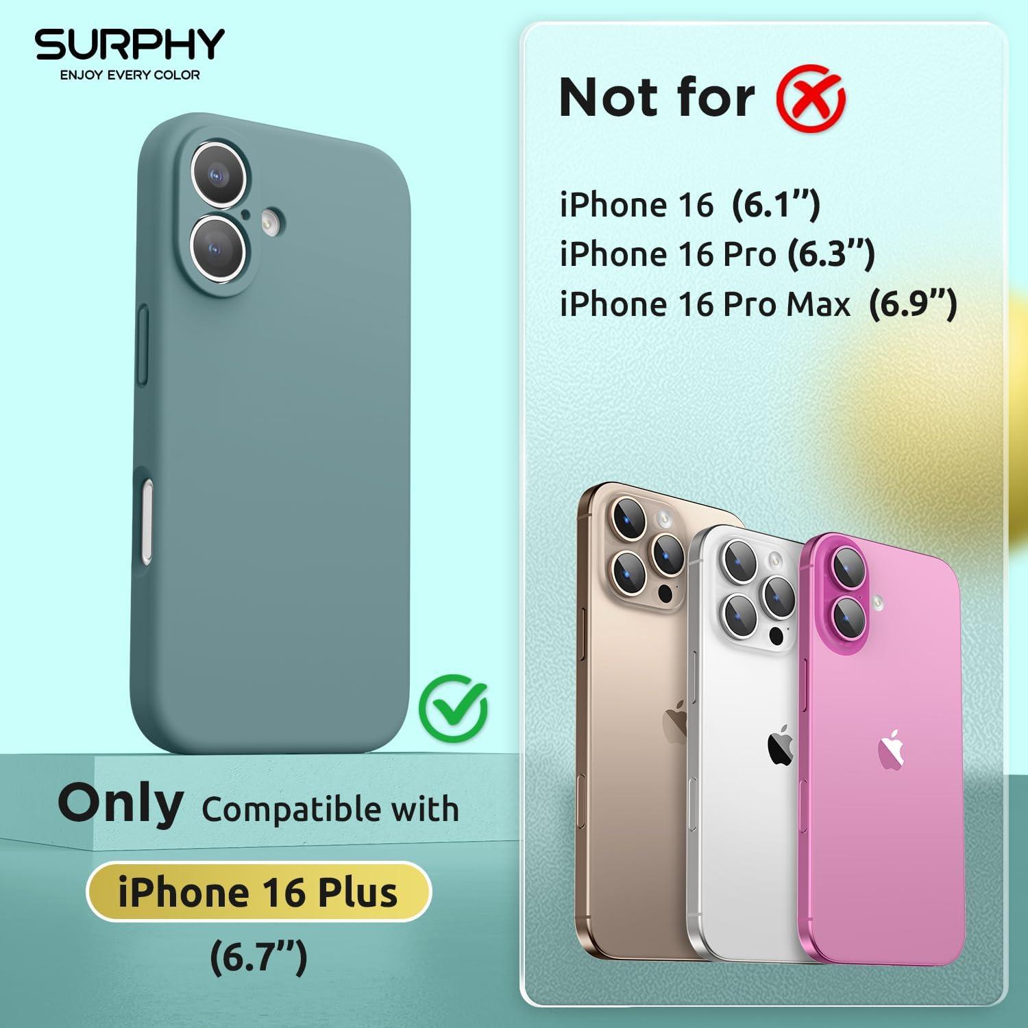 SURPHY Designed for iPhone 16 Plus Case Compatible with MagSafe (6.7 inch 2024), with Screen Protector Liquid Silicone Phone Case (Camera Protective, Soft Microfiber Lining), Soft Mint(Denim)
