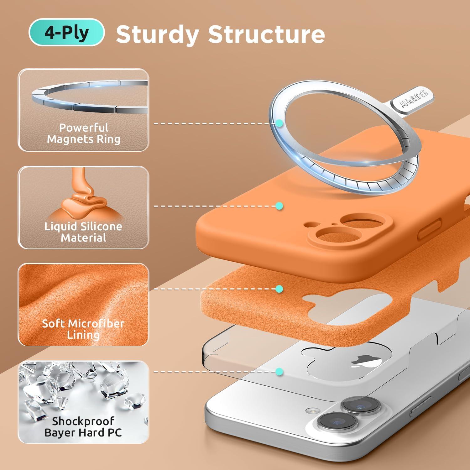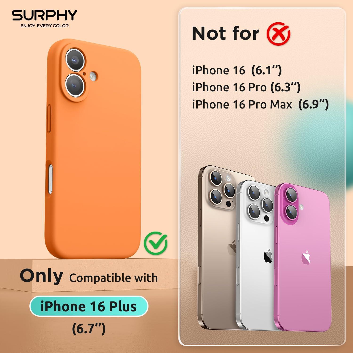 SURPHY Designed for iPhone 16 Plus Case Compatible with MagSafe (6.7 inch 2024), with Screen Protector Liquid Silicone Phone Case (Camera Protective, Soft Microfiber Lining), Soft Mint(Marigold Orange)