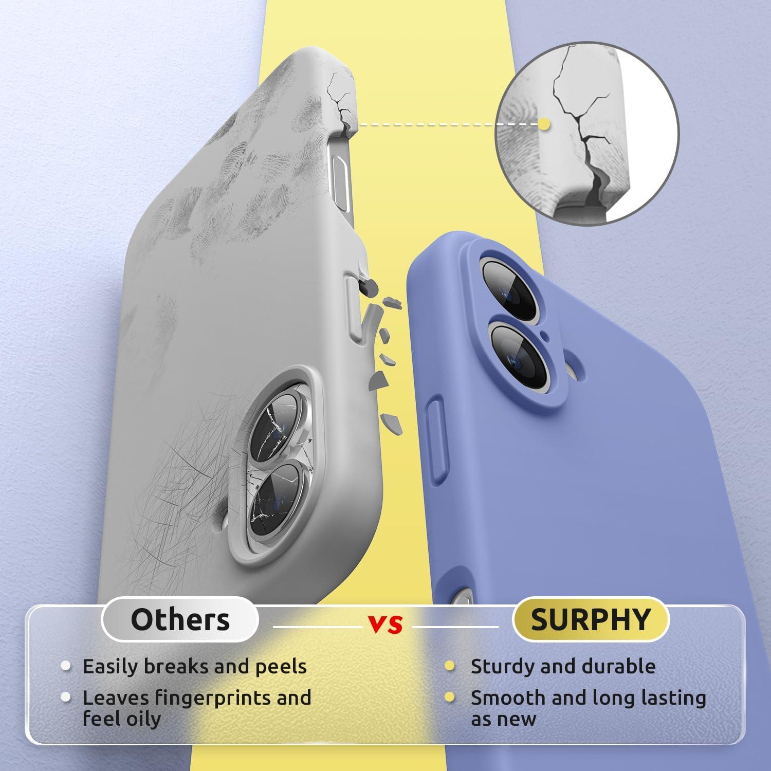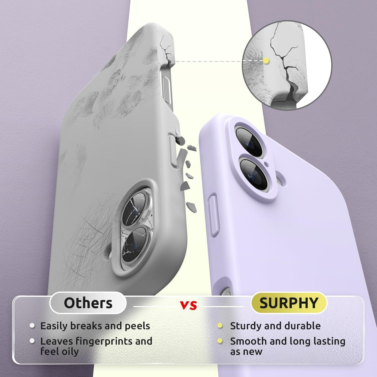 SURPHY Designed for iPhone 16 Plus Case Compatible with MagSafe (6.7 inch 2024), with Screen Protector Liquid Silicone Phone Case (Camera Protective, Soft Microfiber Lining), Soft Mint(Lavender Gray)