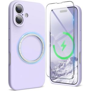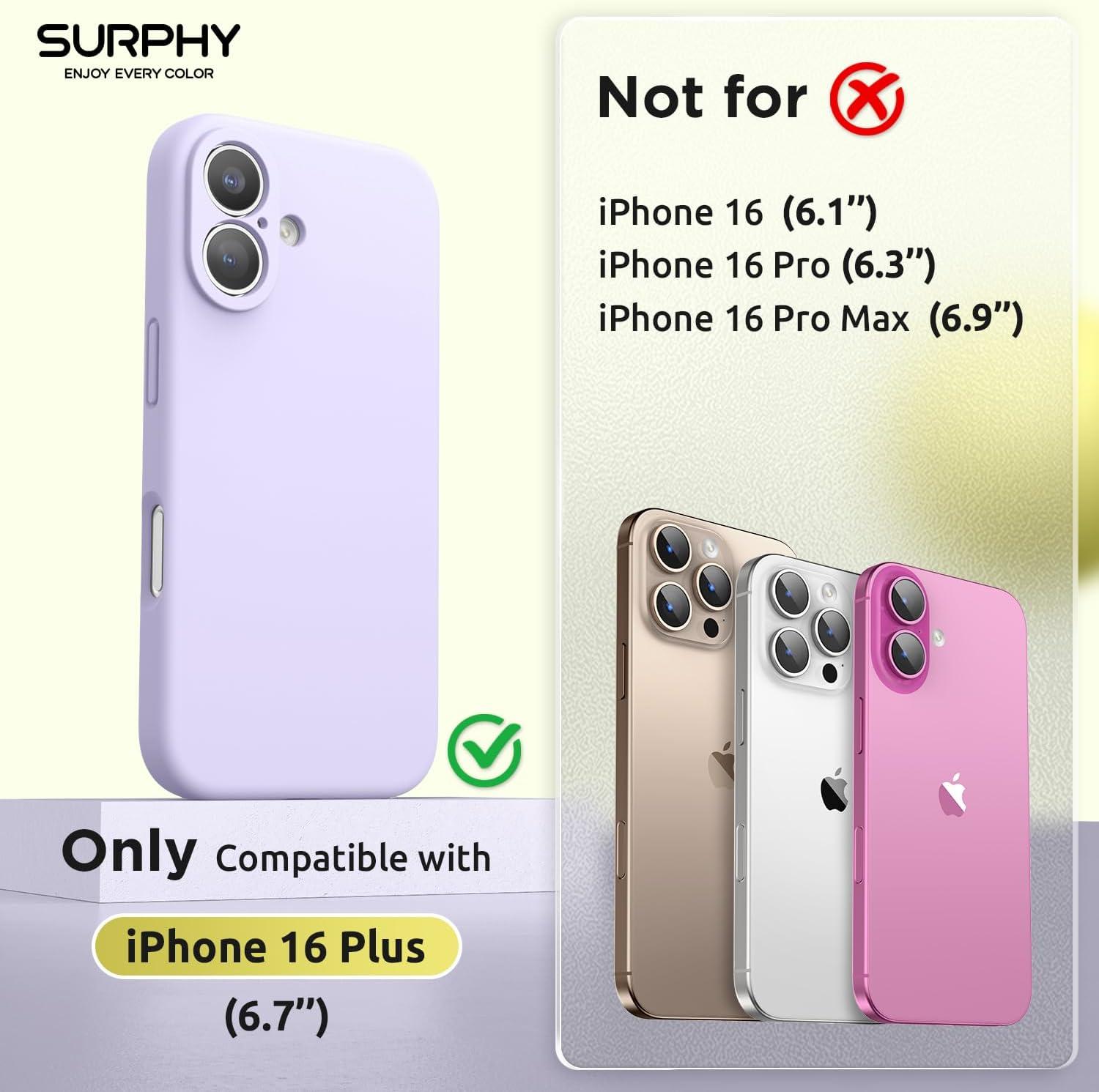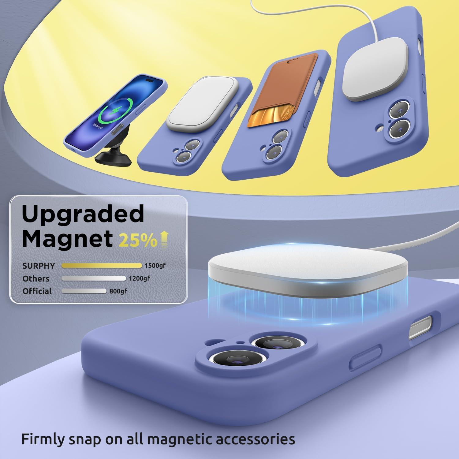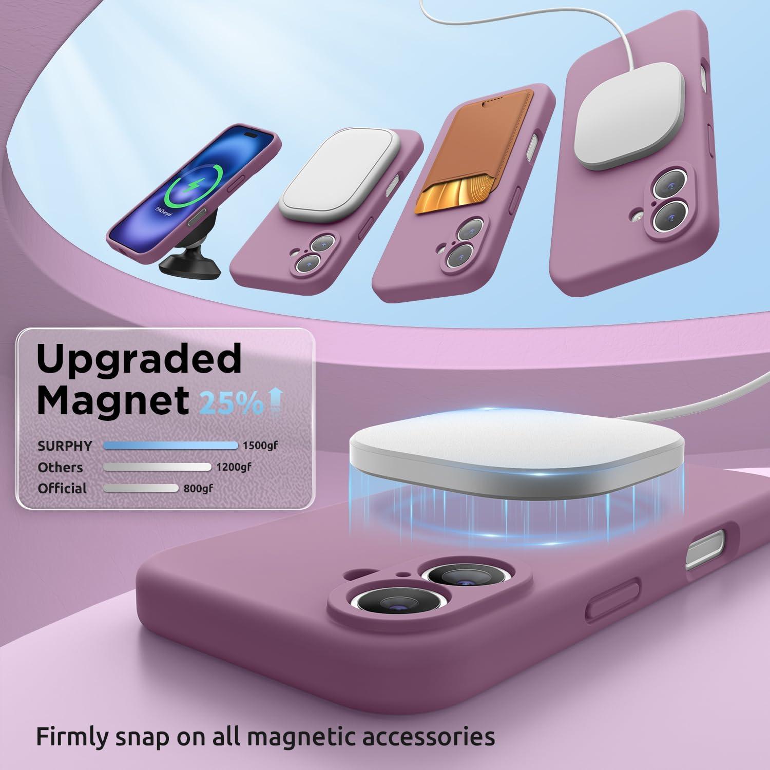 SURPHY Designed for iPhone 16 Plus Case Compatible with MagSafe (6.7 inch 2024), with Screen Protector Liquid Silicone Phone Case (Camera Protective, Soft Microfiber Lining), Soft Mint(Lilac Purple)