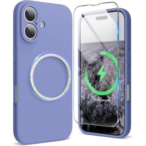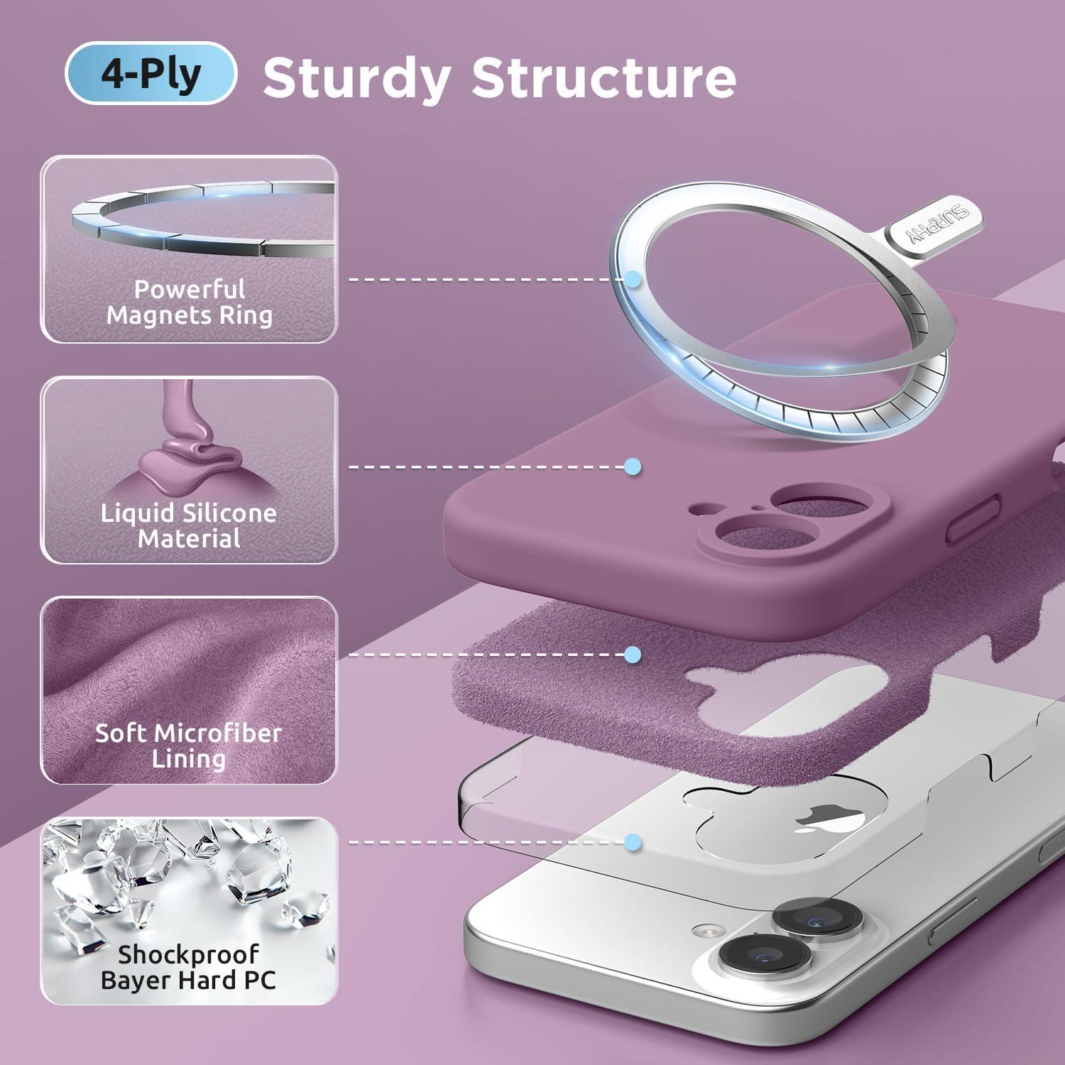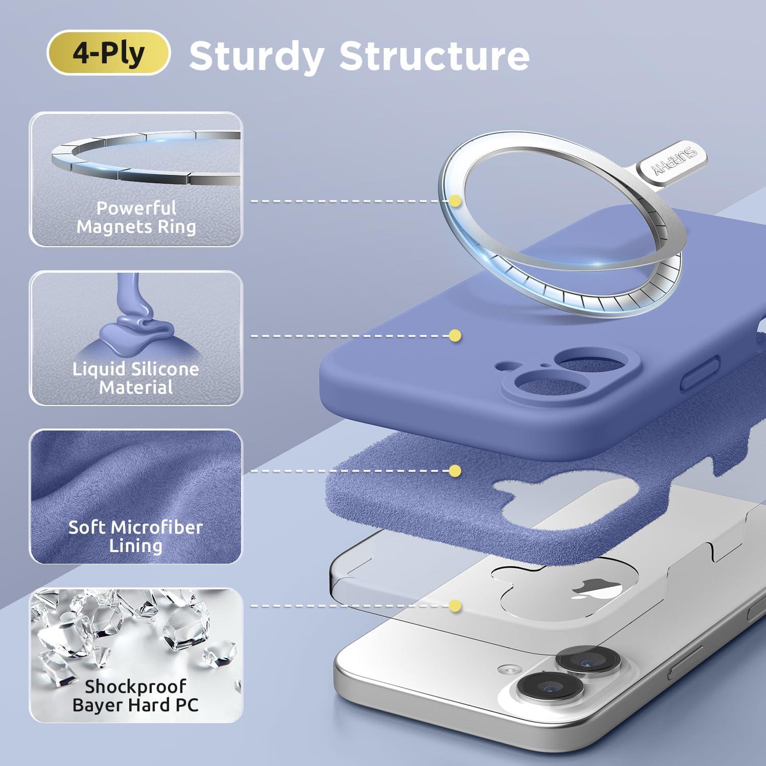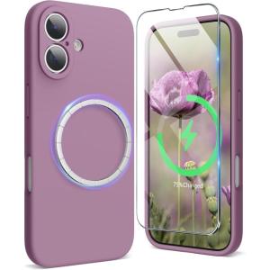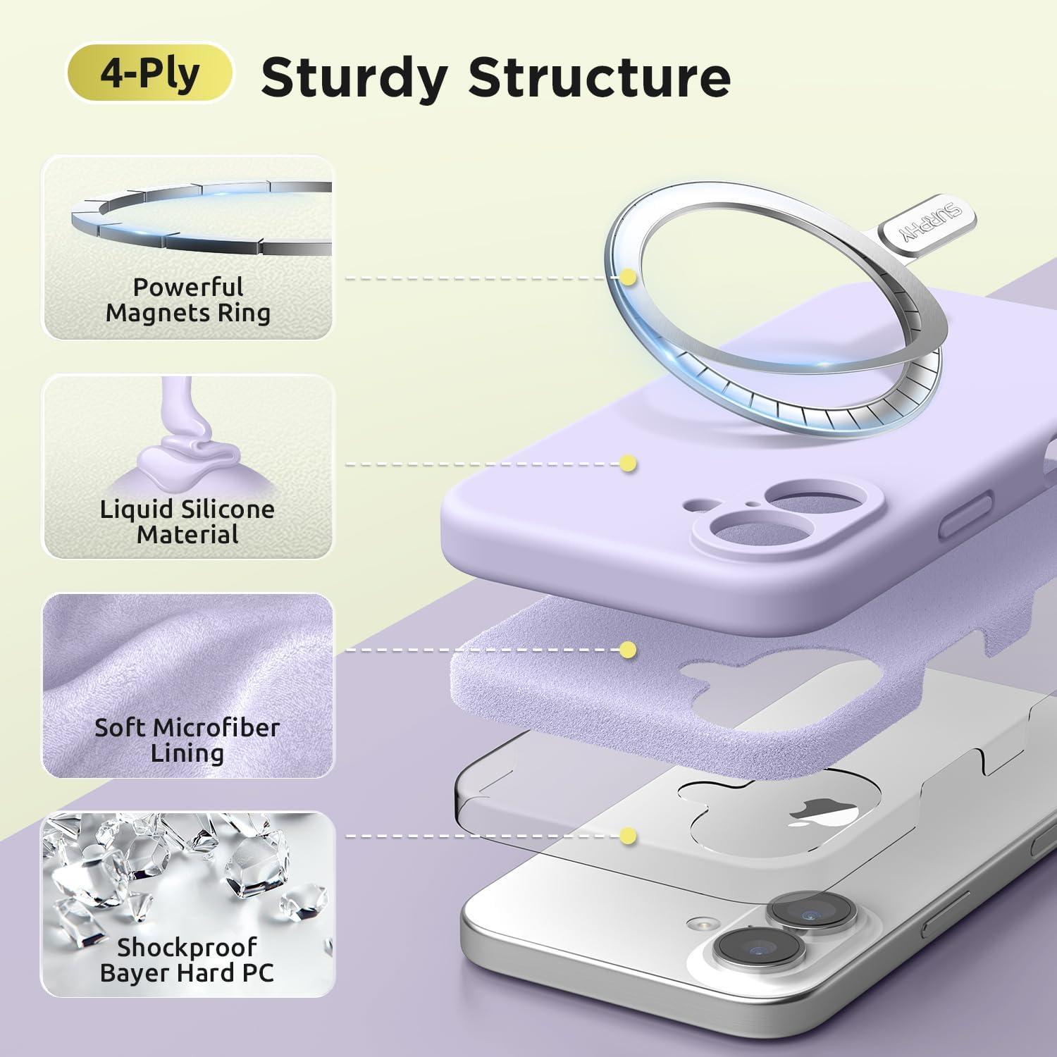 SURPHY Designed for iPhone 16 Plus Case Compatible with MagSafe (6.7 inch 2024), with Screen Protector Liquid Silicone Phone Case (Camera Protective, Soft Microfiber Lining), Soft Mint(Lilac Purple)