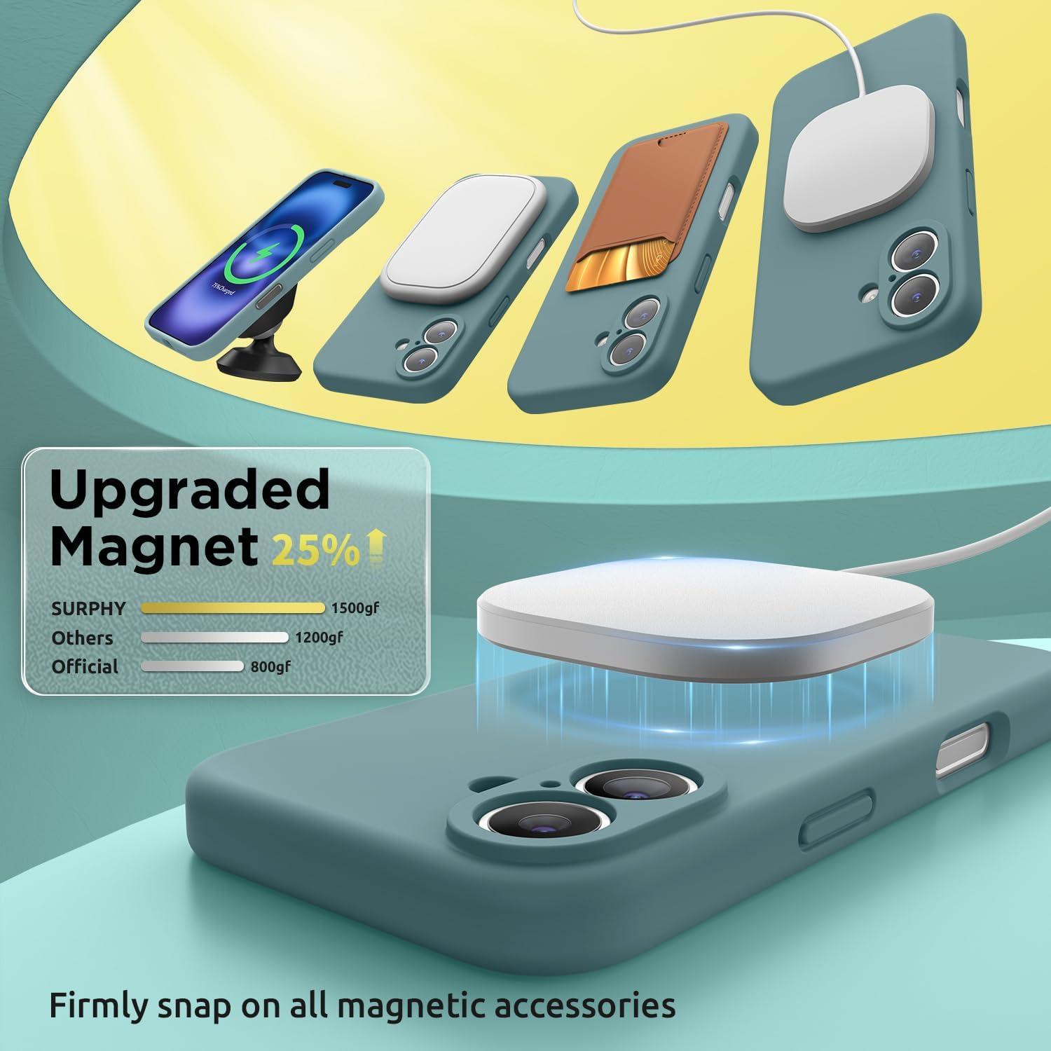 SURPHY Designed for iPhone 16 Plus Case Compatible with MagSafe (6.7 inch 2024), with Screen Protector Liquid Silicone Phone Case (Camera Protective, Soft Microfiber Lining), Soft Mint(Blue Jay)