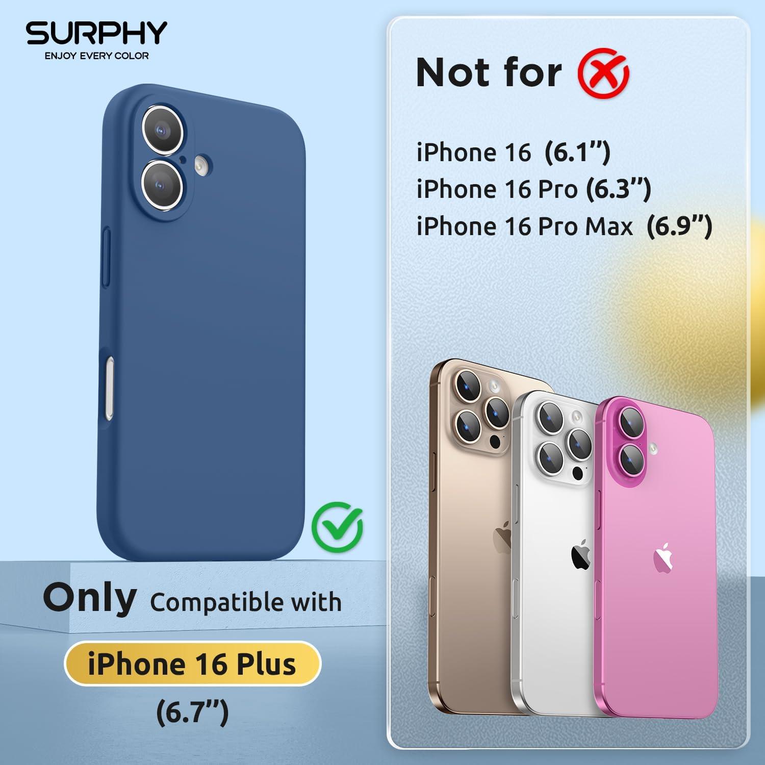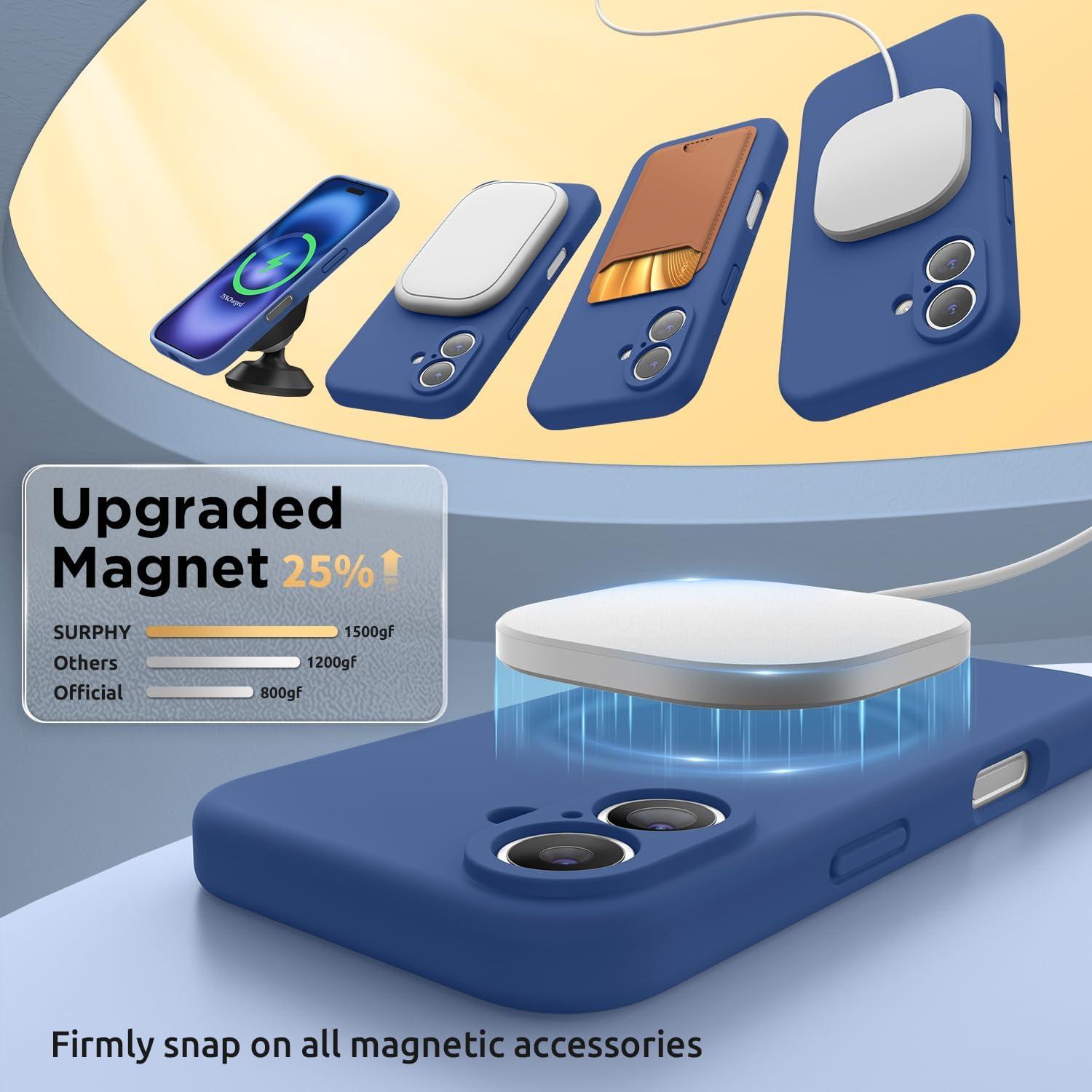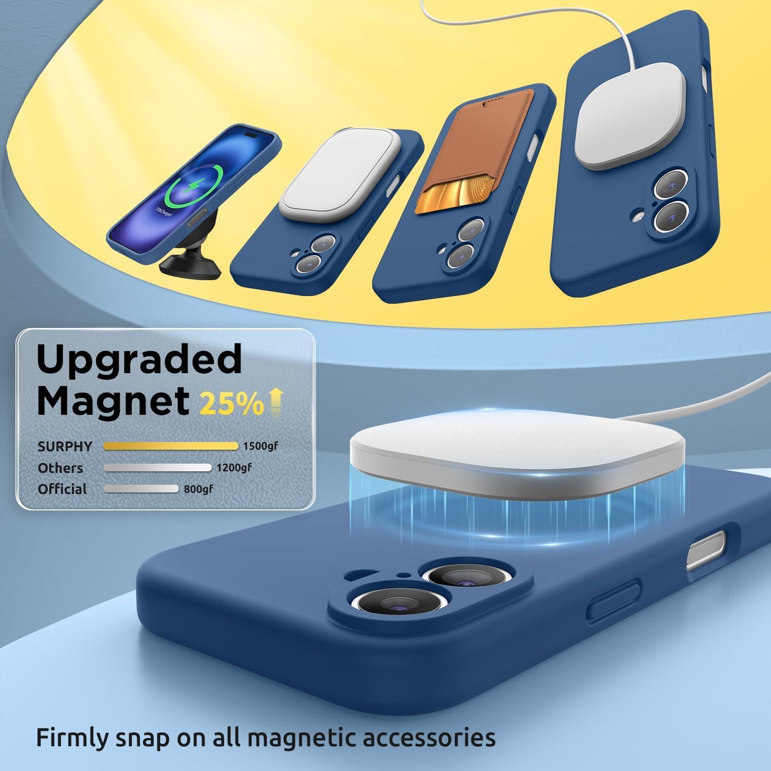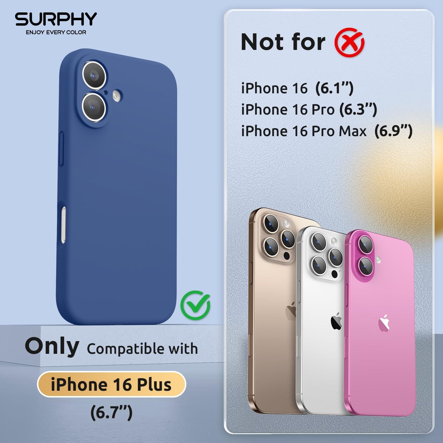SURPHY Designed for iPhone 16 Plus Case Compatible with MagSafe (6.7 inch 2024), with Screen Protector Liquid Silicone Phone Case (Camera Protective, Soft Microfiber Lining), Soft Mint(Midnight Blue)