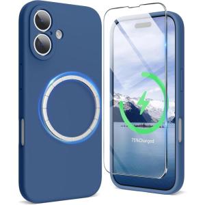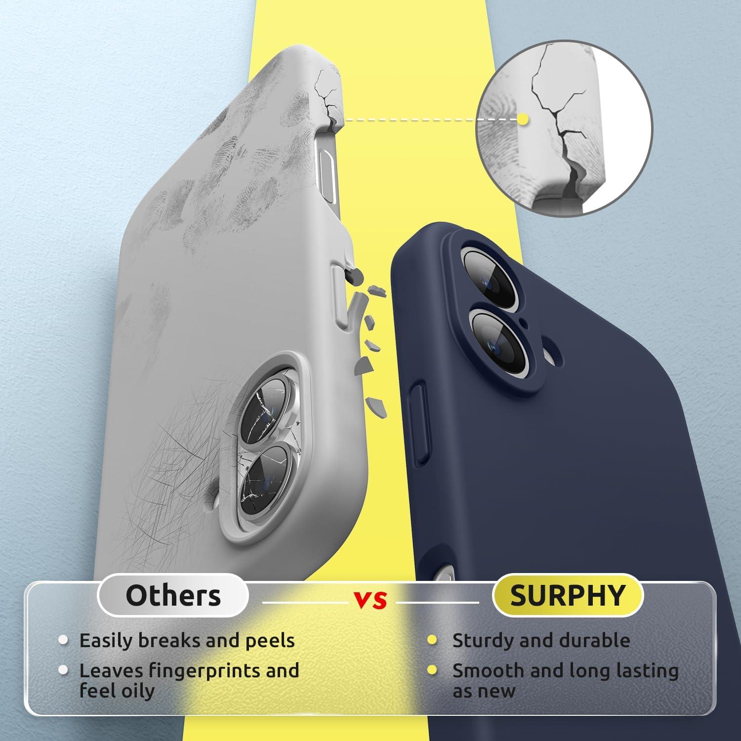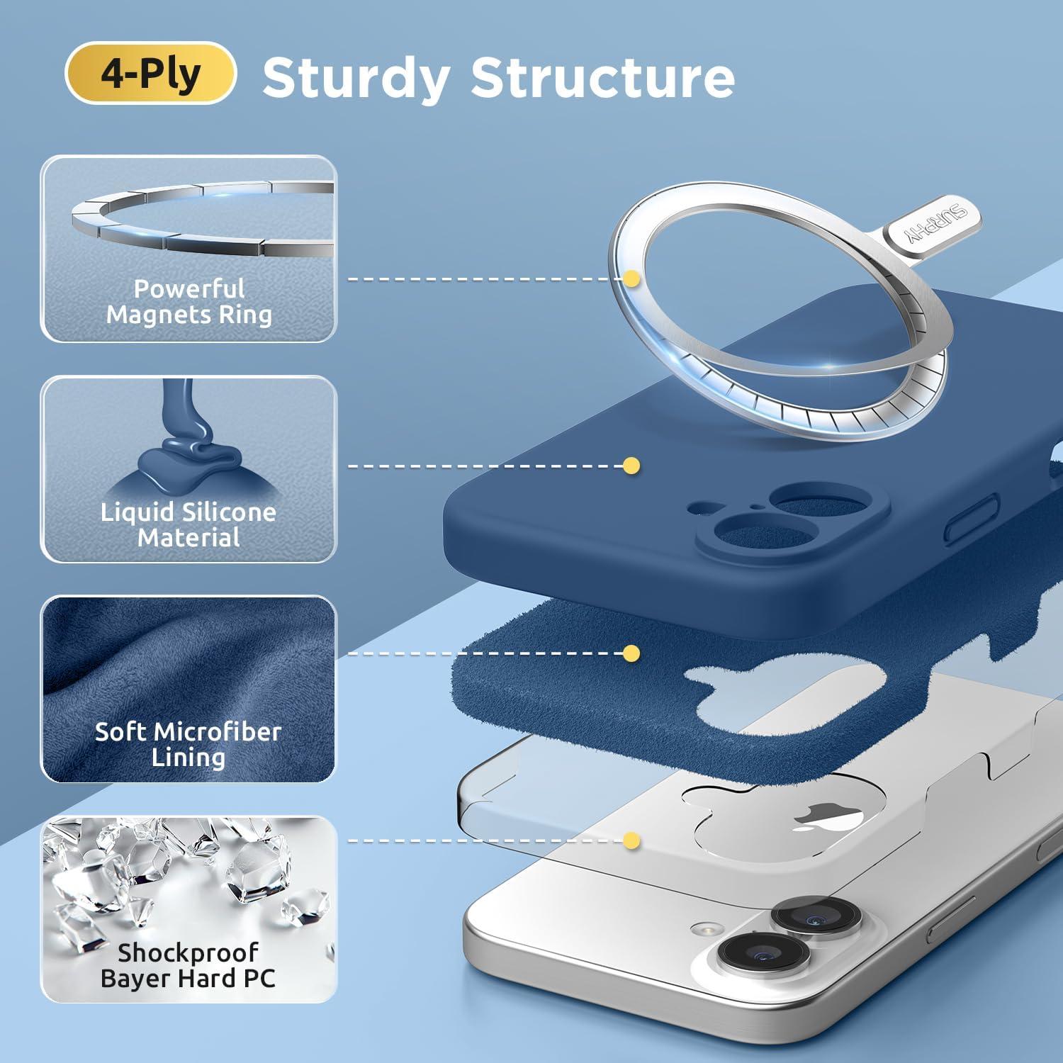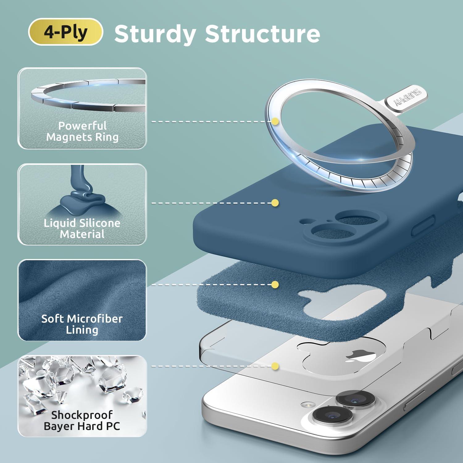 SURPHY Designed for iPhone 16 Plus Case Compatible with MagSafe (6.7 inch 2024), with Screen Protector Liquid Silicone Phone Case (Camera Protective, Soft Microfiber Lining), Soft Mint(Midnight Blue)