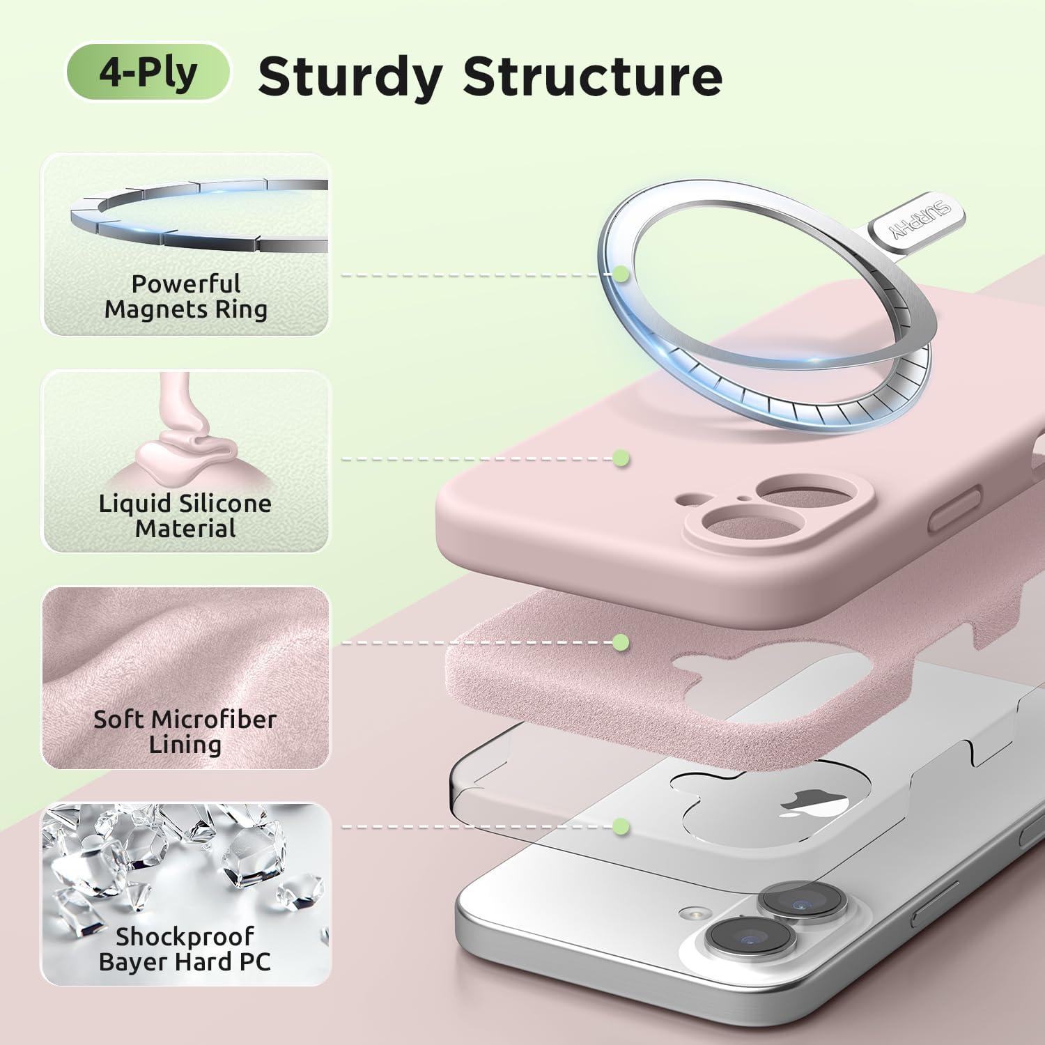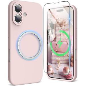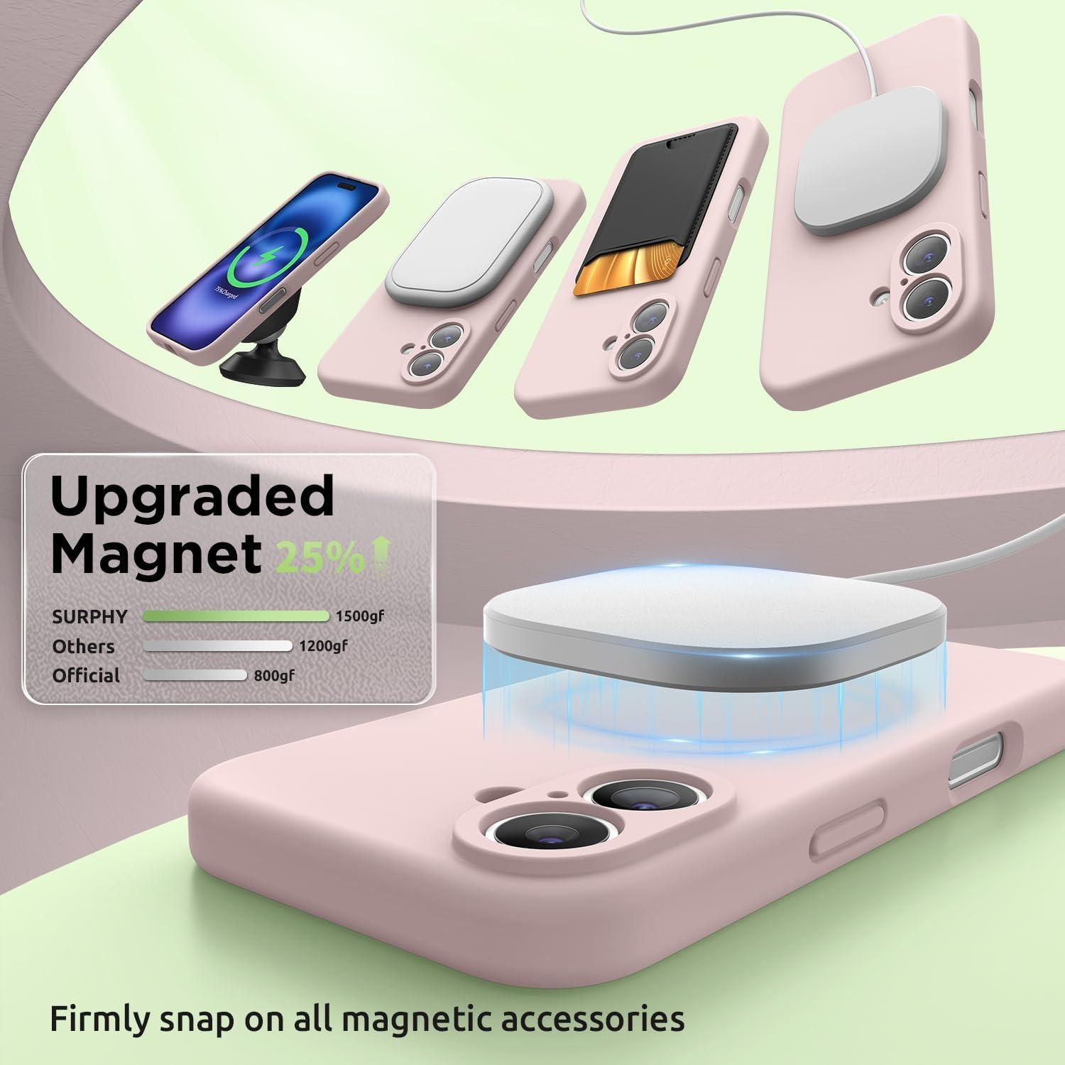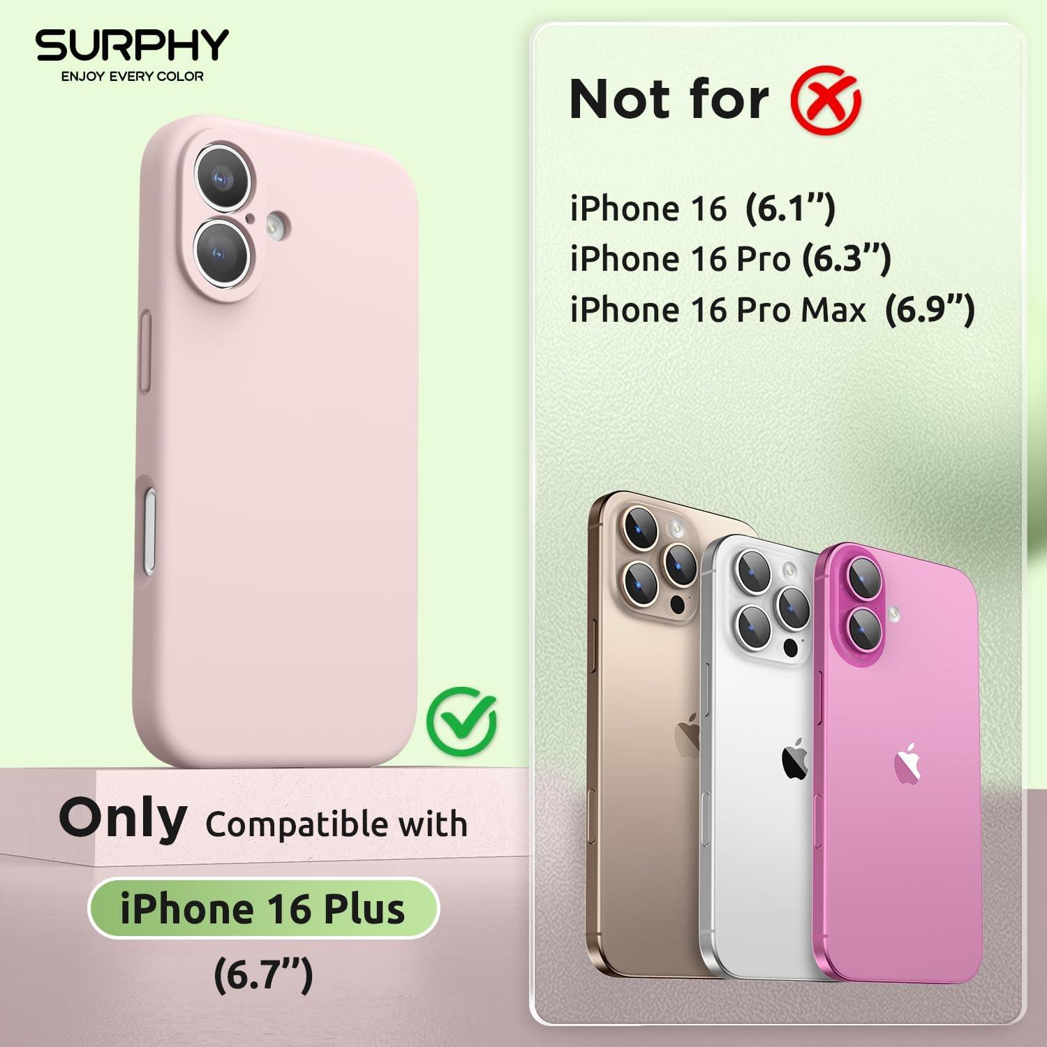 SURPHY Designed for iPhone 16 Plus Case Compatible with MagSafe (6.7 inch 2024), with Screen Protector Liquid Silicone Phone Case (Camera Protective, Soft Microfiber Lining), Soft Mint(Pink Sand)