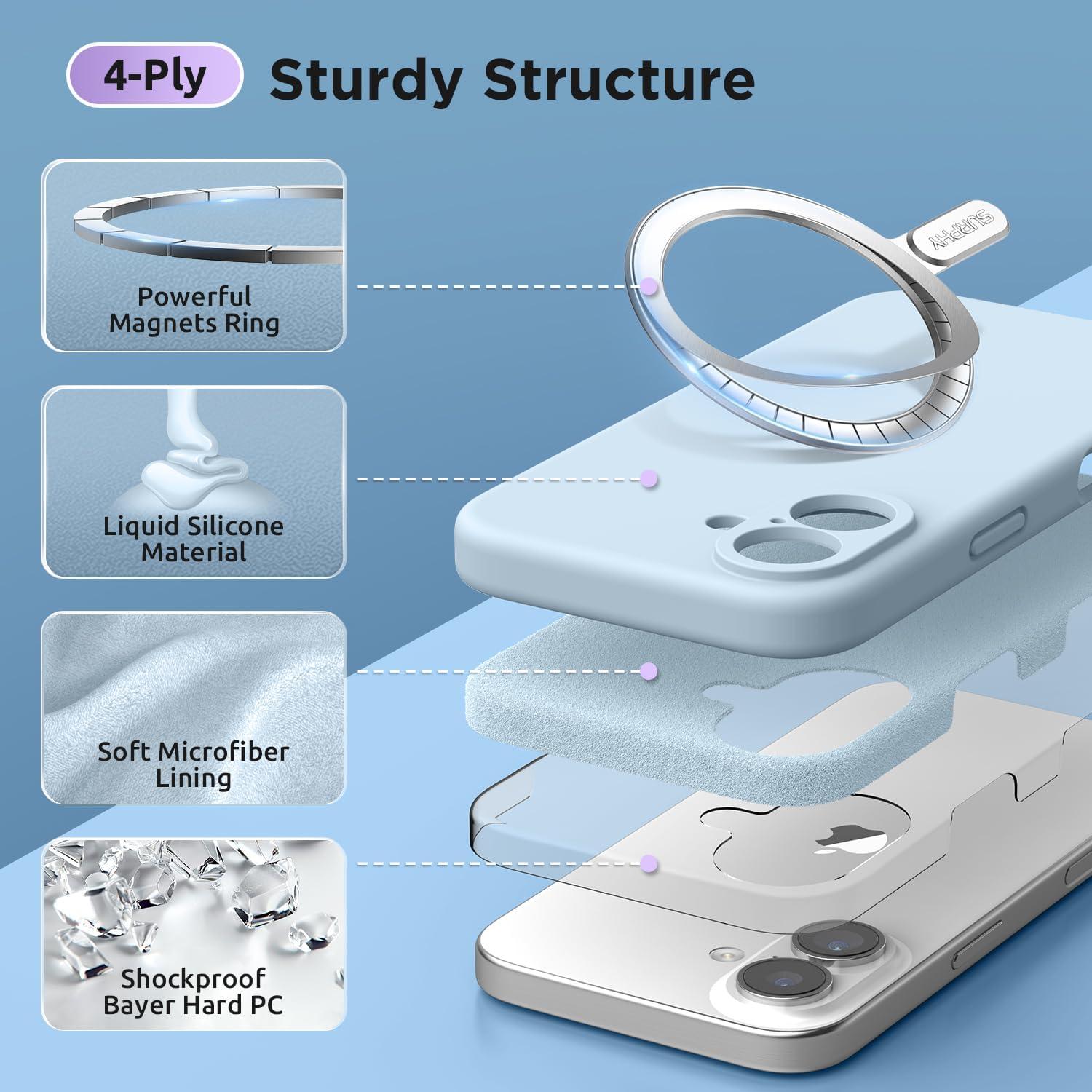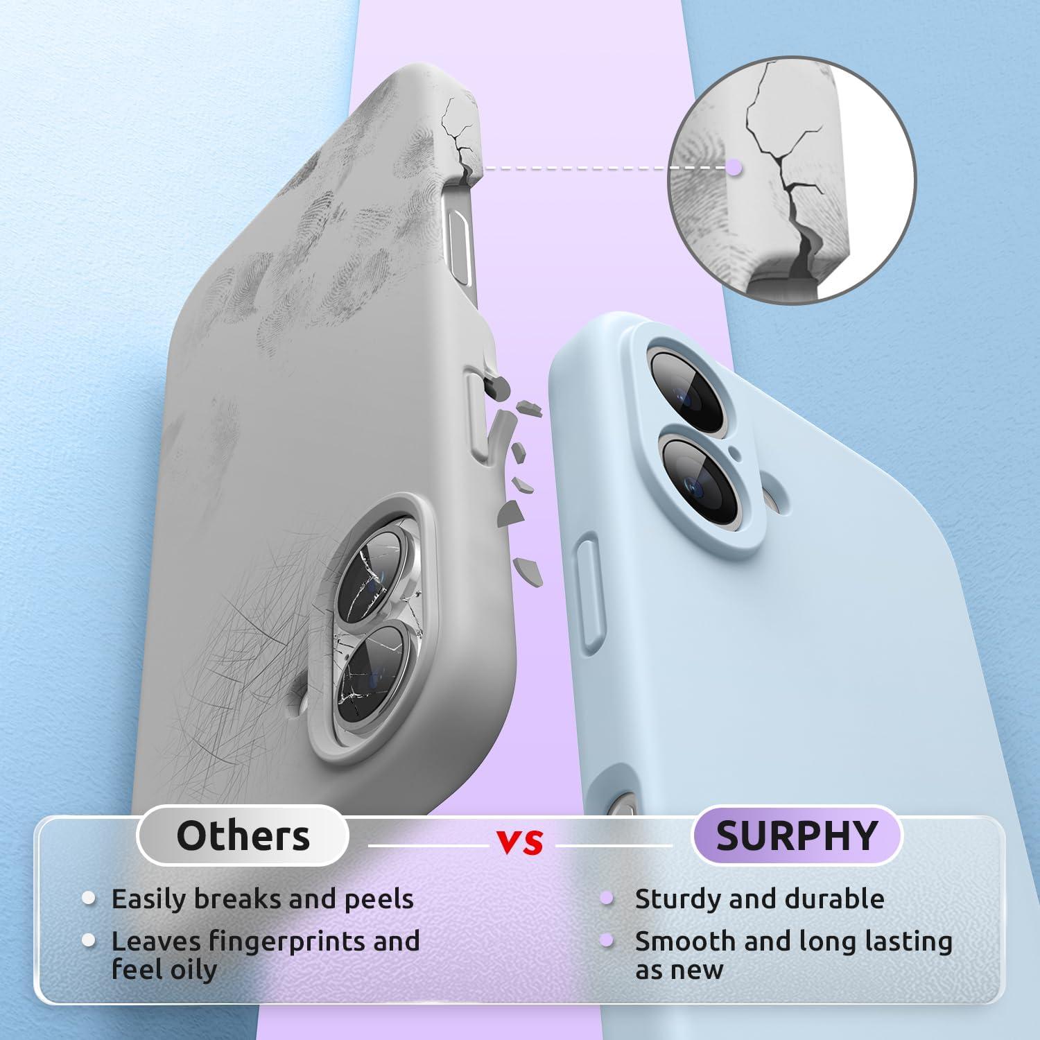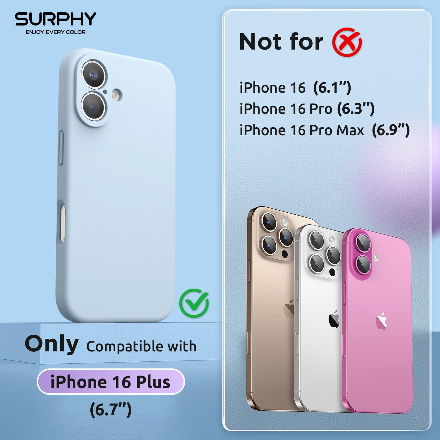 SURPHY Designed for iPhone 16 Plus Case Compatible with MagSafe (6.7 inch 2024), with Screen Protector Liquid Silicone Phone Case (Camera Protective, Soft Microfiber Lining), Soft Mint(Cloud Blue)