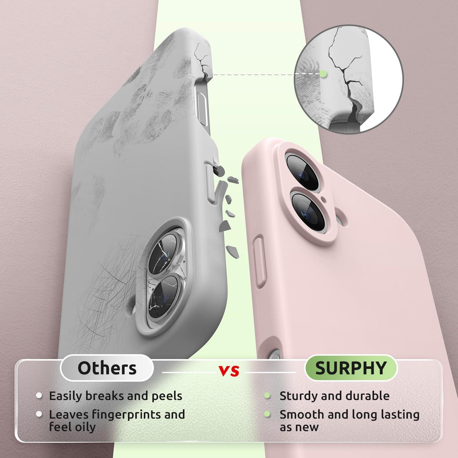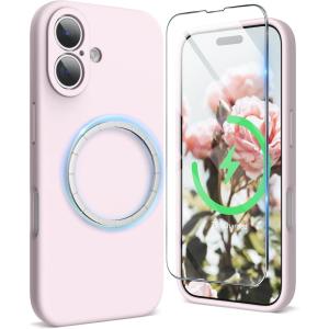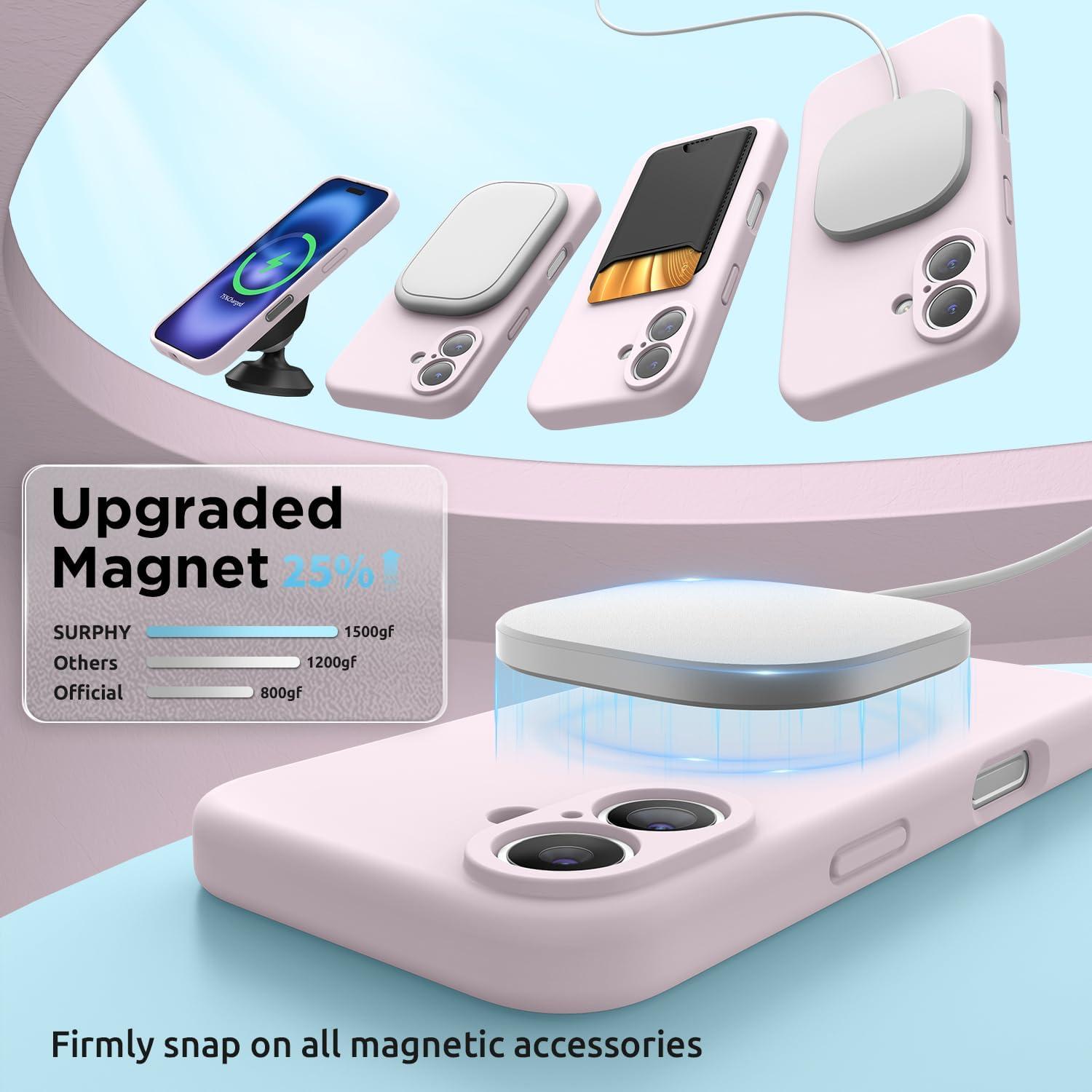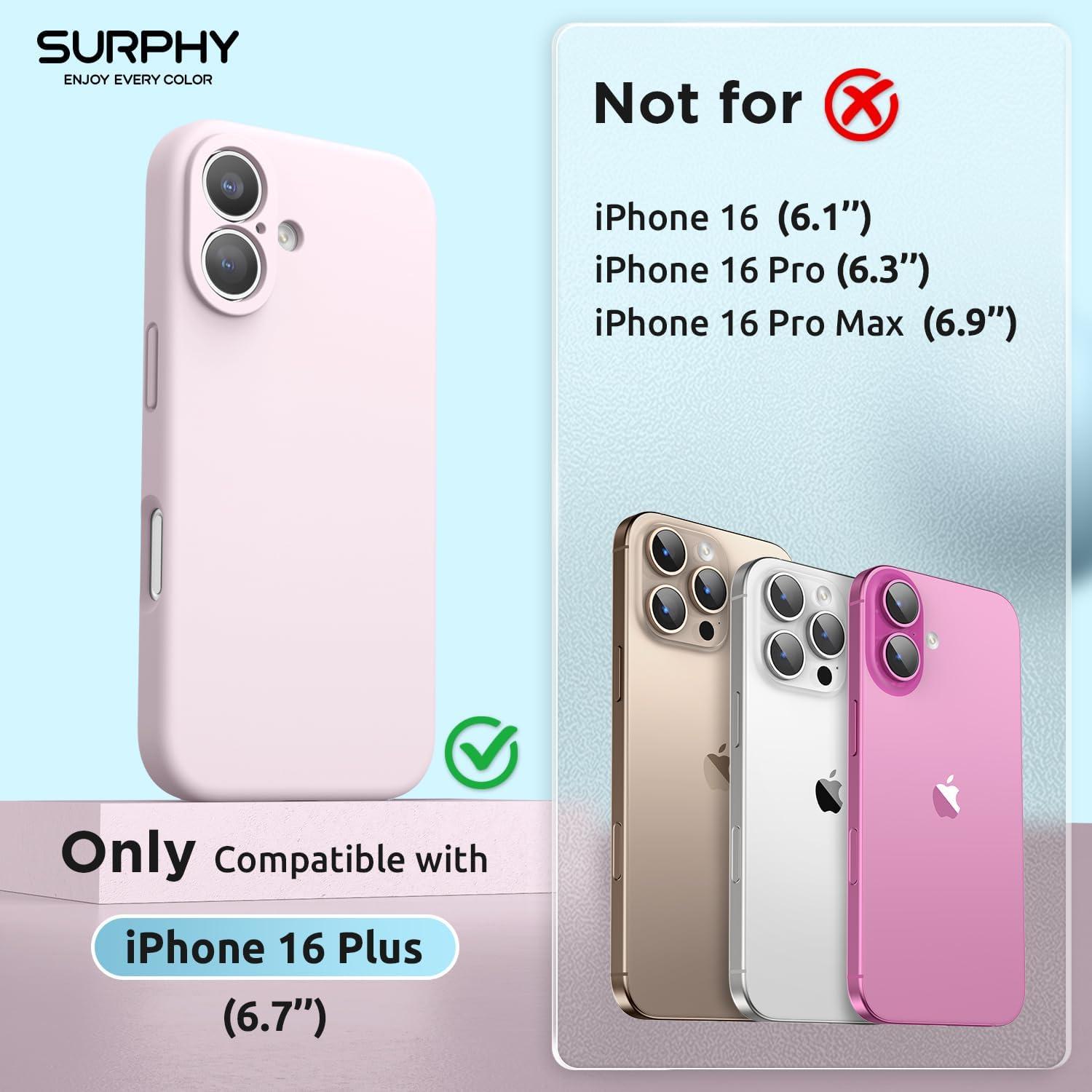SURPHY Designed for iPhone 16 Plus Case Compatible with MagSafe (6.7 inch 2024), with Screen Protector Liquid Silicone Phone Case (Camera Protective, Soft Microfiber Lining), Soft Mint(Chalk Pink)