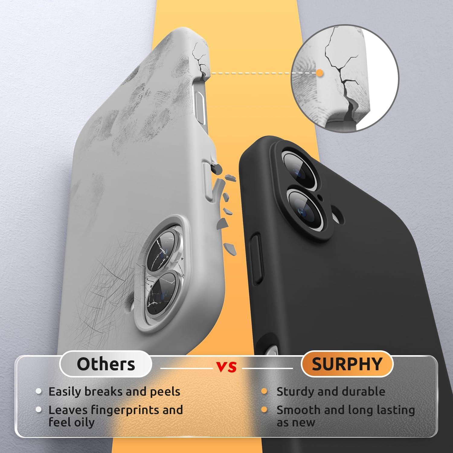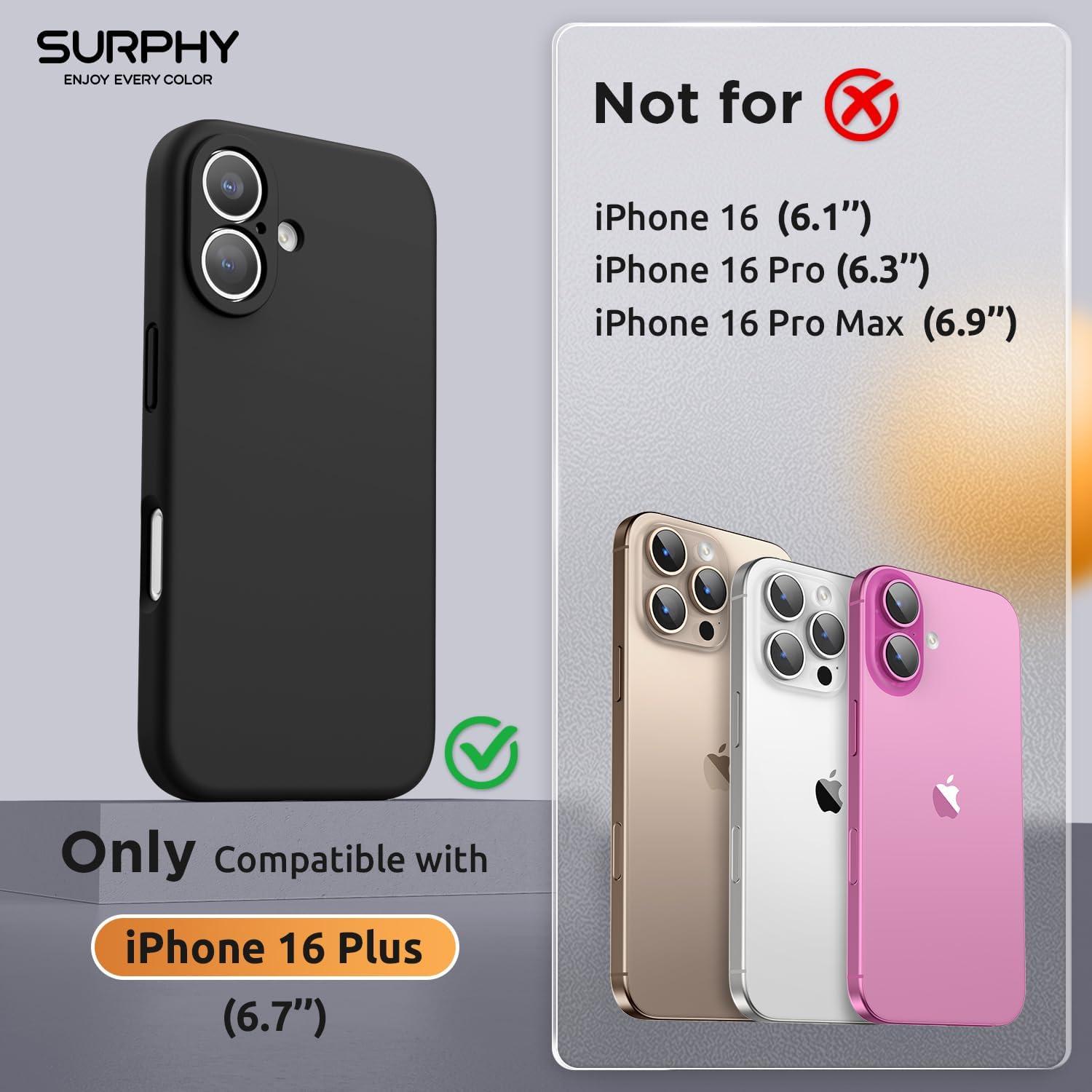 SURPHY Designed for iPhone 16 Plus Case Compatible with MagSafe (6.7 inch 2024), with Screen Protector Liquid Silicone Phone Case (Camera Protective, Soft Microfiber Lining), Soft Mint(Black)