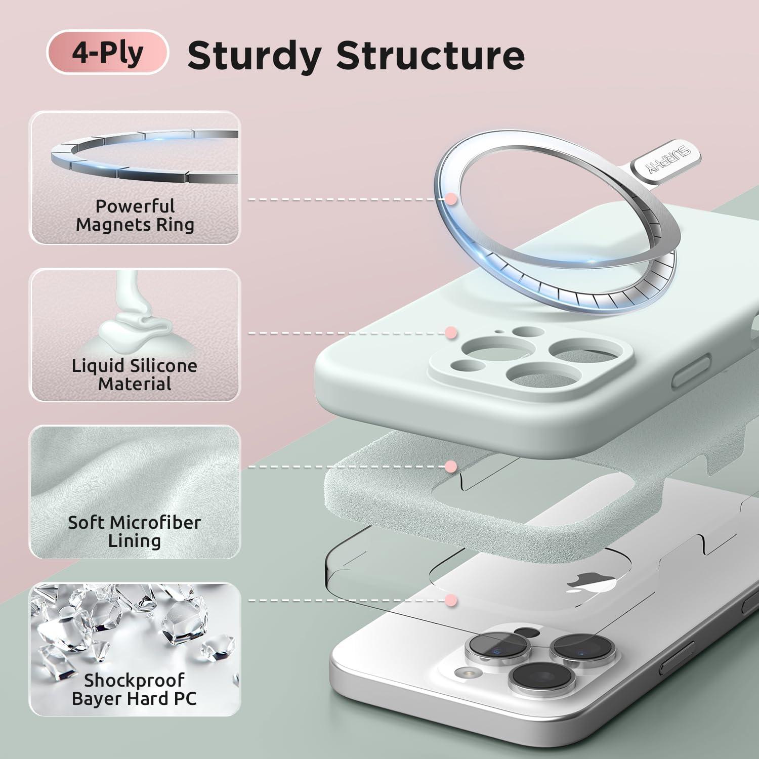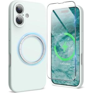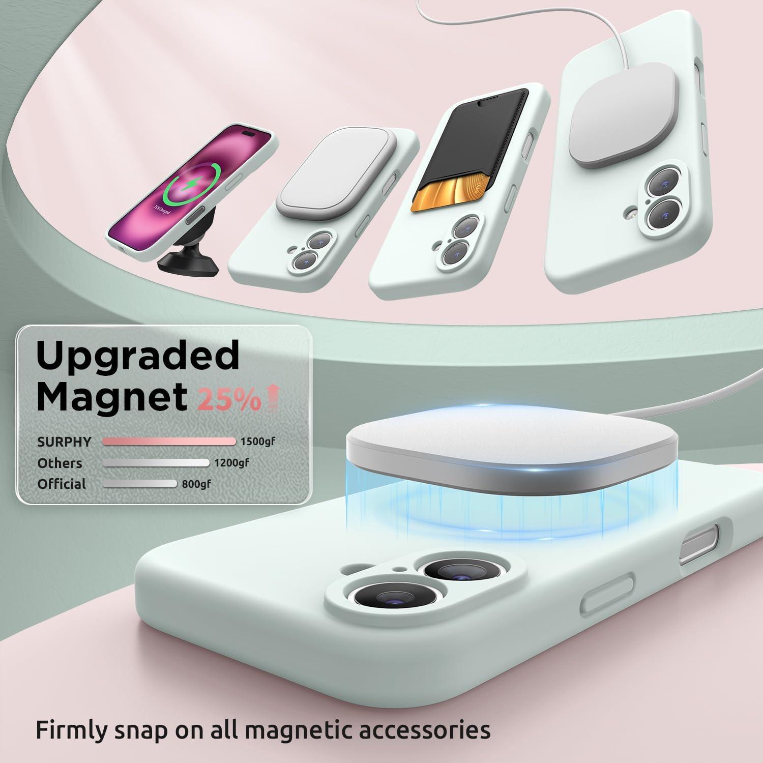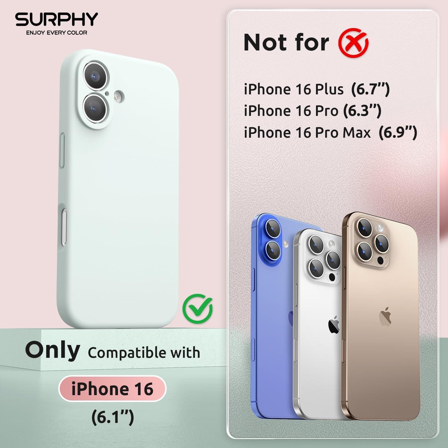SURPHY Designed for iPhone 16 Case Compatible with MagSafe (6.1 inch 2024), with Screen Protector Liquid Silicone Phone Case (Camera Protective, Soft Microfiber Lining), Black(Soft Mint)
