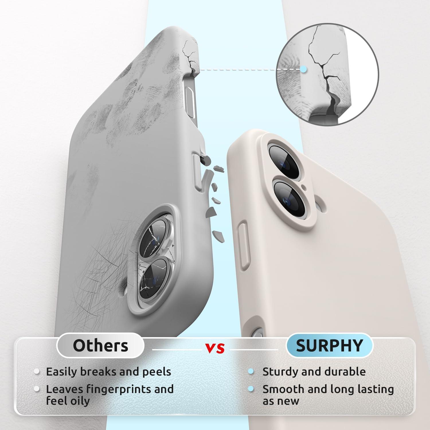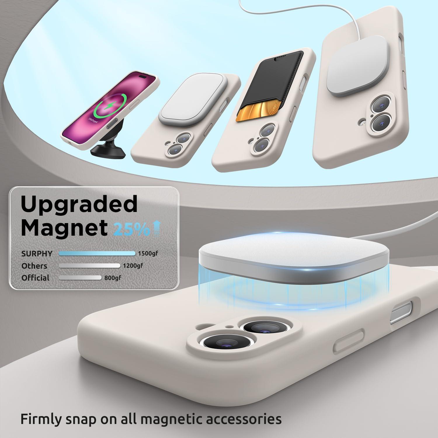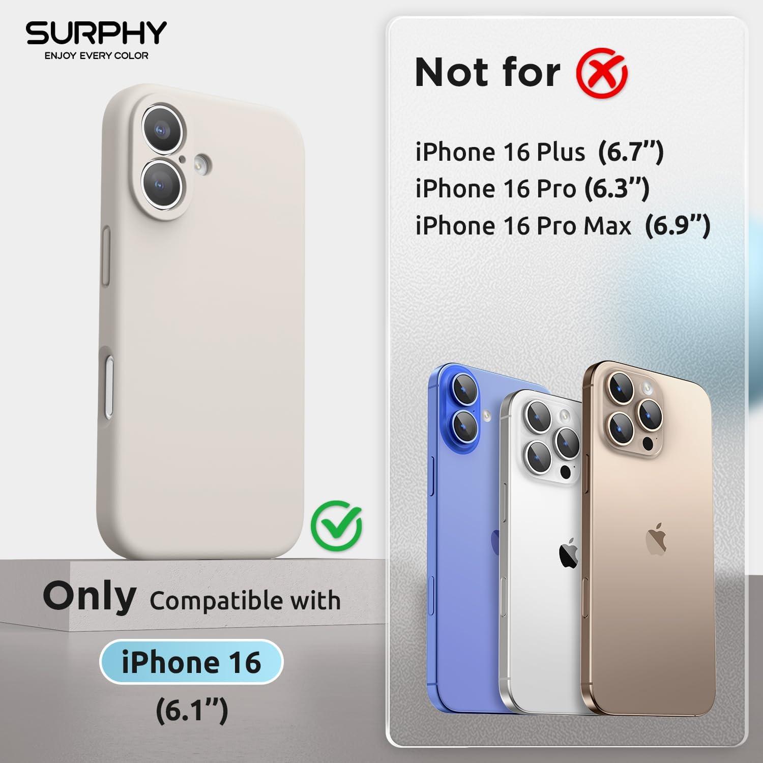 SURPHY Designed for iPhone 16 Case Compatible with MagSafe (6.1 inch 2024), with Screen Protector Liquid Silicone Phone Case (Camera Protective, Soft Microfiber Lining), Black(Lavender Gray)