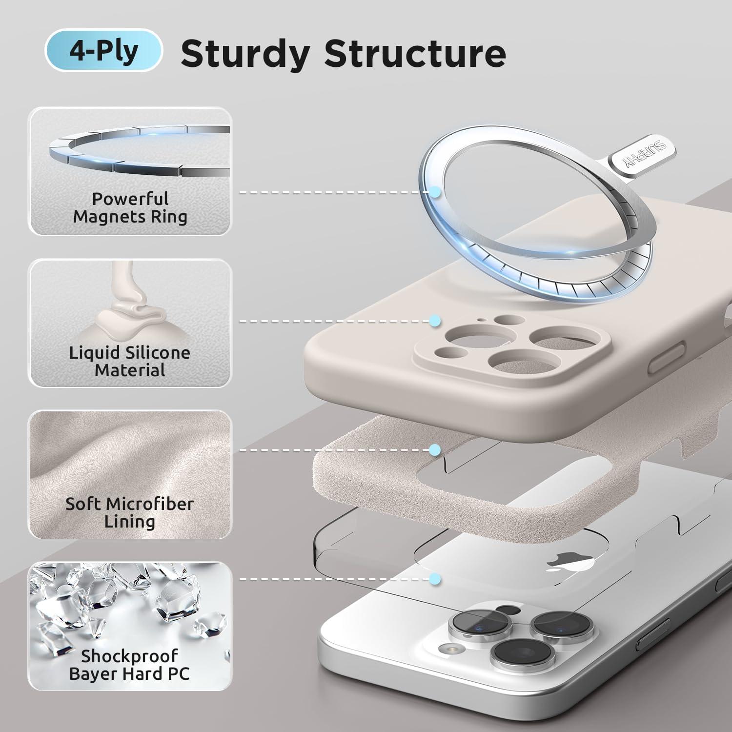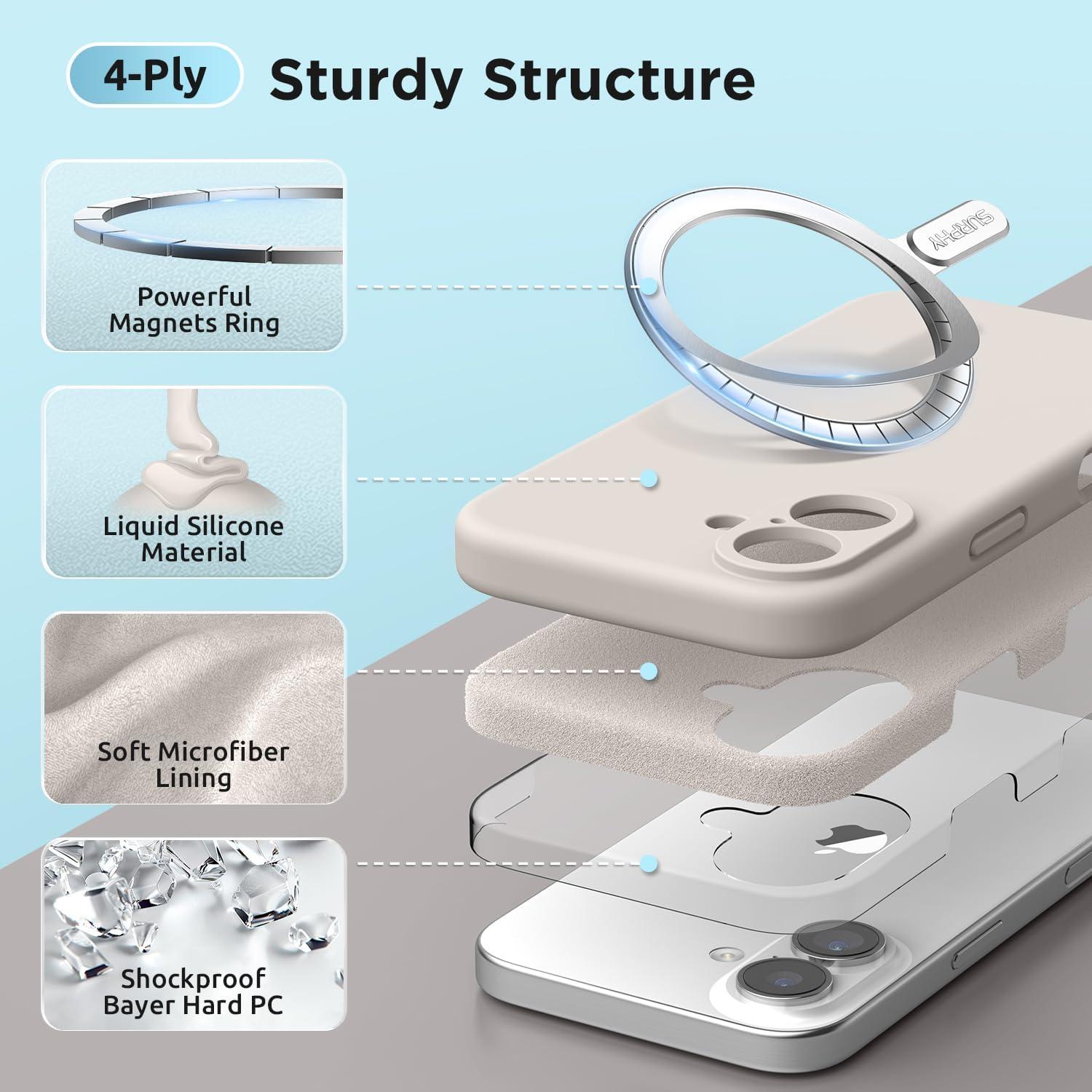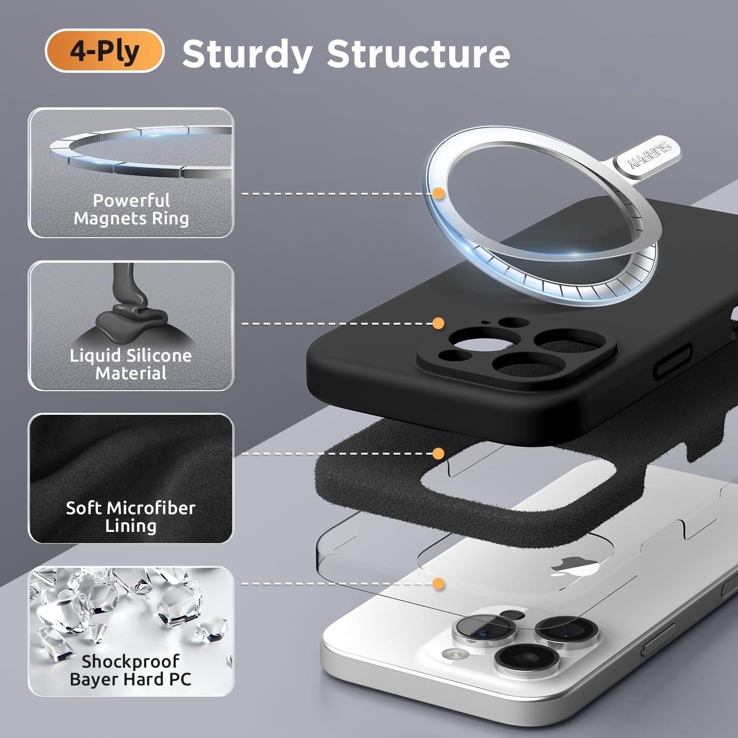 SURPHY Designed for iPhone 16 Case Compatible with MagSafe (6.1 inch 2024), with Screen Protector Liquid Silicone Phone Case (Camera Protective, Soft Microfiber Lining), Black(Stone)
