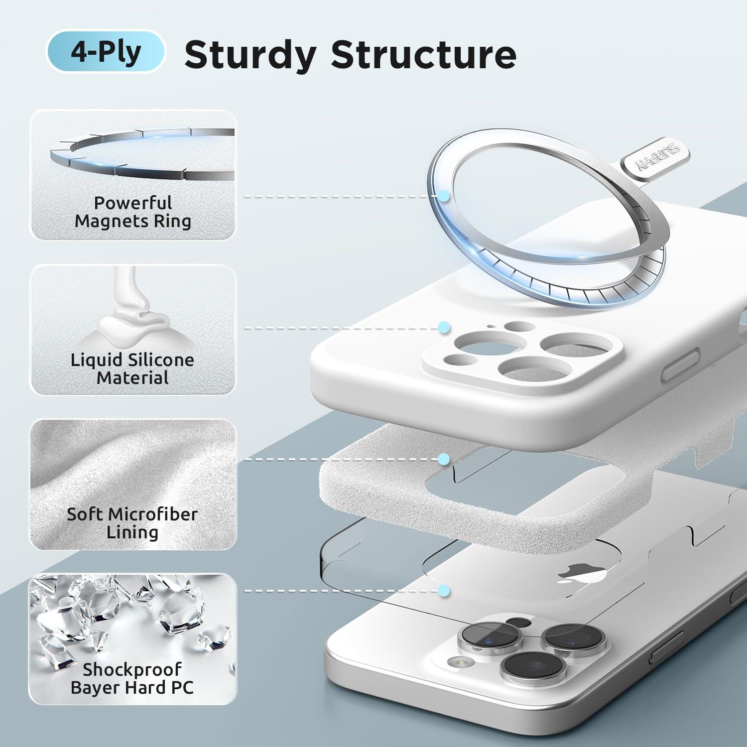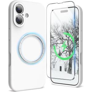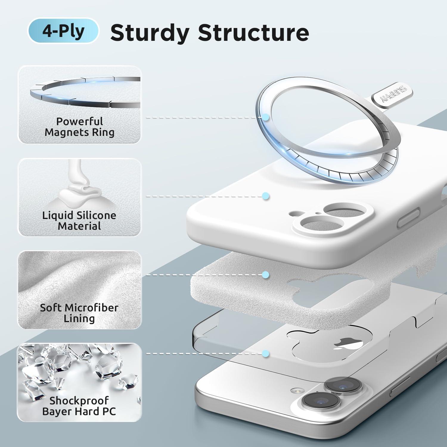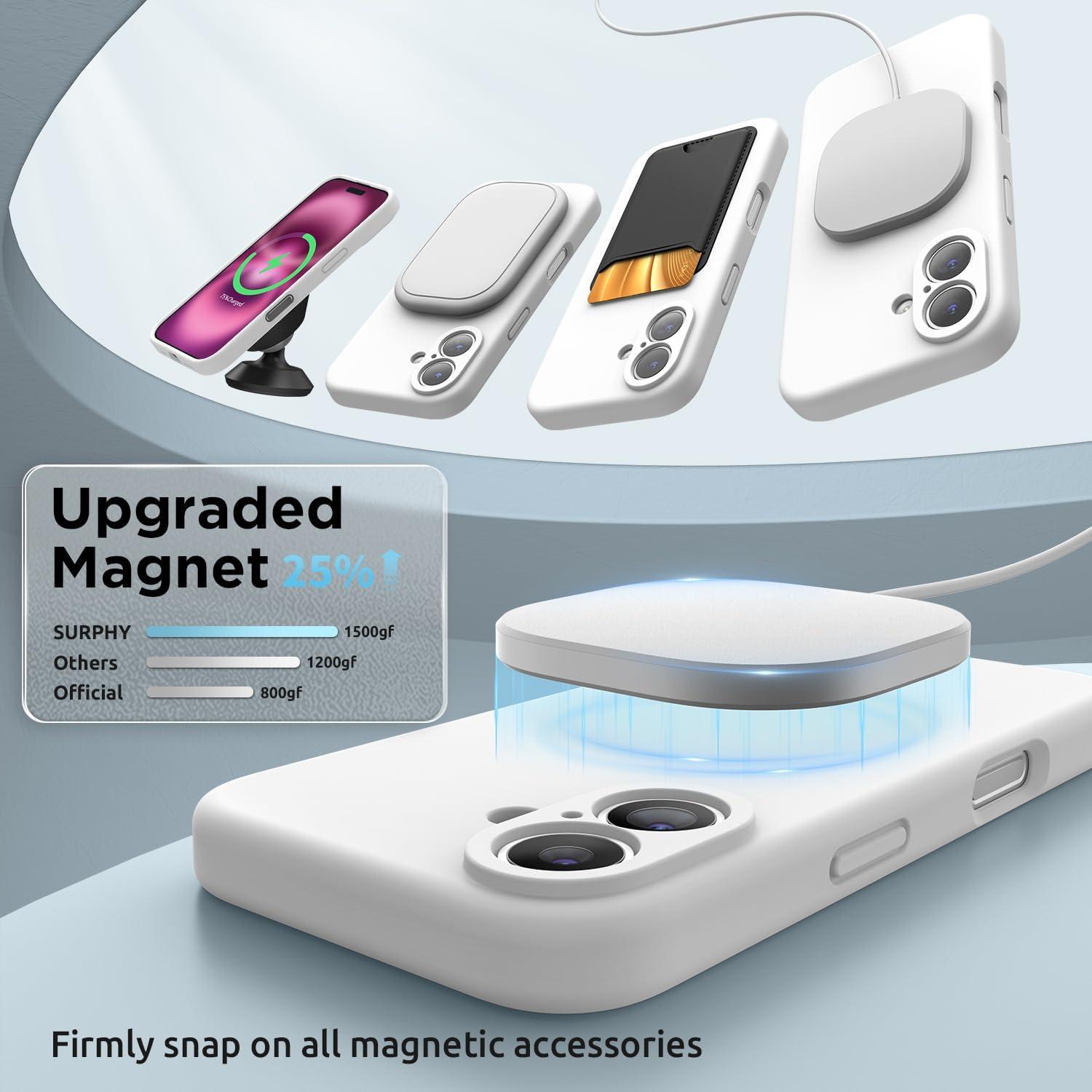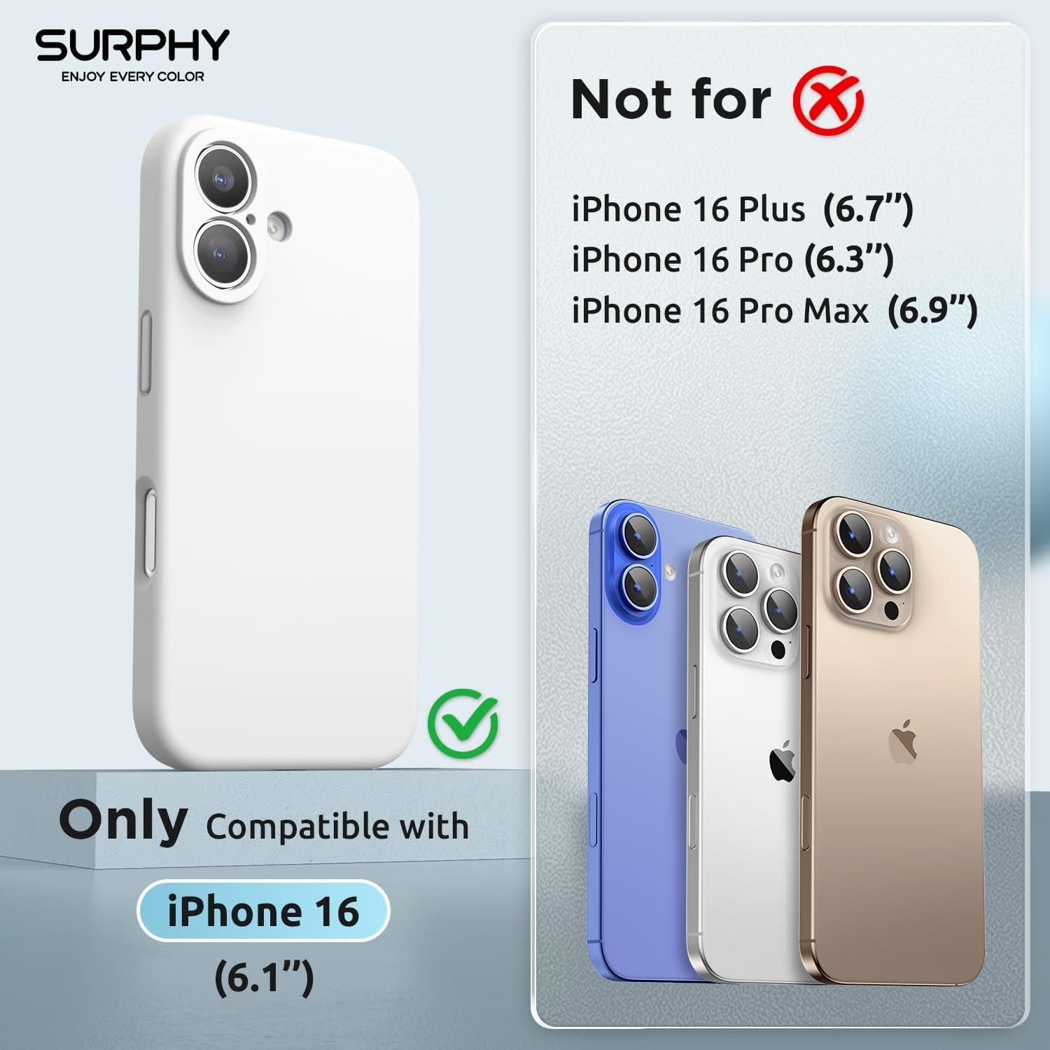 SURPHY Designed for iPhone 16 Case Compatible with MagSafe (6.1 inch 2024), with Screen Protector Liquid Silicone Phone Case (Camera Protective, Soft Microfiber Lining), Black(White)