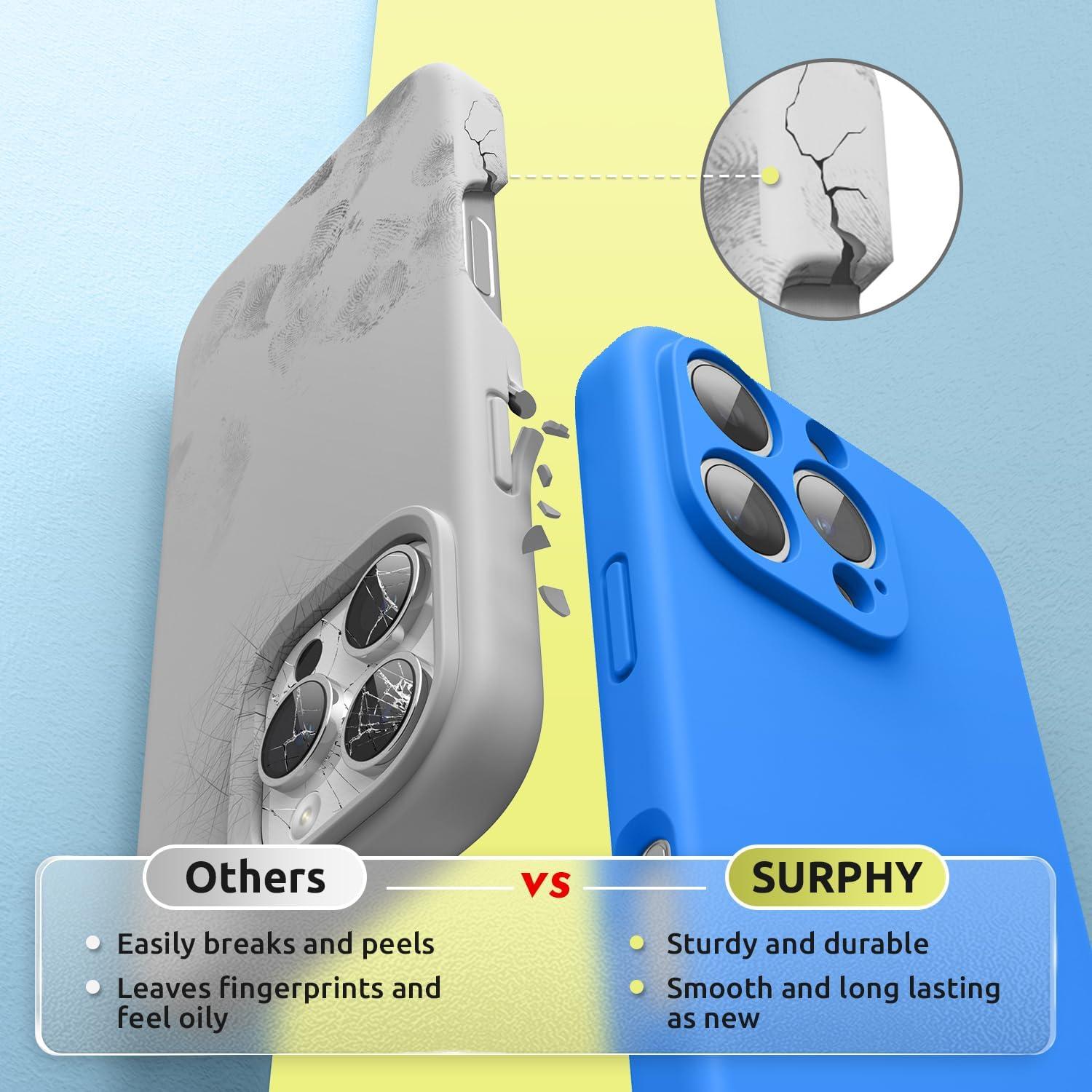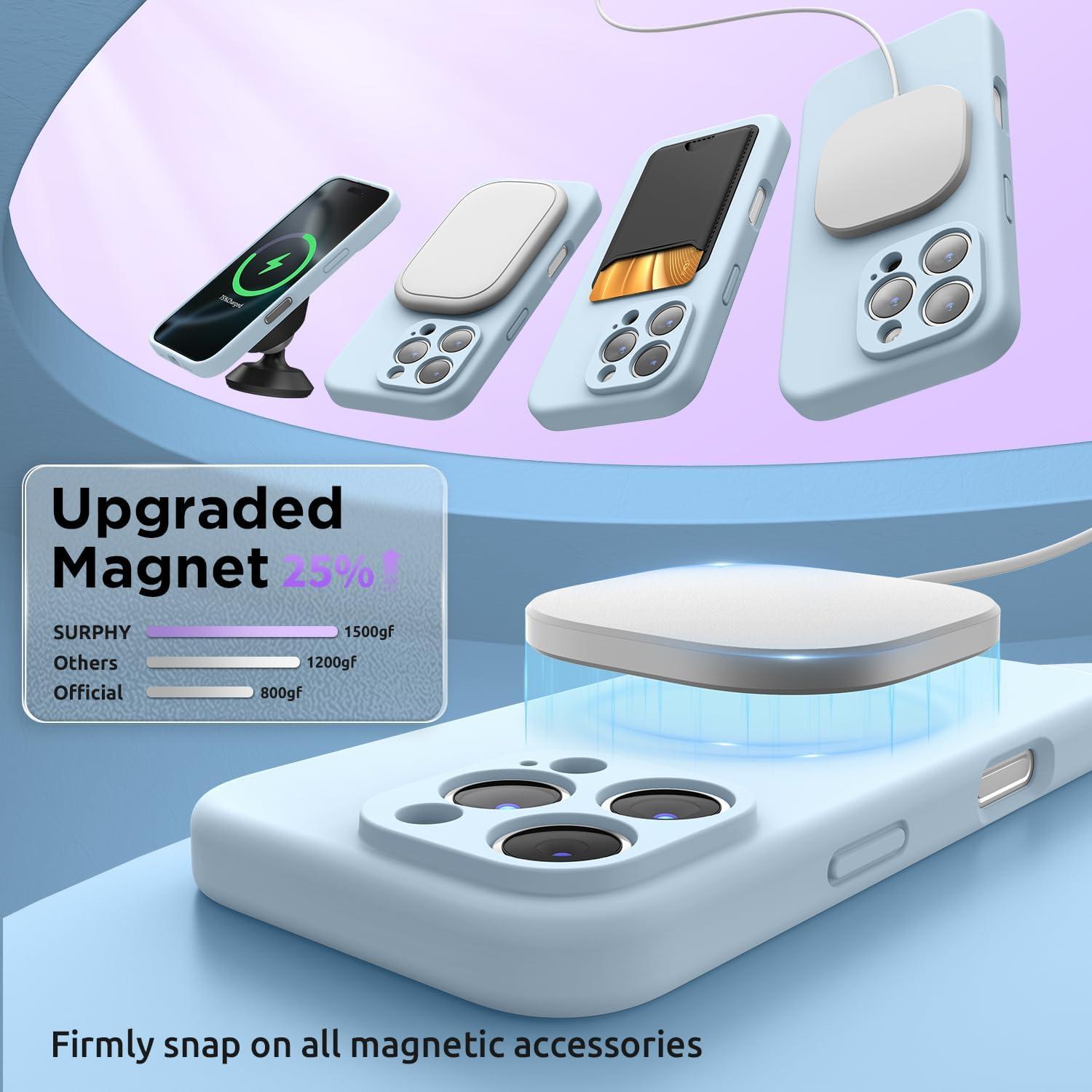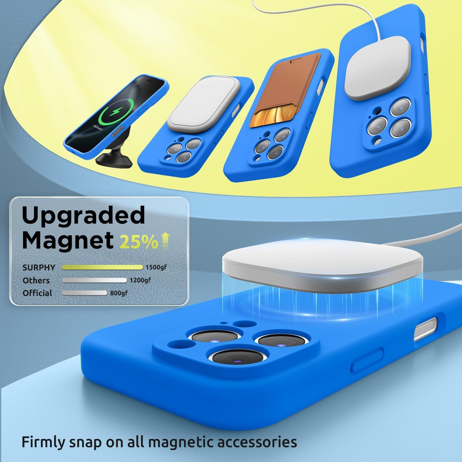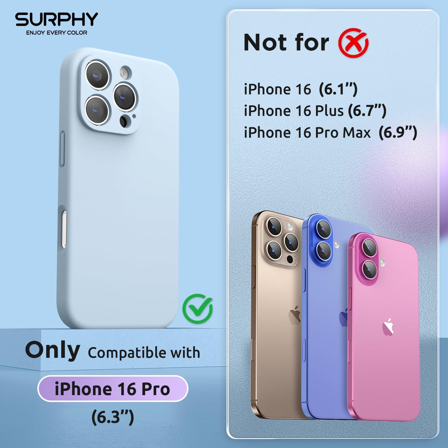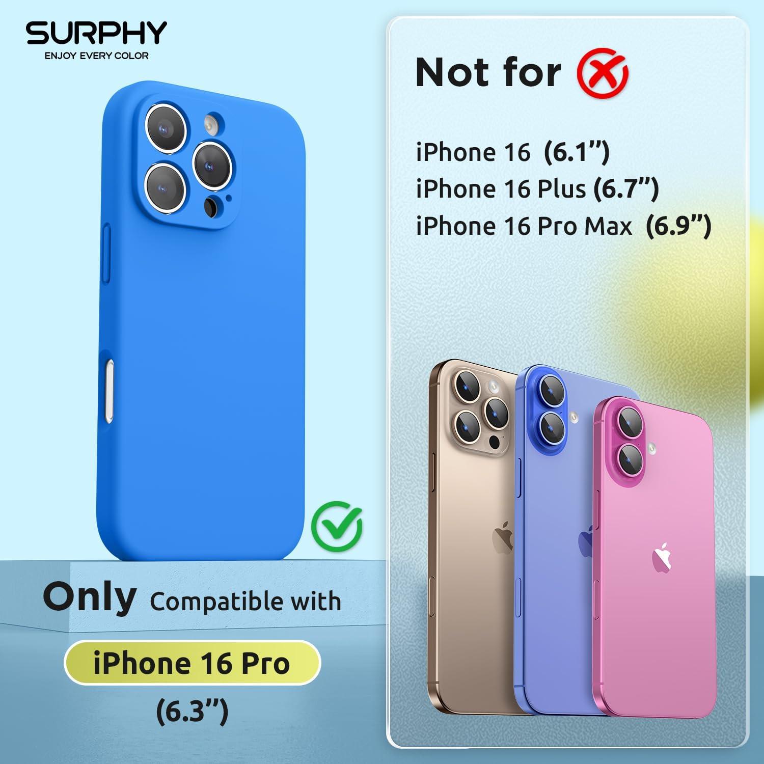 SURPHY Designed for iPhone 16 Pro Case Compatible with MagSafe (6.3 inch 2024), Liquid Silicone Phone Case (Camera Protective, Soft Microfiber Lining), Pink(Blue)