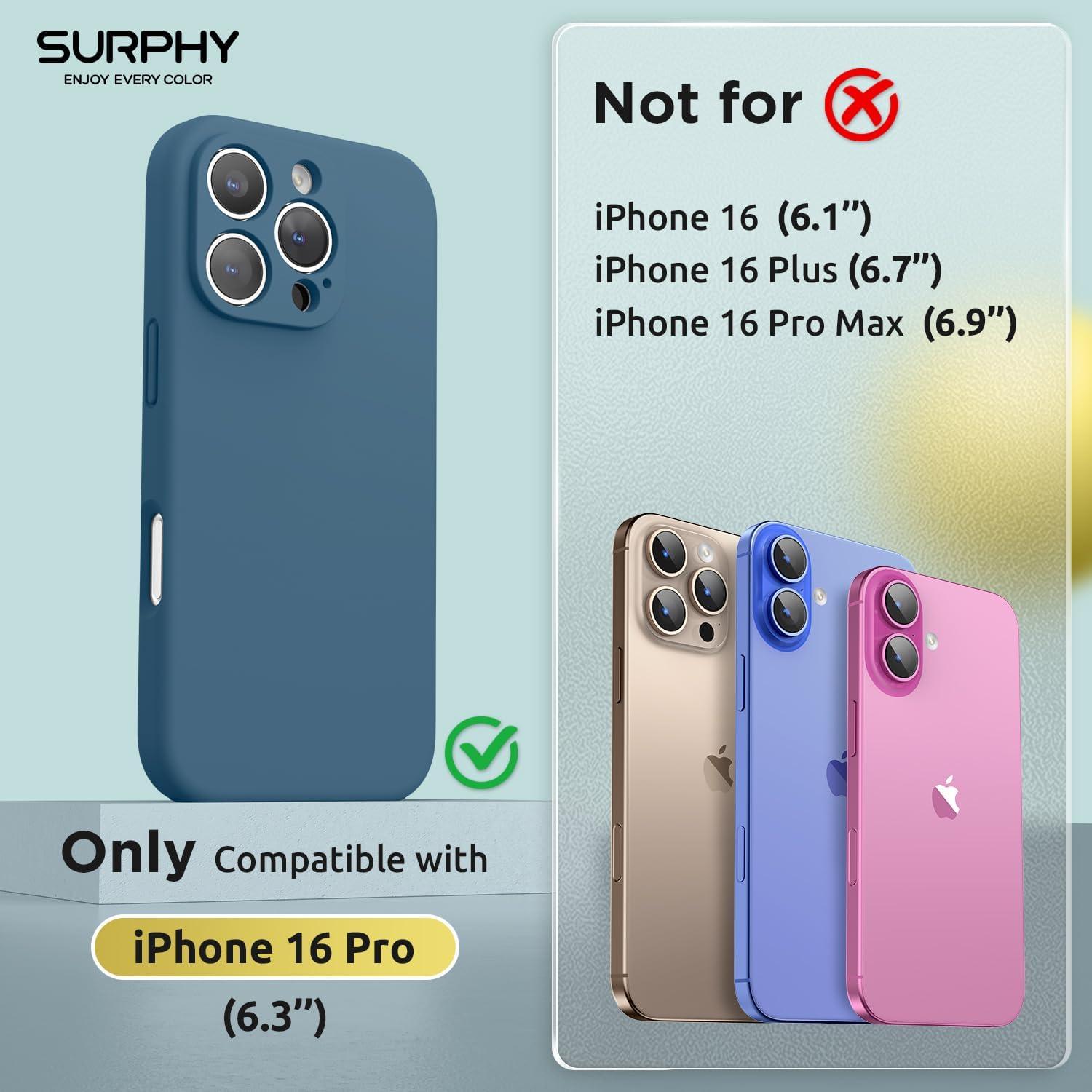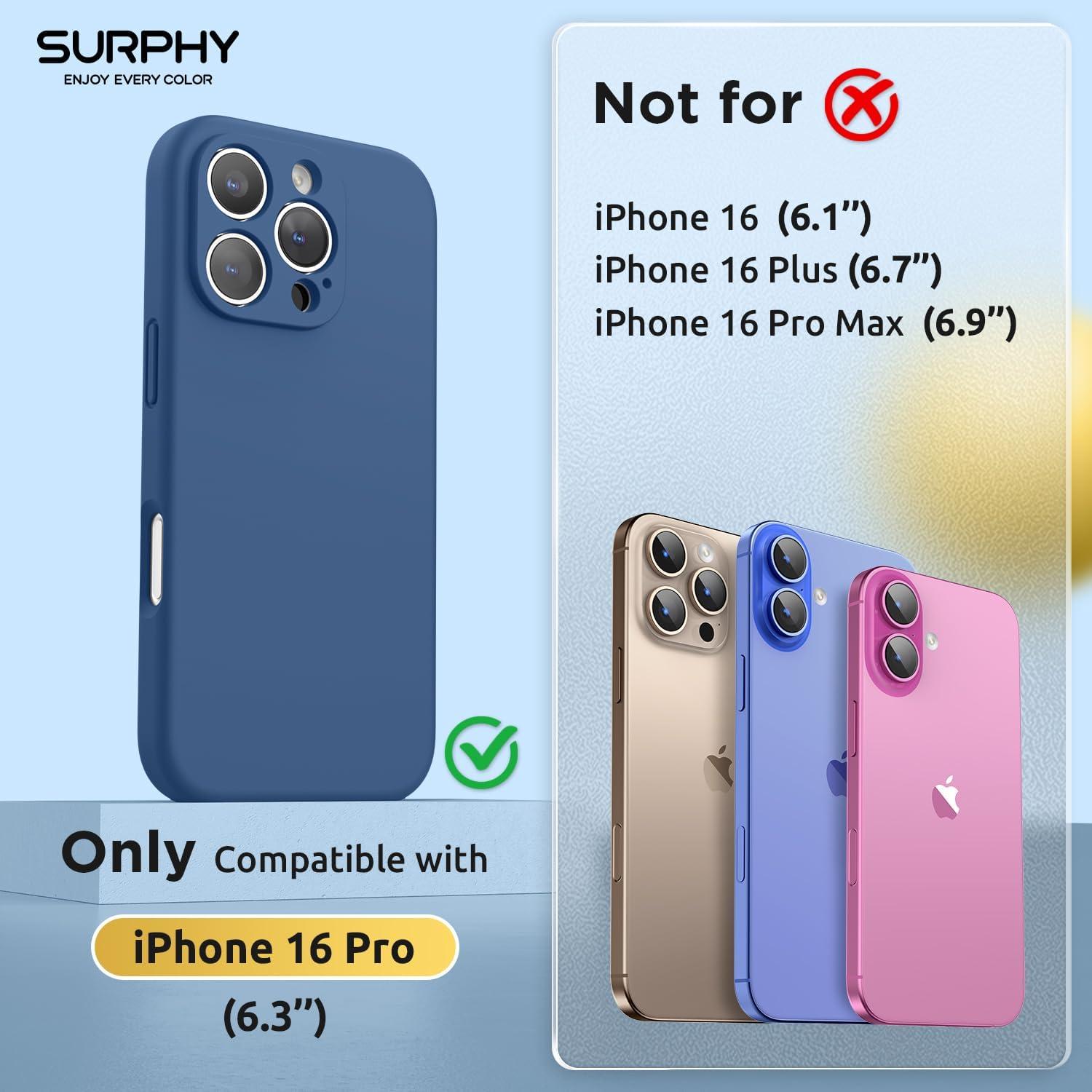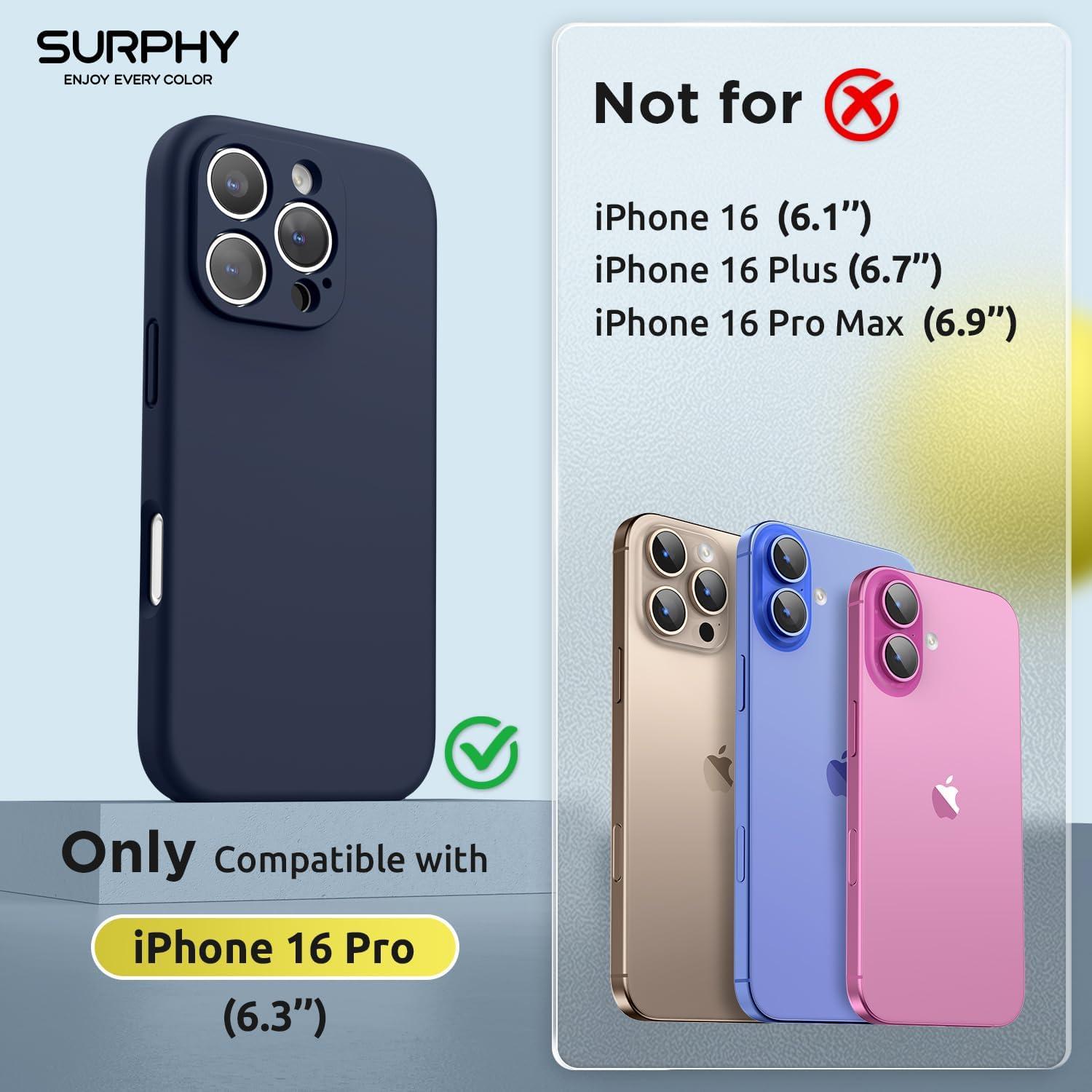 SURPHY Designed for iPhone 16 Pro Case Compatible with MagSafe (6.3 inch 2024), Liquid Silicone Phone Case (Camera Protective, Soft Microfiber Lining), Pink(Midnight Blue)