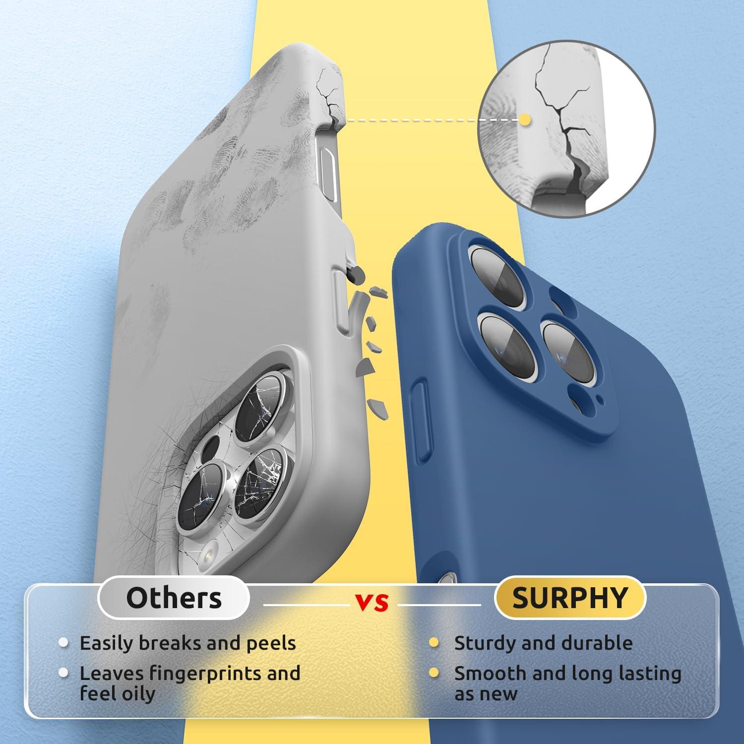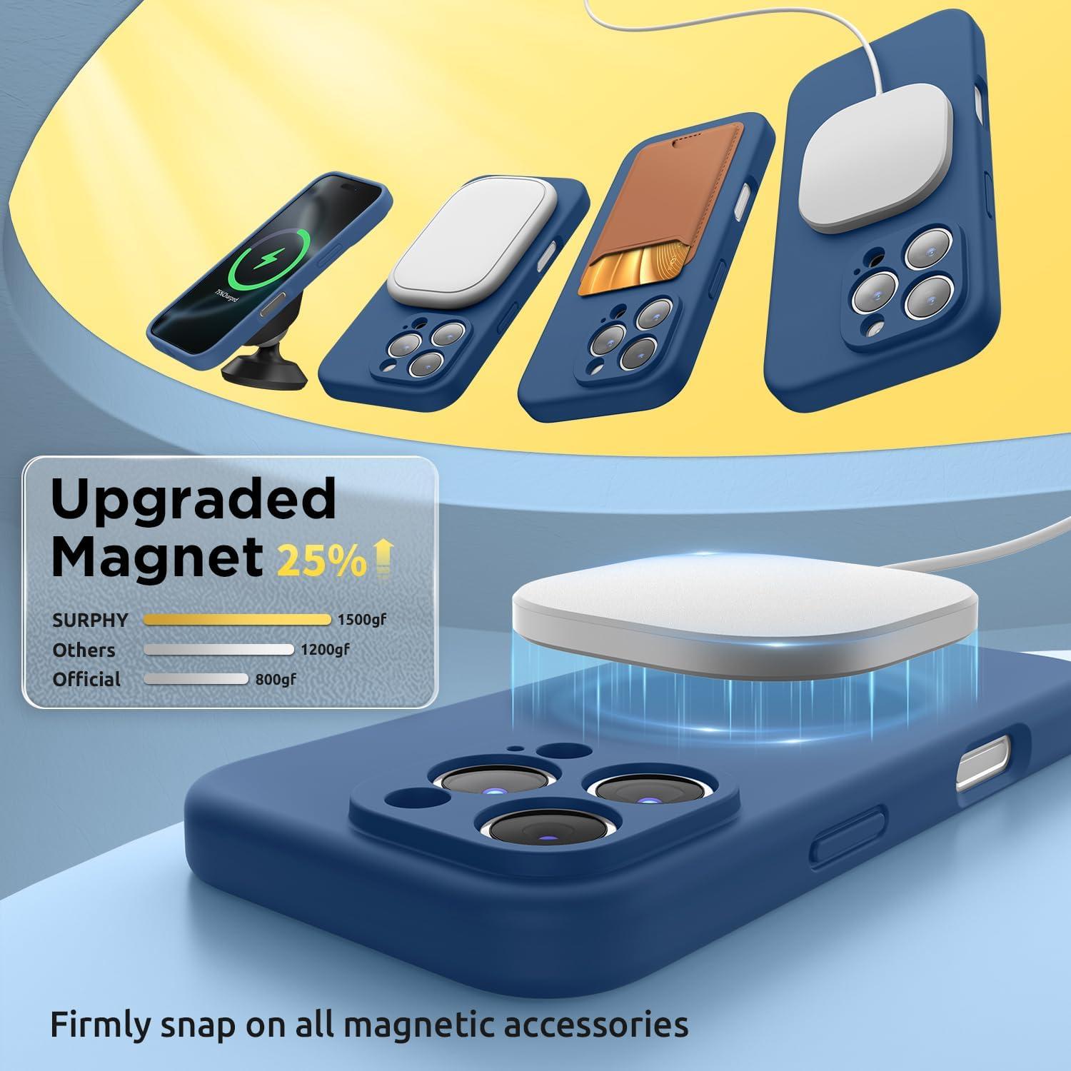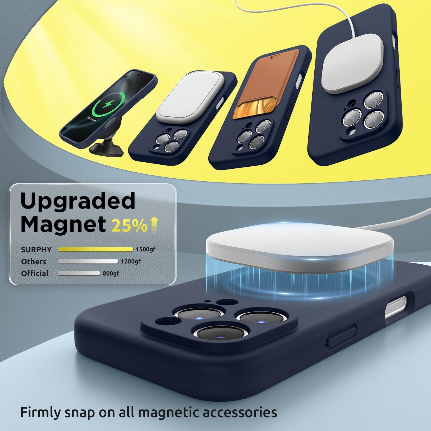 SURPHY Designed for iPhone 16 Pro Case Compatible with MagSafe (6.3 inch 2024), Liquid Silicone Phone Case (Camera Protective, Soft Microfiber Lining), Pink(Midnight Blue)