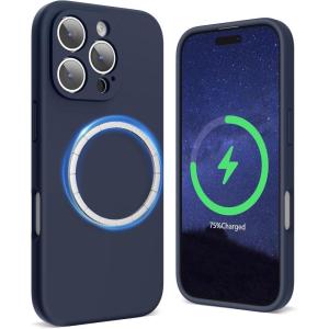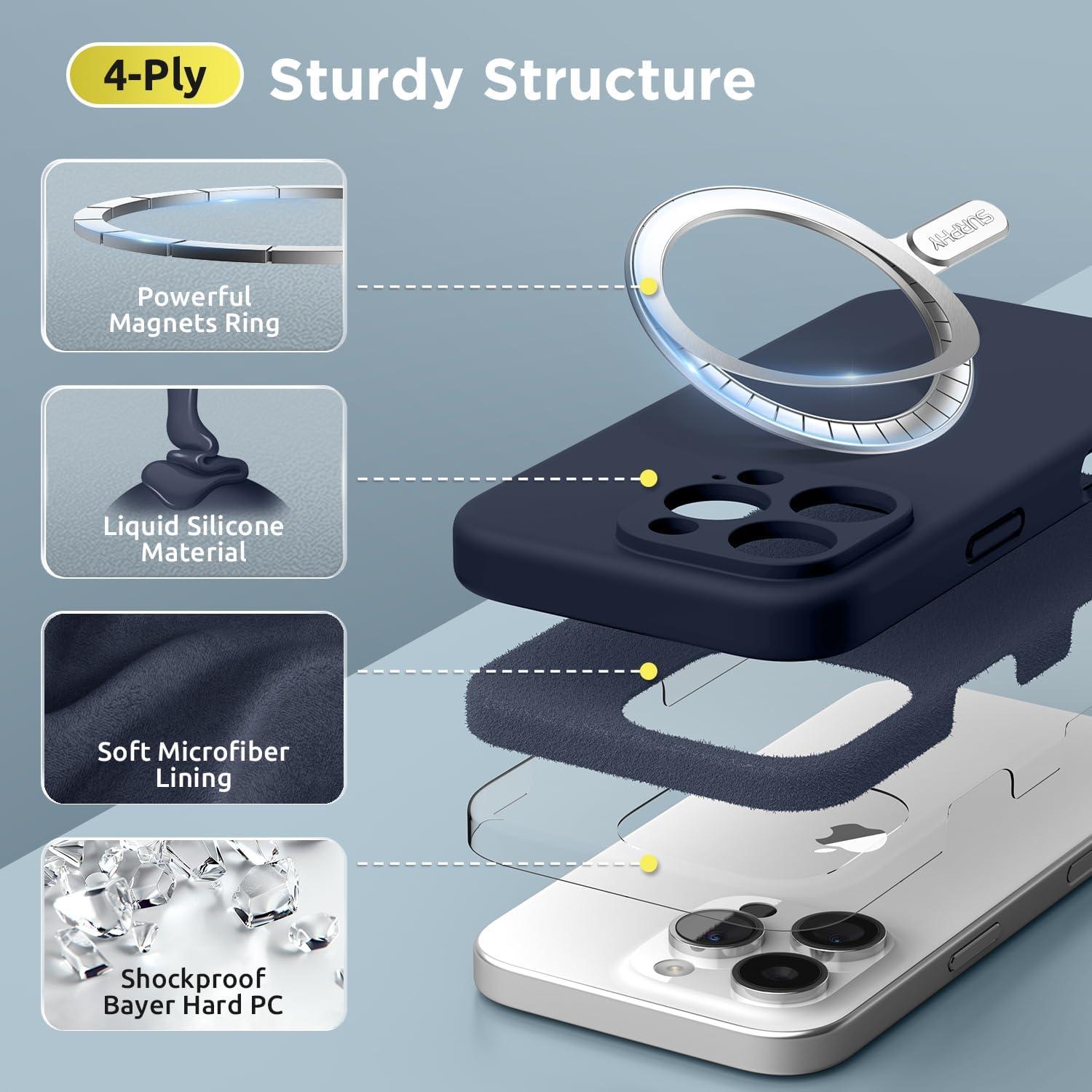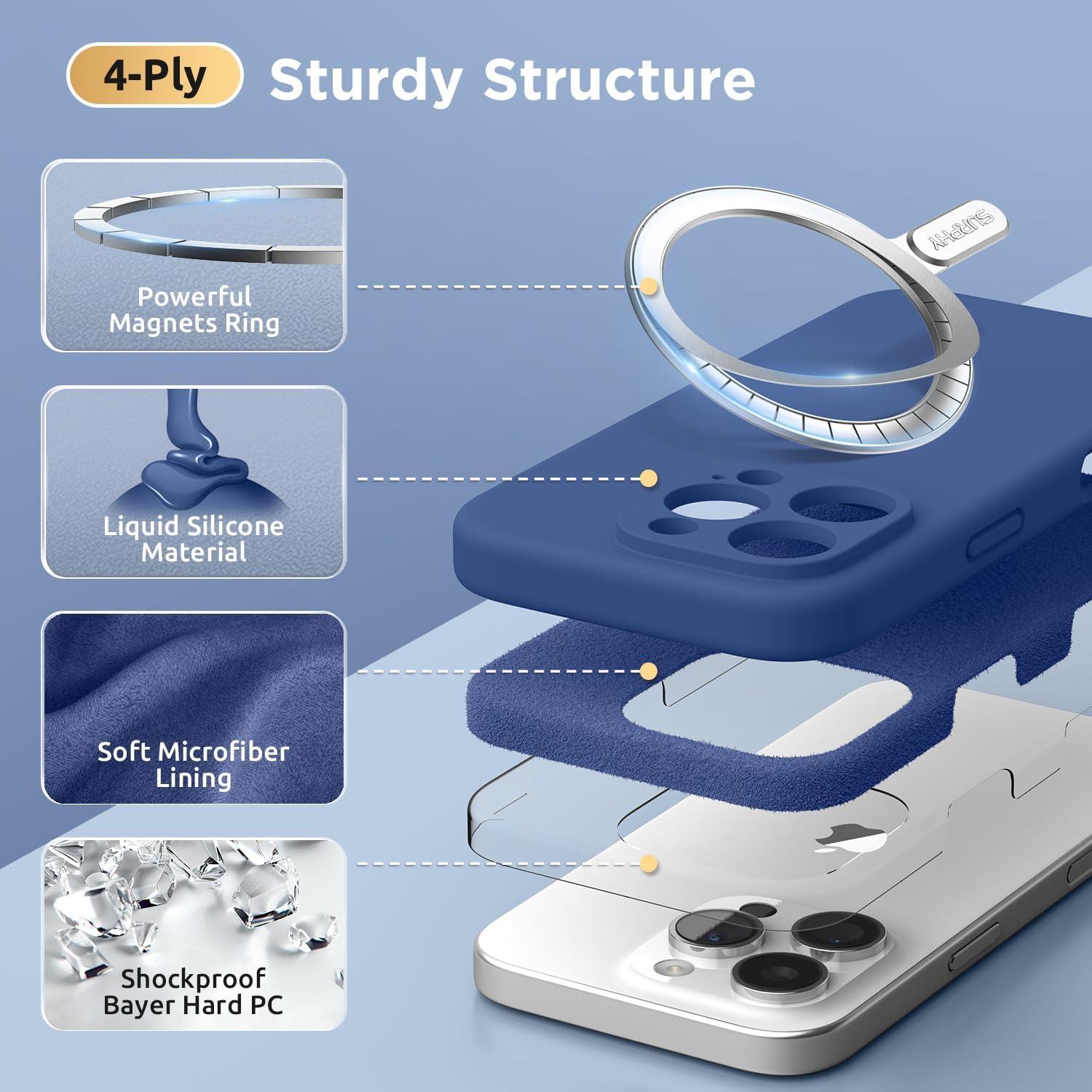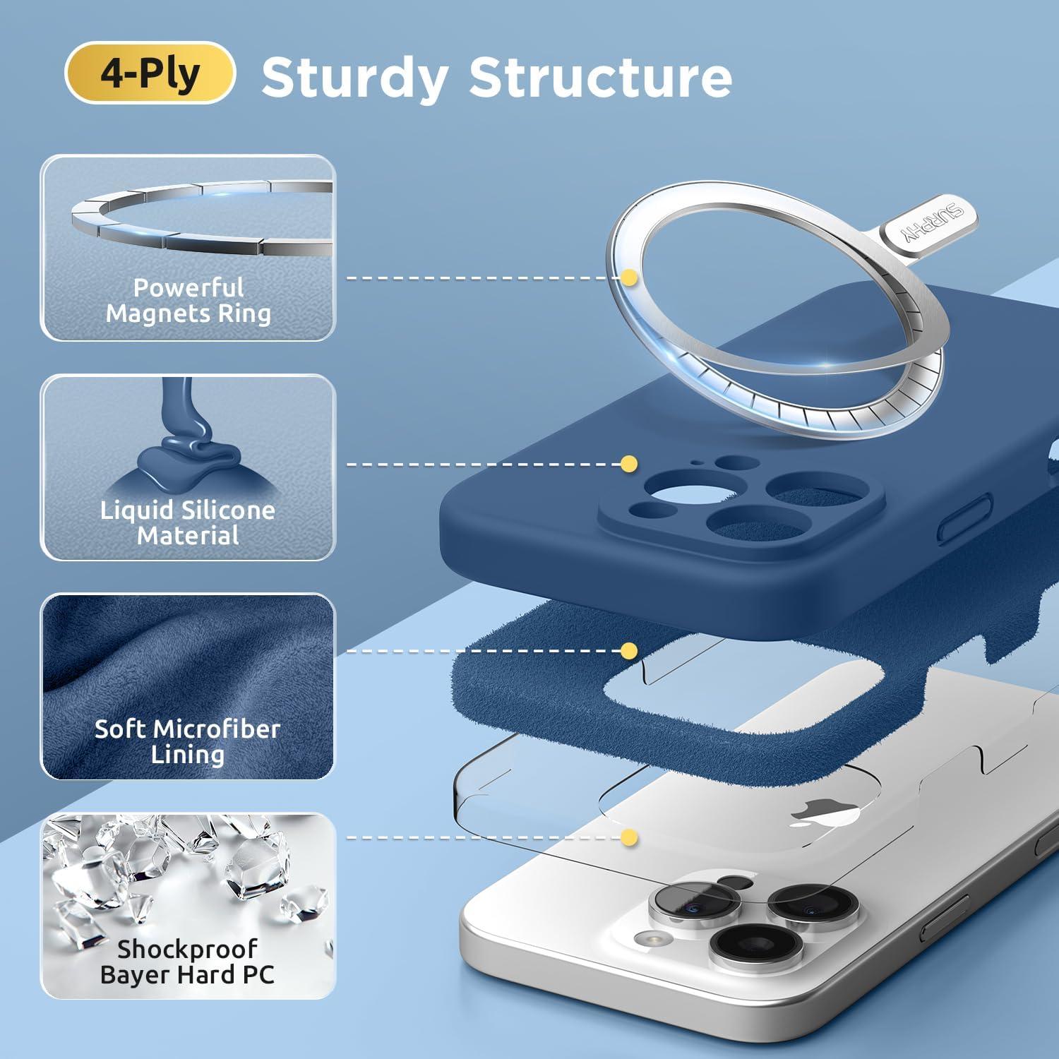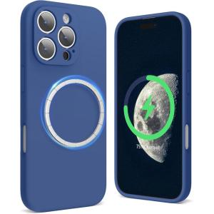 SURPHY Designed for iPhone 16 Case Compatible with MagSafe (6.1 inch 2024), with Screen Protector Liquid Silicone Phone Case (Camera Protective, Soft Microfiber Lining), Black(Midnight Blue)