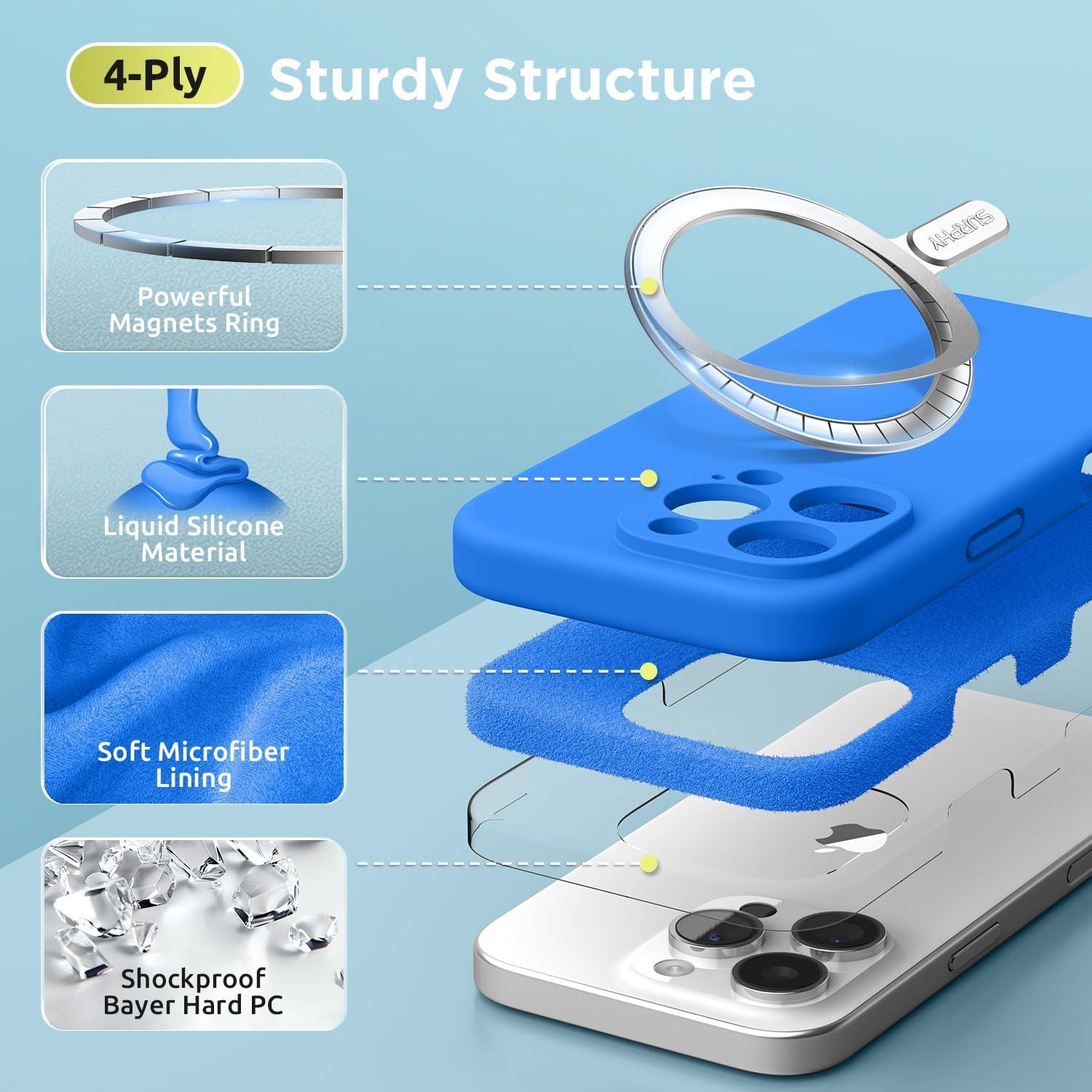SURPHY Designed for iPhone 16 Case Compatible with MagSafe (6.1 inch 2024), with Screen Protector Liquid Silicone Phone Case (Camera Protective, Soft Microfiber Lining), Black(Blue Jay)