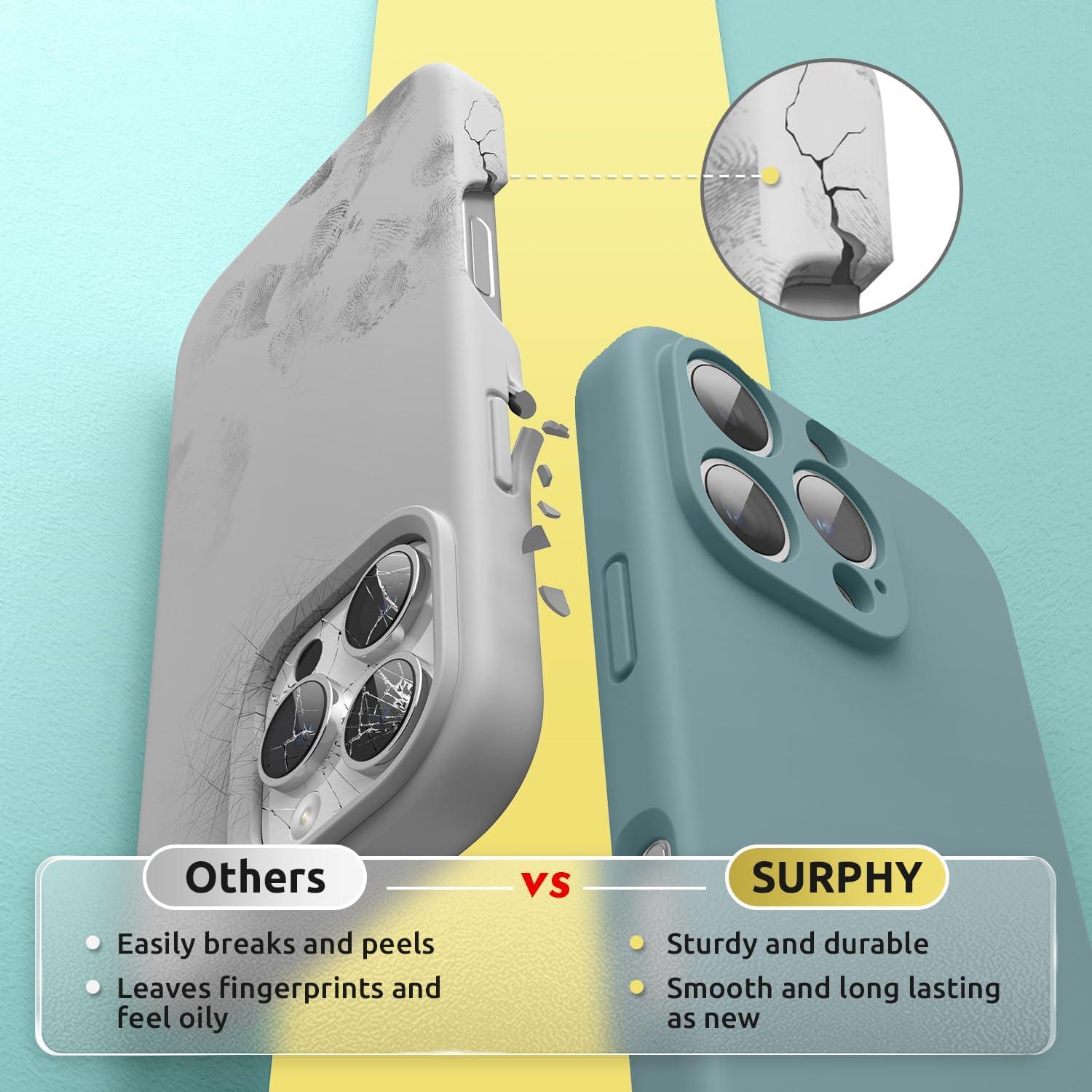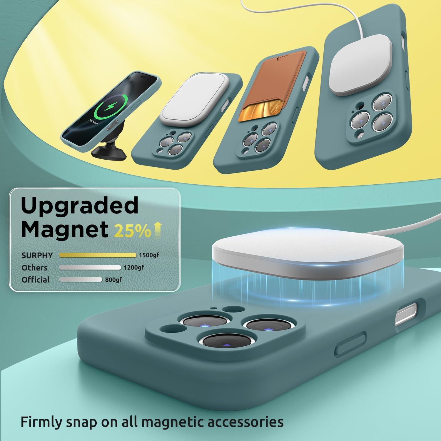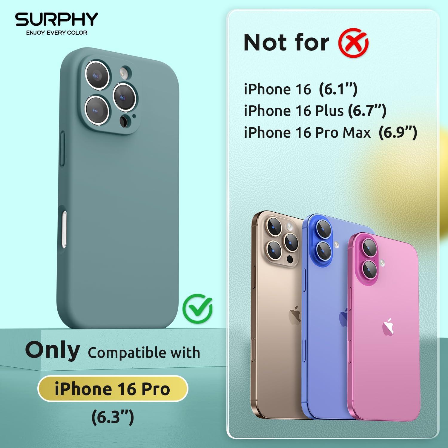 SURPHY Designed for iPhone 16 Pro Case Compatible with MagSafe (6.3 inch 2024), Liquid Silicone Phone Case (Camera Protective, Soft Microfiber Lining), Pink(Lake Green)