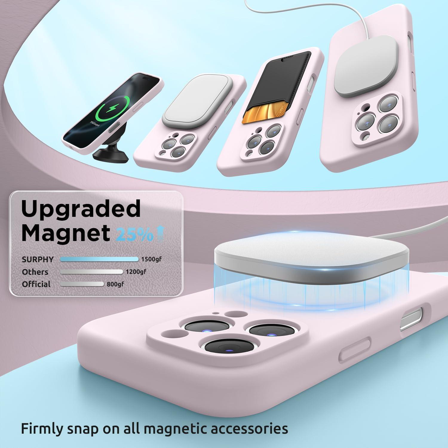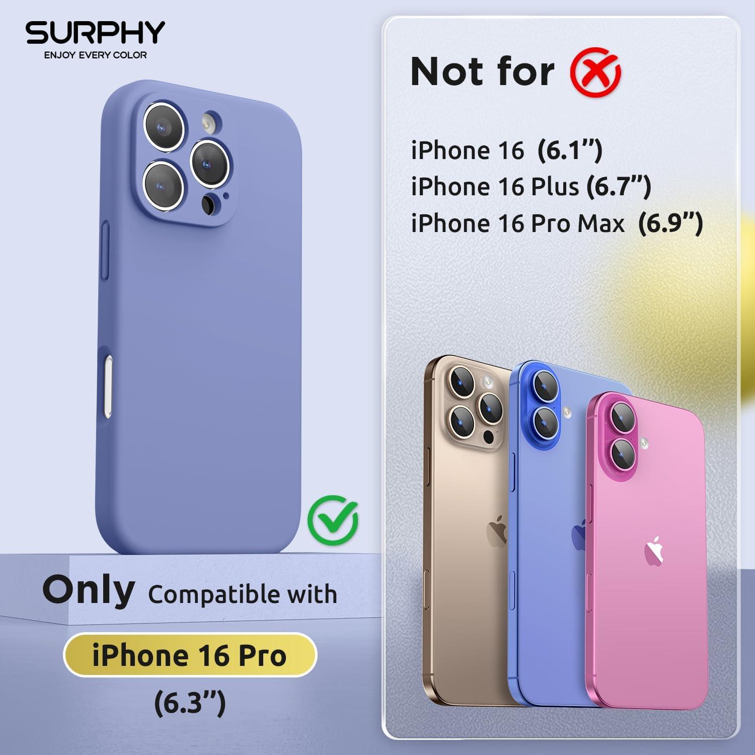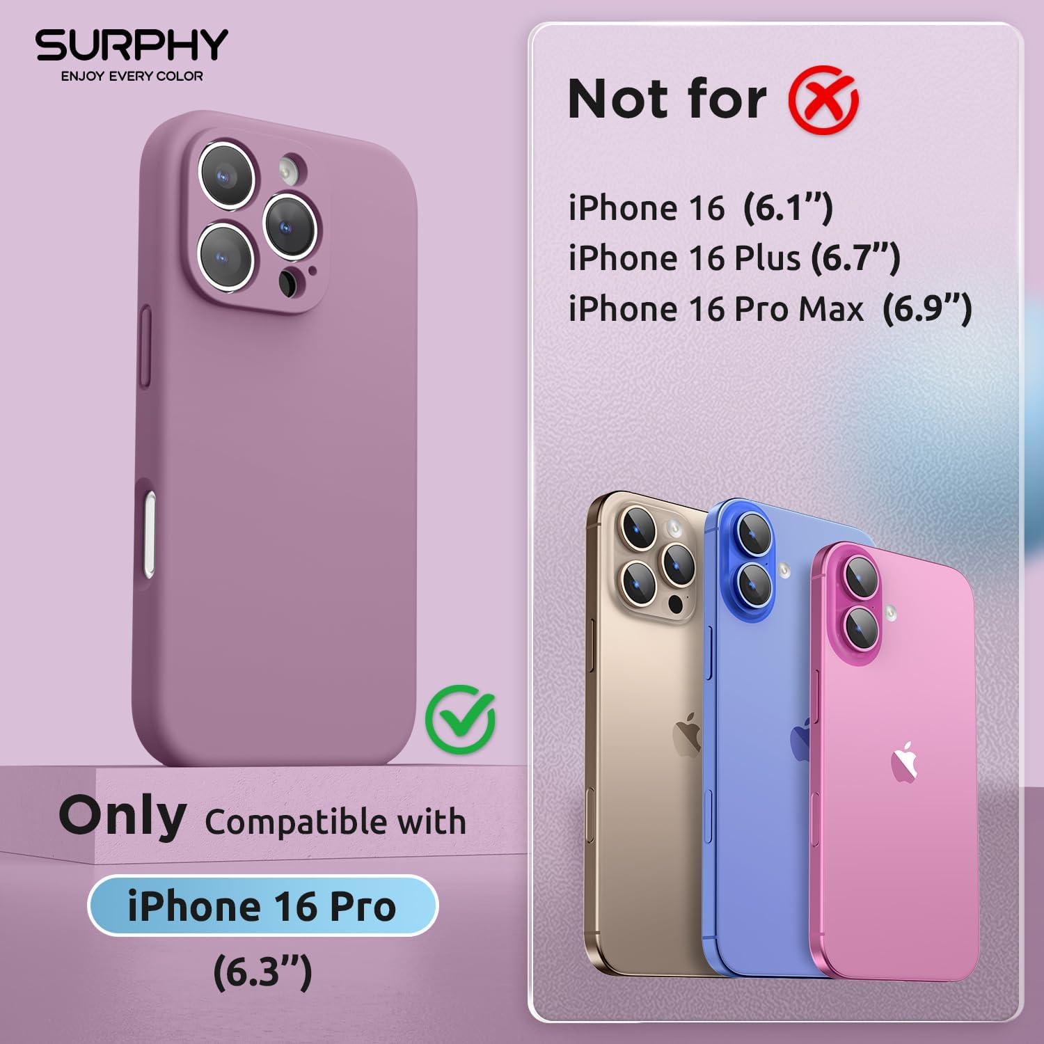SURPHY Designed for iPhone 16 Pro Case Compatible with MagSafe (6.3 inch 2024), Liquid Silicone Phone Case (Camera Protective, Soft Microfiber Lining), Pink(Lilac)