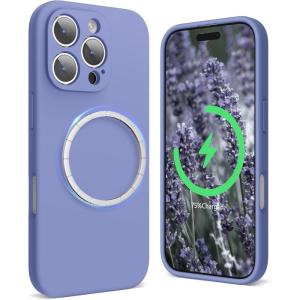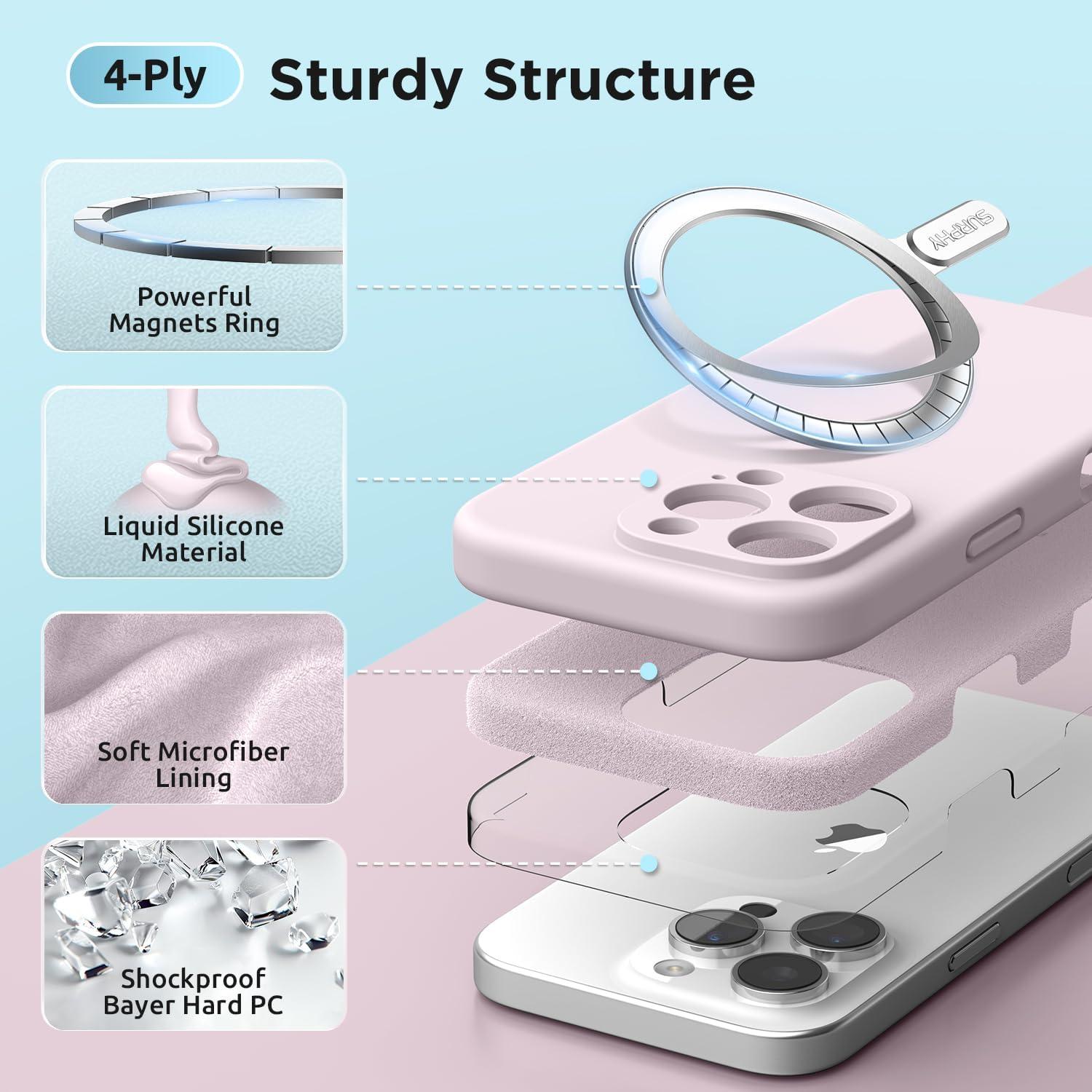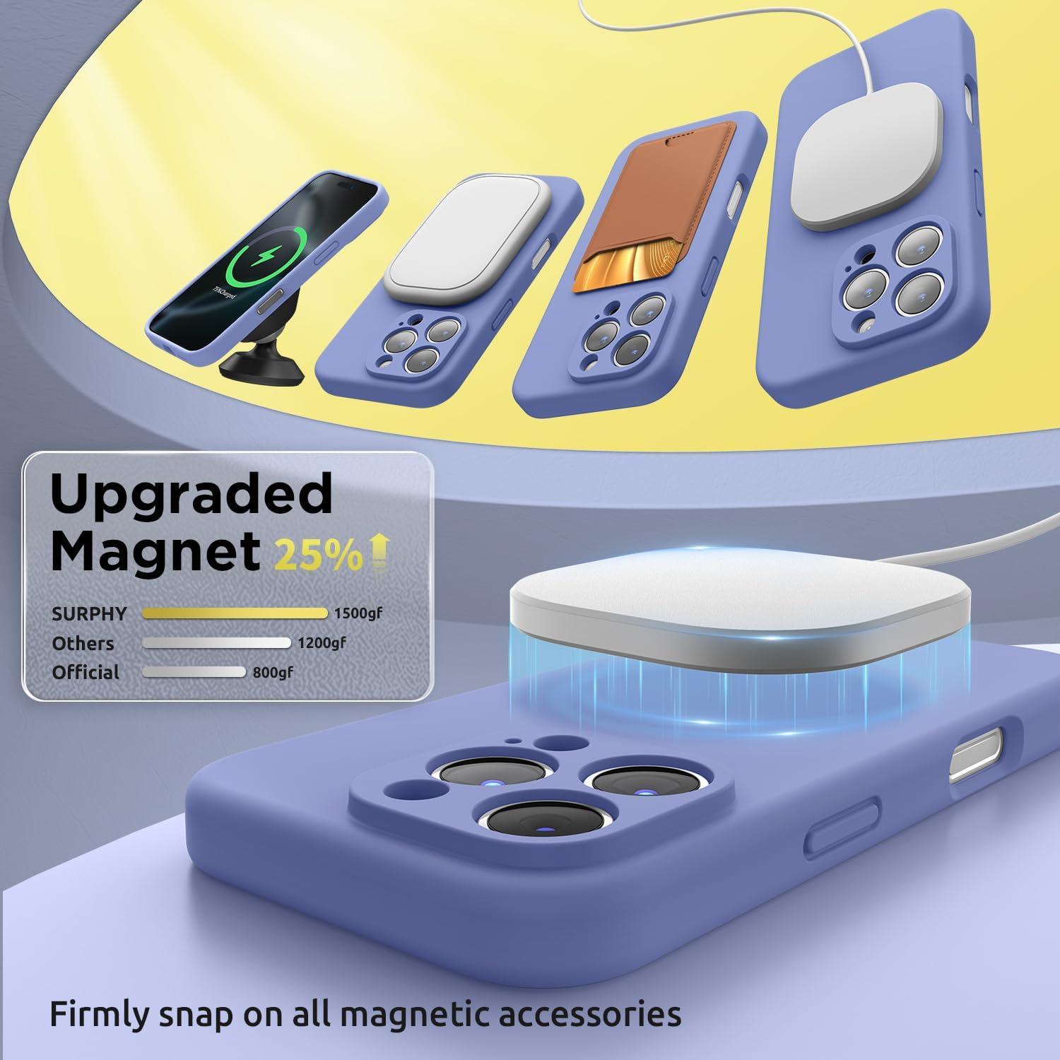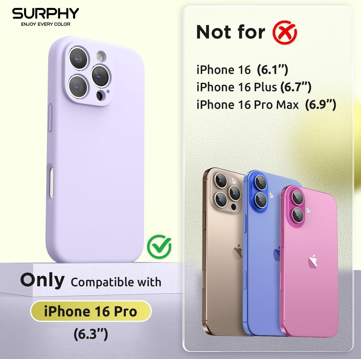 SURPHY Designed for iPhone 16 Pro Case Compatible with MagSafe (6.3 inch 2024), Liquid Silicone Phone Case (Camera Protective, Soft Microfiber Lining), Pink(Lilac)