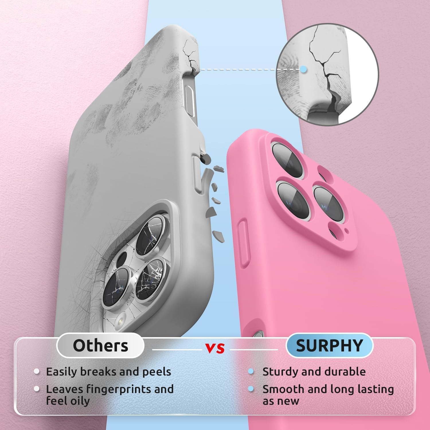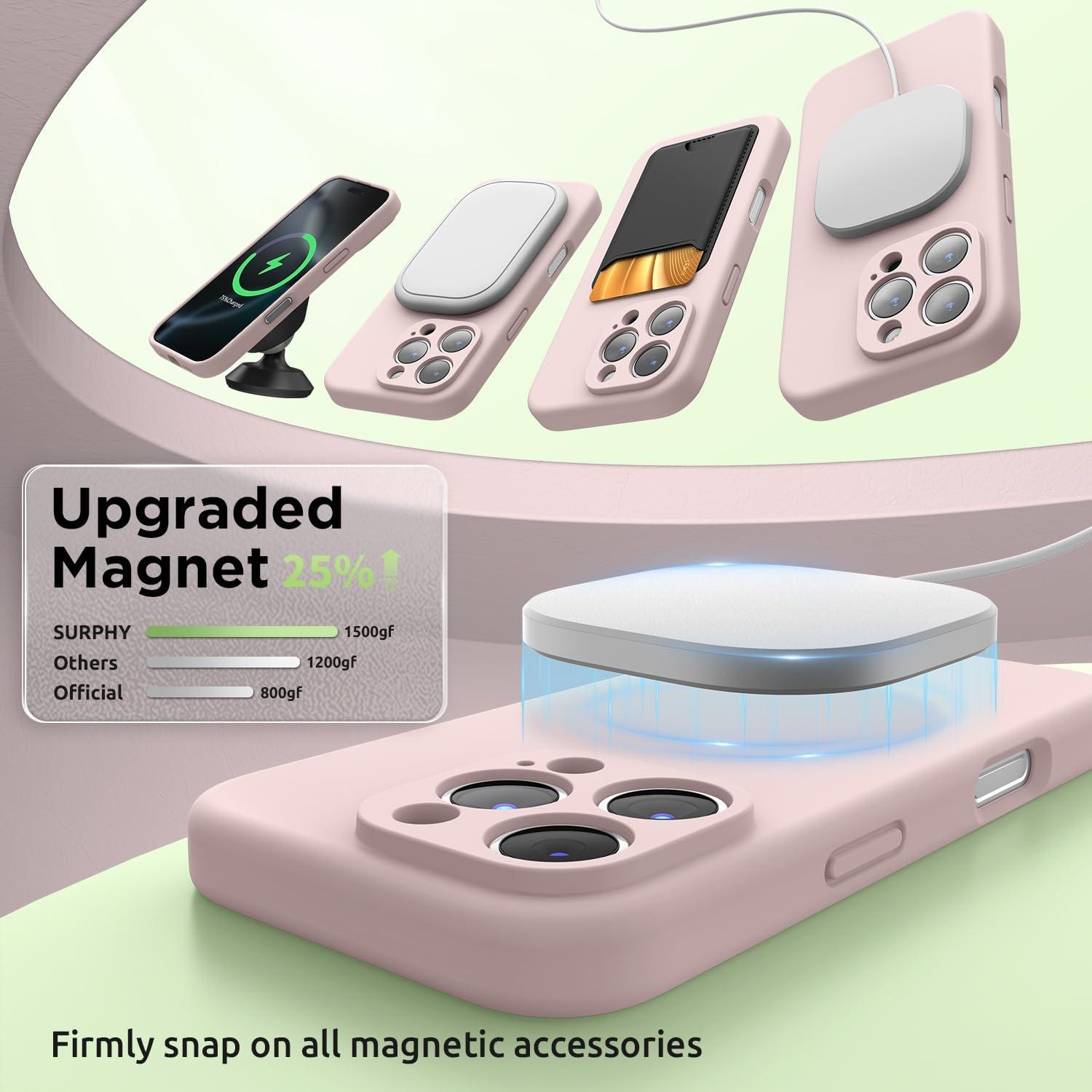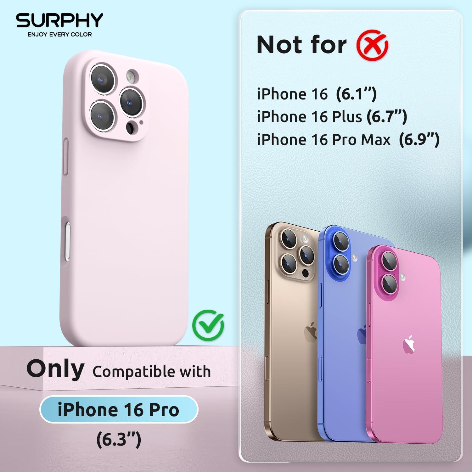 SURPHY Designed for iPhone 16 Pro Case Compatible with MagSafe (6.3 inch 2024), Liquid Silicone Phone Case (Camera Protective, Soft Microfiber Lining), Pink(Pink)