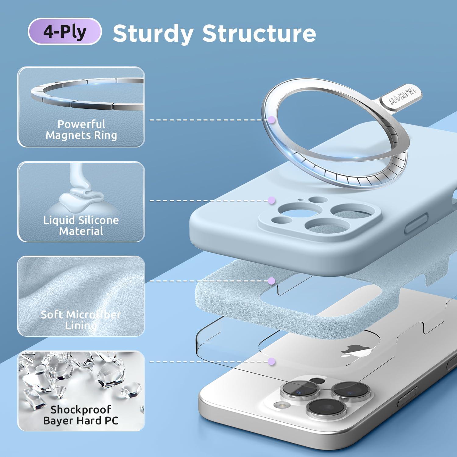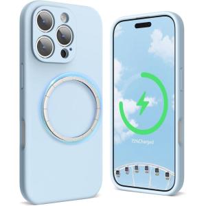 SURPHY Designed for iPhone 16 Case Compatible with MagSafe (6.1 inch 2024), with Screen Protector Liquid Silicone Phone Case (Camera Protective, Soft Microfiber Lining), Black(Cloud Blue)