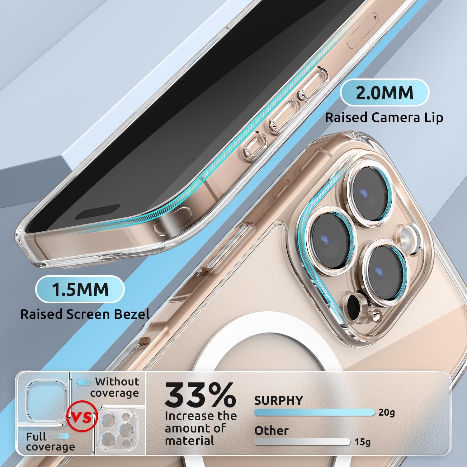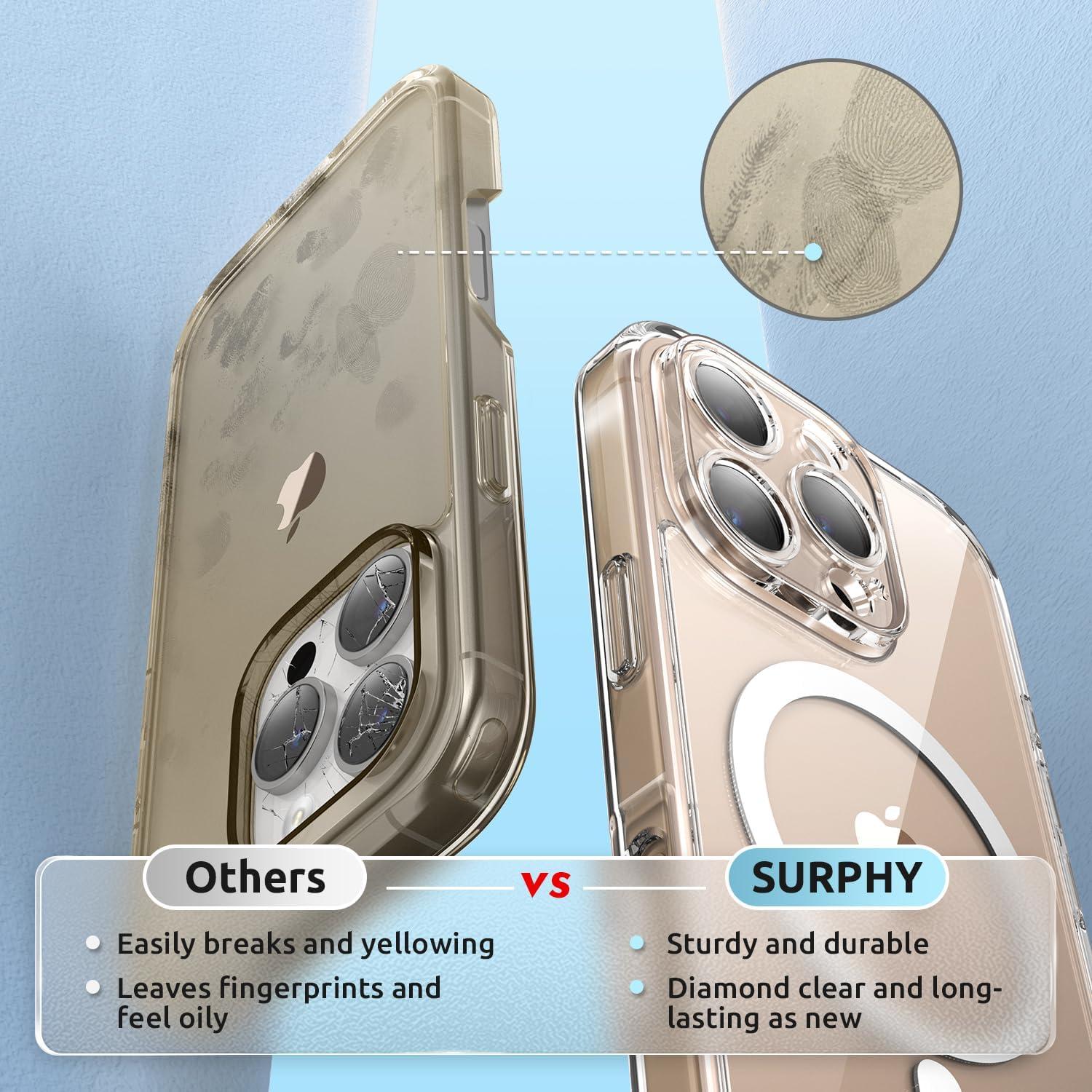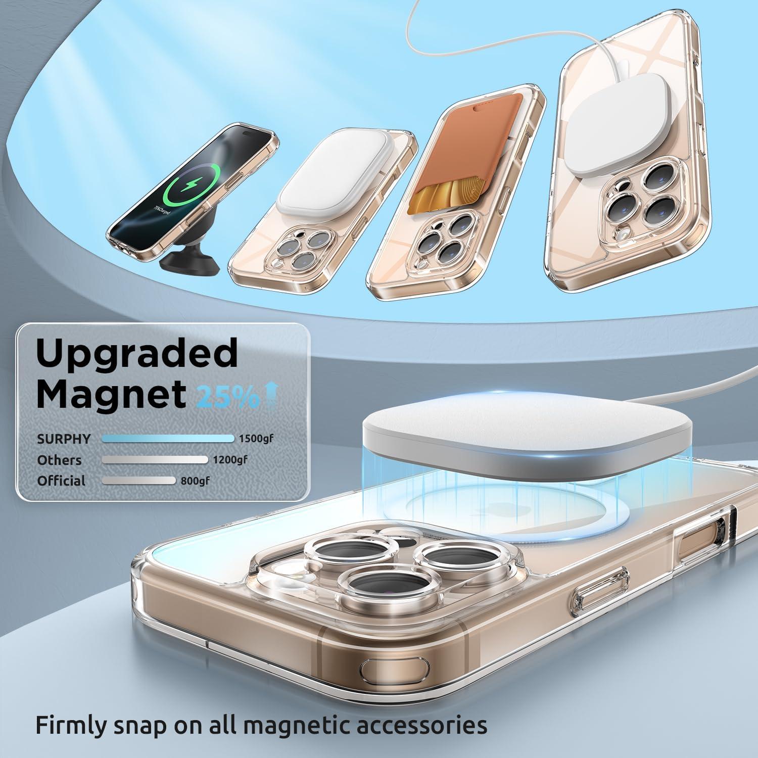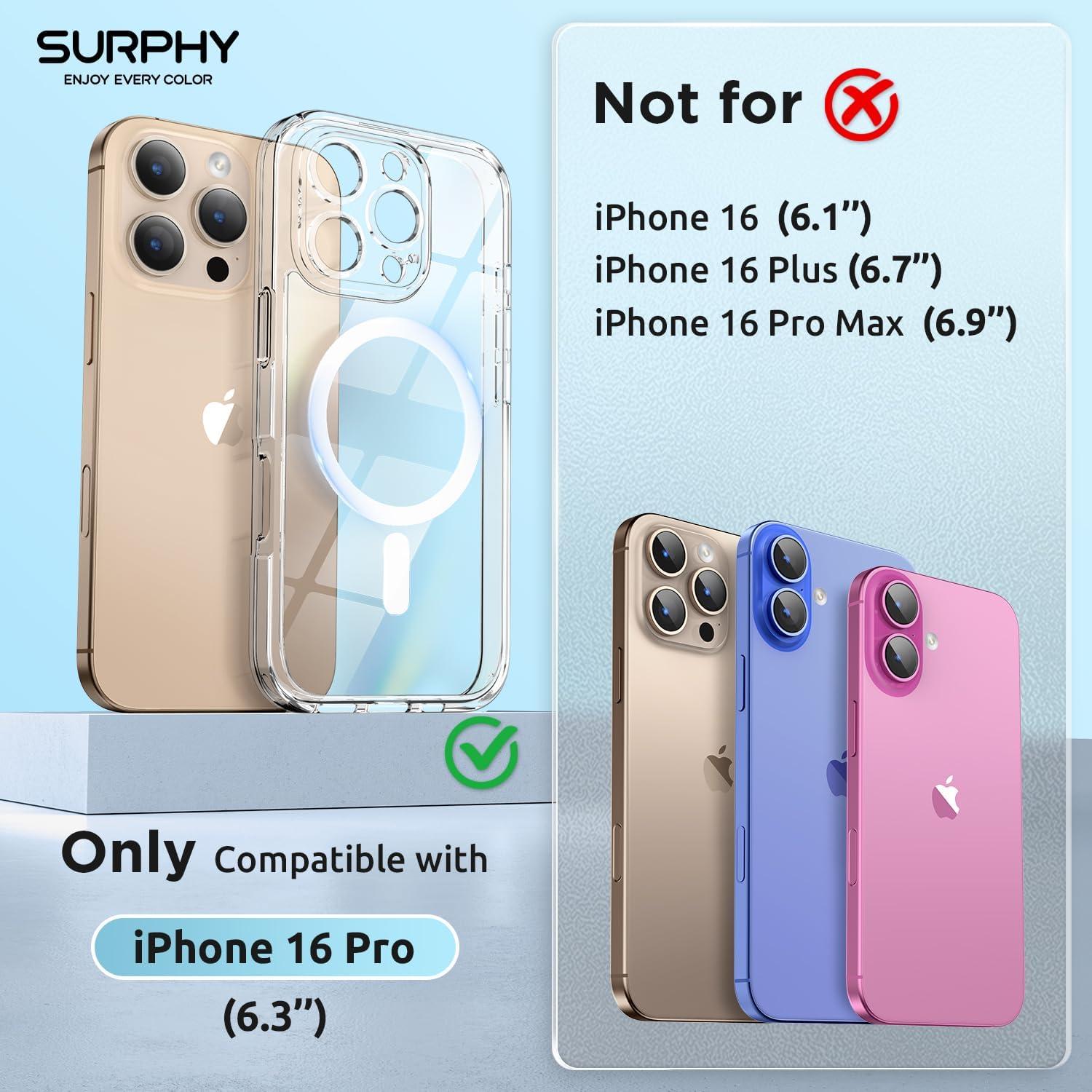 SURPHY 360° Magnetic Stand for iPhone 16 Pro Case with Finger Ring, Compatible with MagSafe, Ring Stand and Finger Ring Phone Case for 16 Pro 6.3 inch 2024, Clear(Clear)