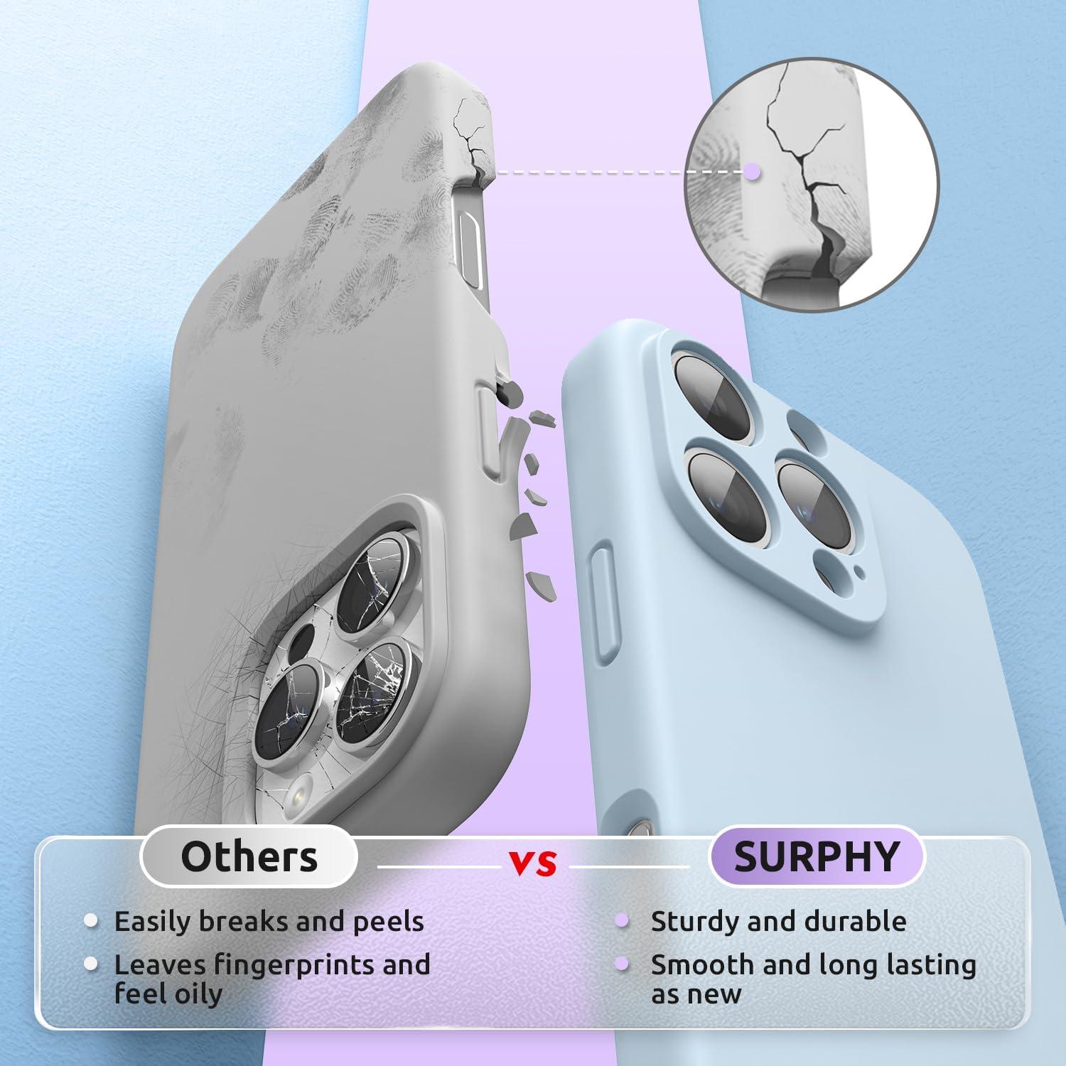 SURPHY Designed for iPhone 16 Pro Case Compatible with MagSafe (6.3 inch 2024), Liquid Silicone Phone Case (Camera Protective, Soft Microfiber Lining), Pink(Cloud Blue)