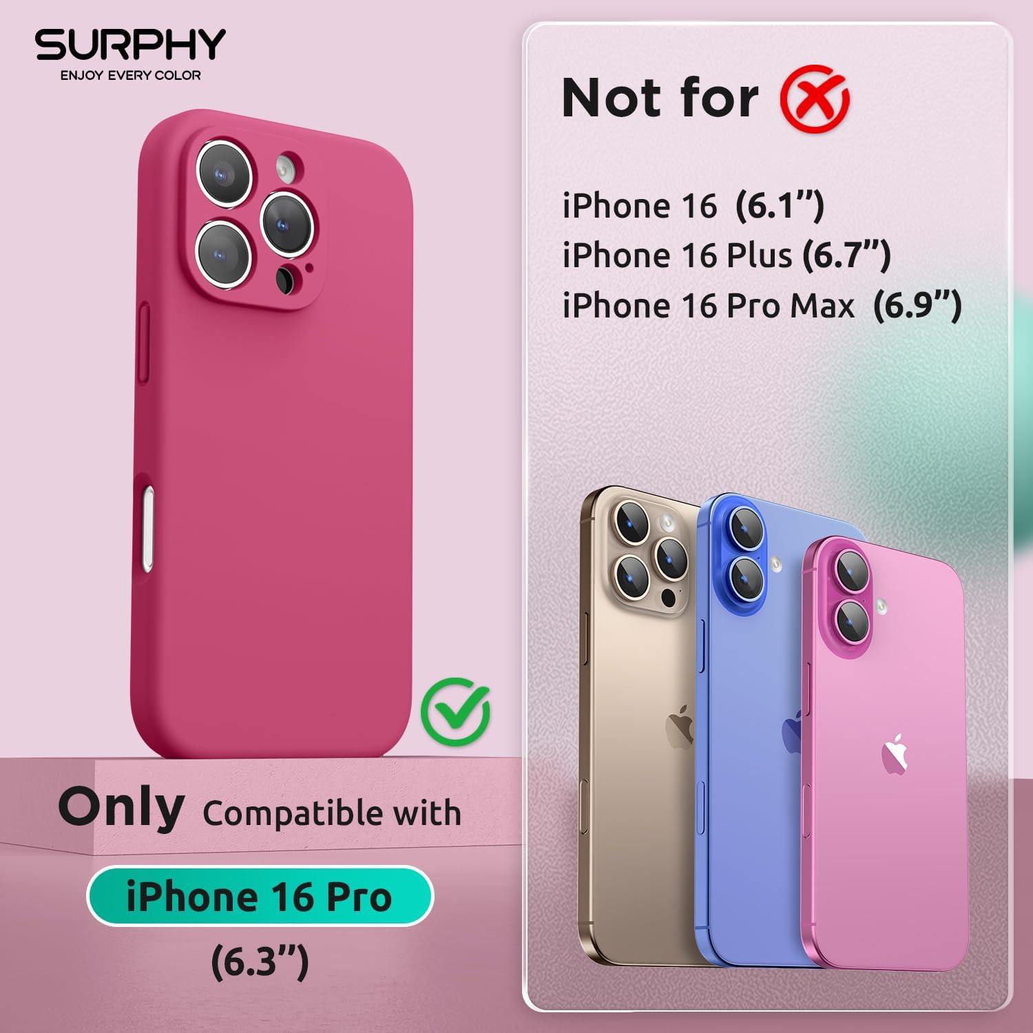 SURPHY Designed for iPhone 16 Pro Case Compatible with MagSafe (6.3 inch 2024), Liquid Silicone Phone Case (Camera Protective, Soft Microfiber Lining), Pink(Plum)