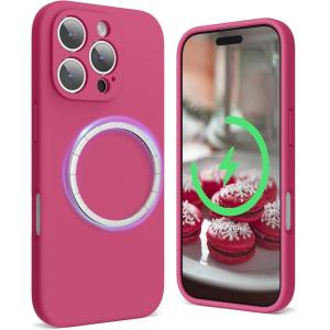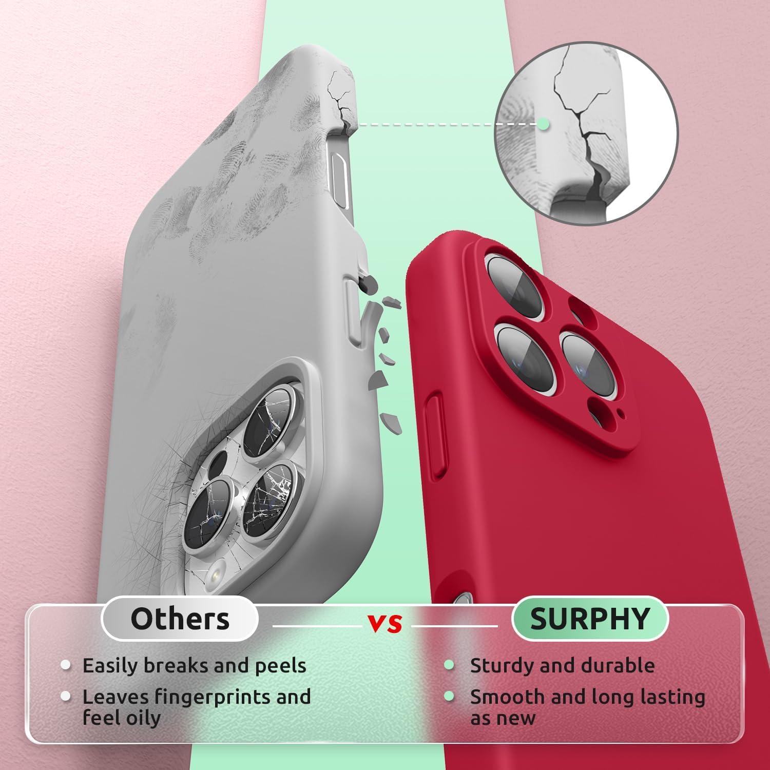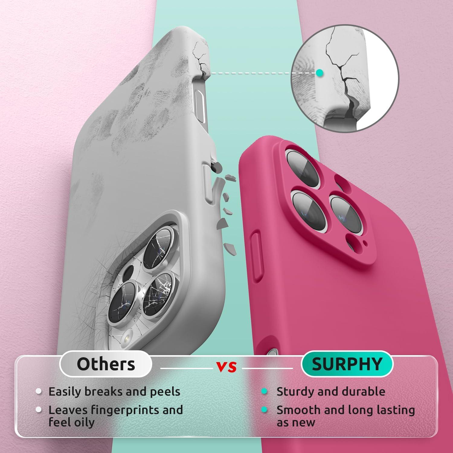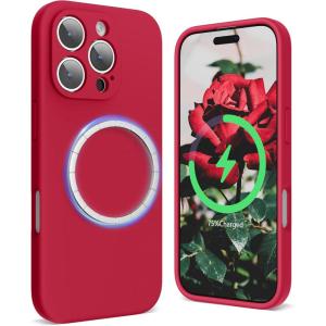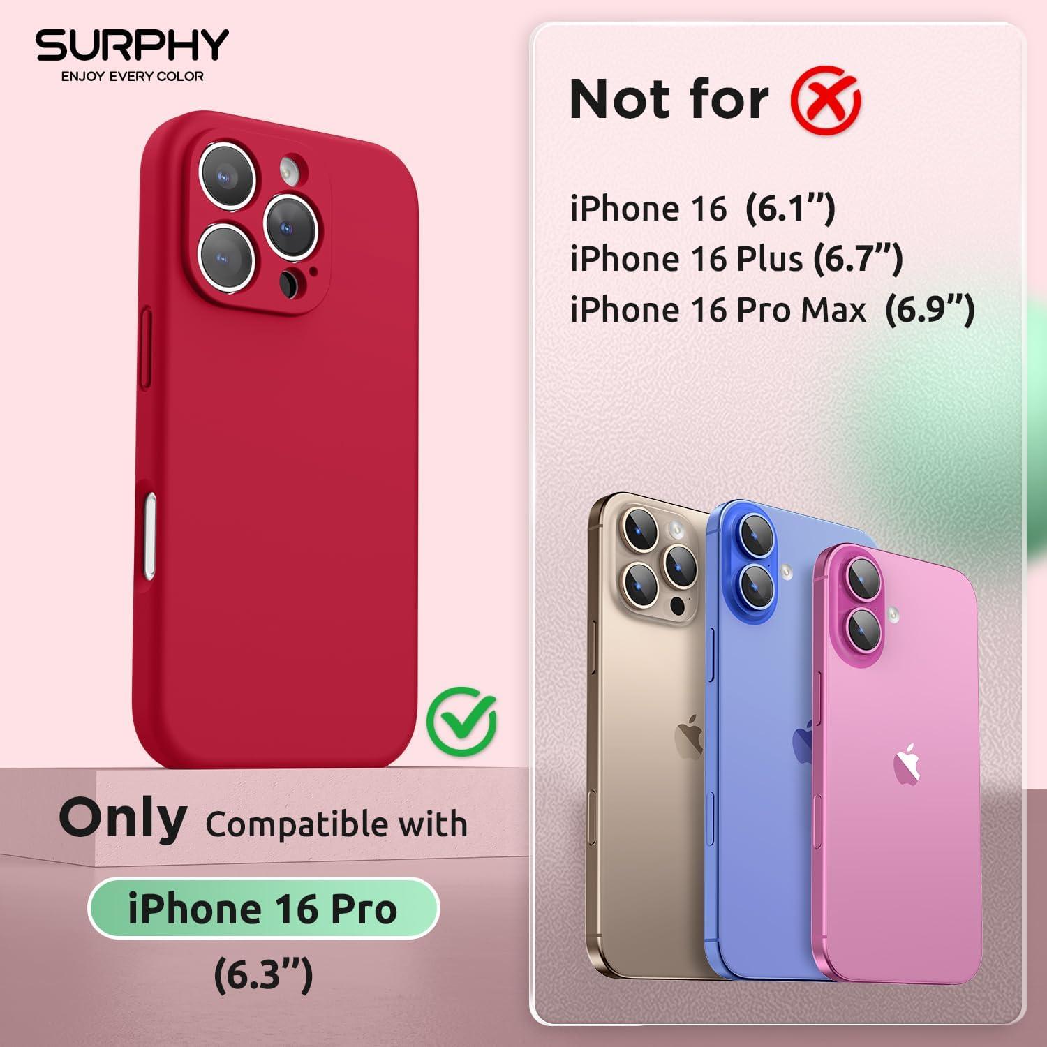 SURPHY Designed for iPhone 16 Pro Case Compatible with MagSafe (6.3 inch 2024), Liquid Silicone Phone Case (Camera Protective, Soft Microfiber Lining), Pink(Red)