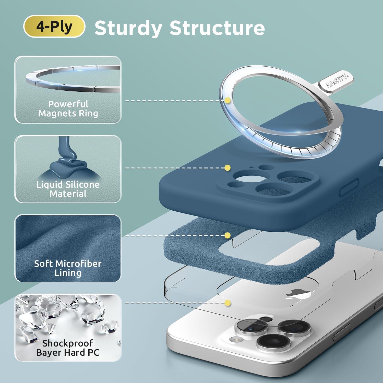 SURPHY Designed for iPhone 16 Case Compatible with MagSafe (6.1 inch 2024), with Screen Protector Liquid Silicone Phone Case (Camera Protective, Soft Microfiber Lining), Black(Denim)
