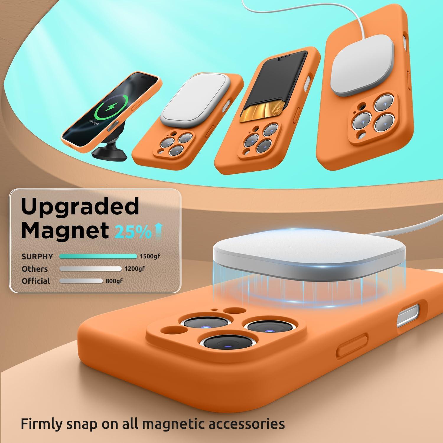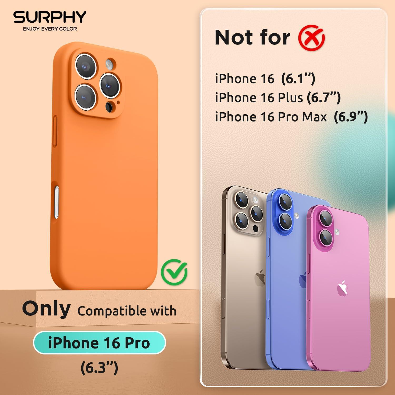 SURPHY Designed for iPhone 16 Pro Case Compatible with MagSafe (6.3 inch 2024), Liquid Silicone Phone Case (Camera Protective, Soft Microfiber Lining), Pink(Marigold Orange)