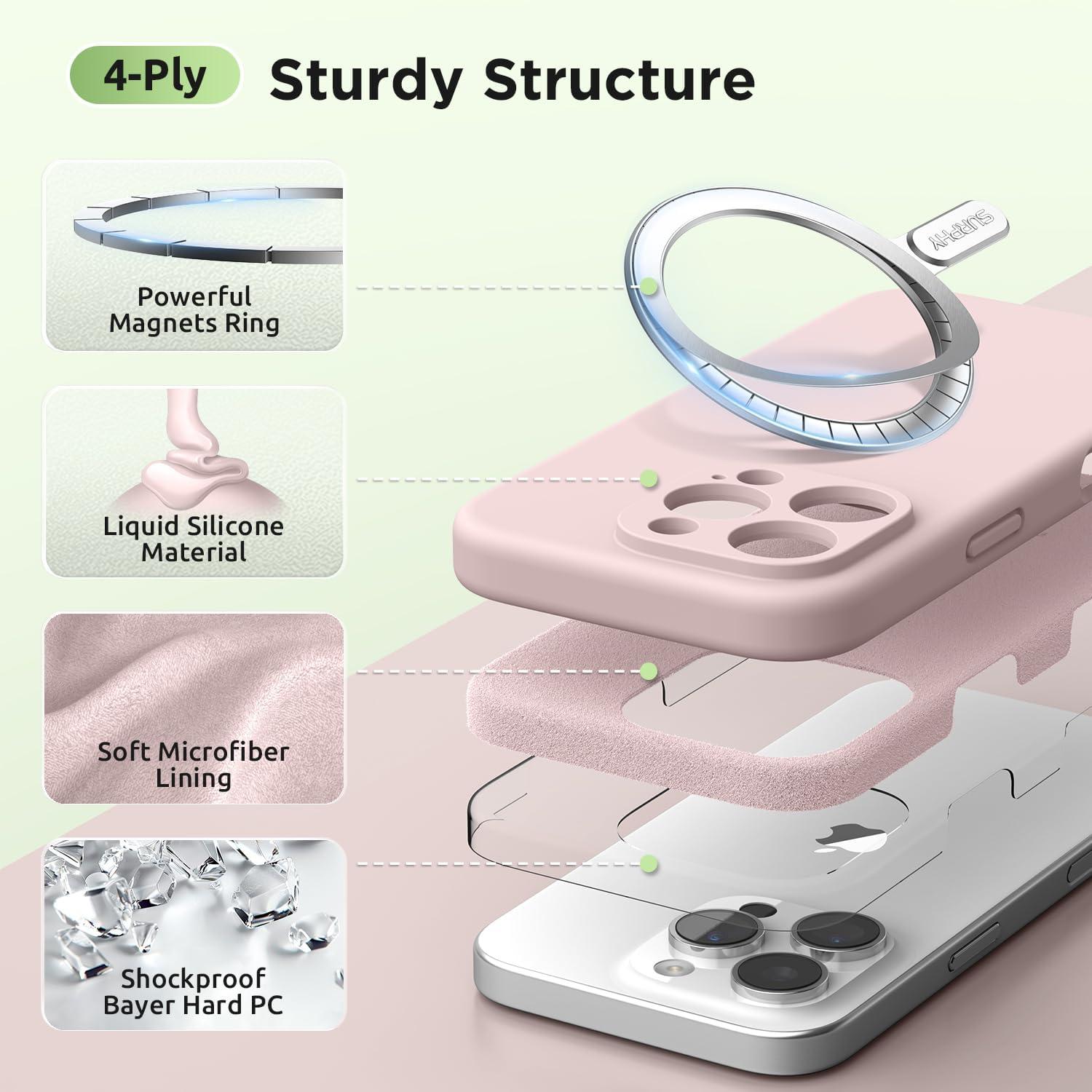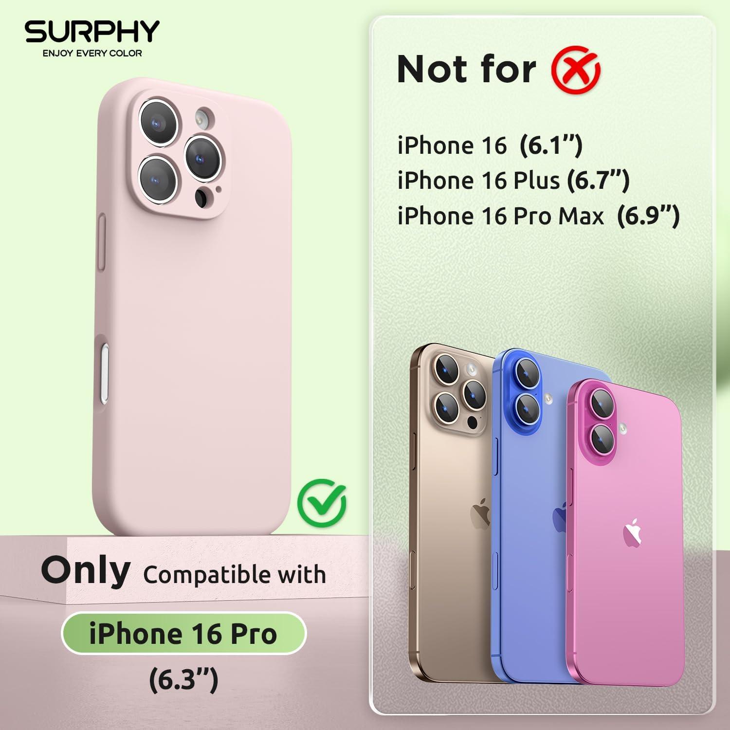 SURPHY Designed for iPhone 16 Pro Case Compatible with MagSafe (6.3 inch 2024), Liquid Silicone Phone Case (Camera Protective, Soft Microfiber Lining), Pink(Pink Sand)