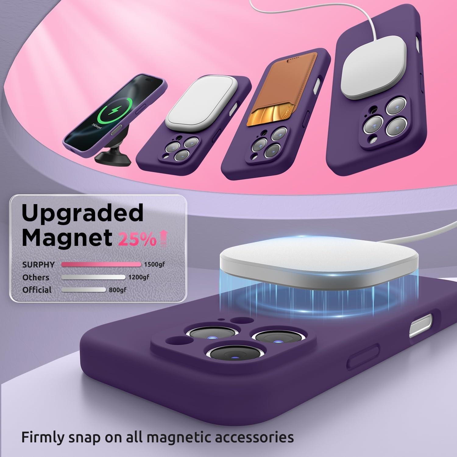 SURPHY Designed for iPhone 16 Pro Case Compatible with MagSafe (6.3 inch 2024), Liquid Silicone Phone Case (Camera Protective, Soft Microfiber Lining), Pink(Lilac Purple)