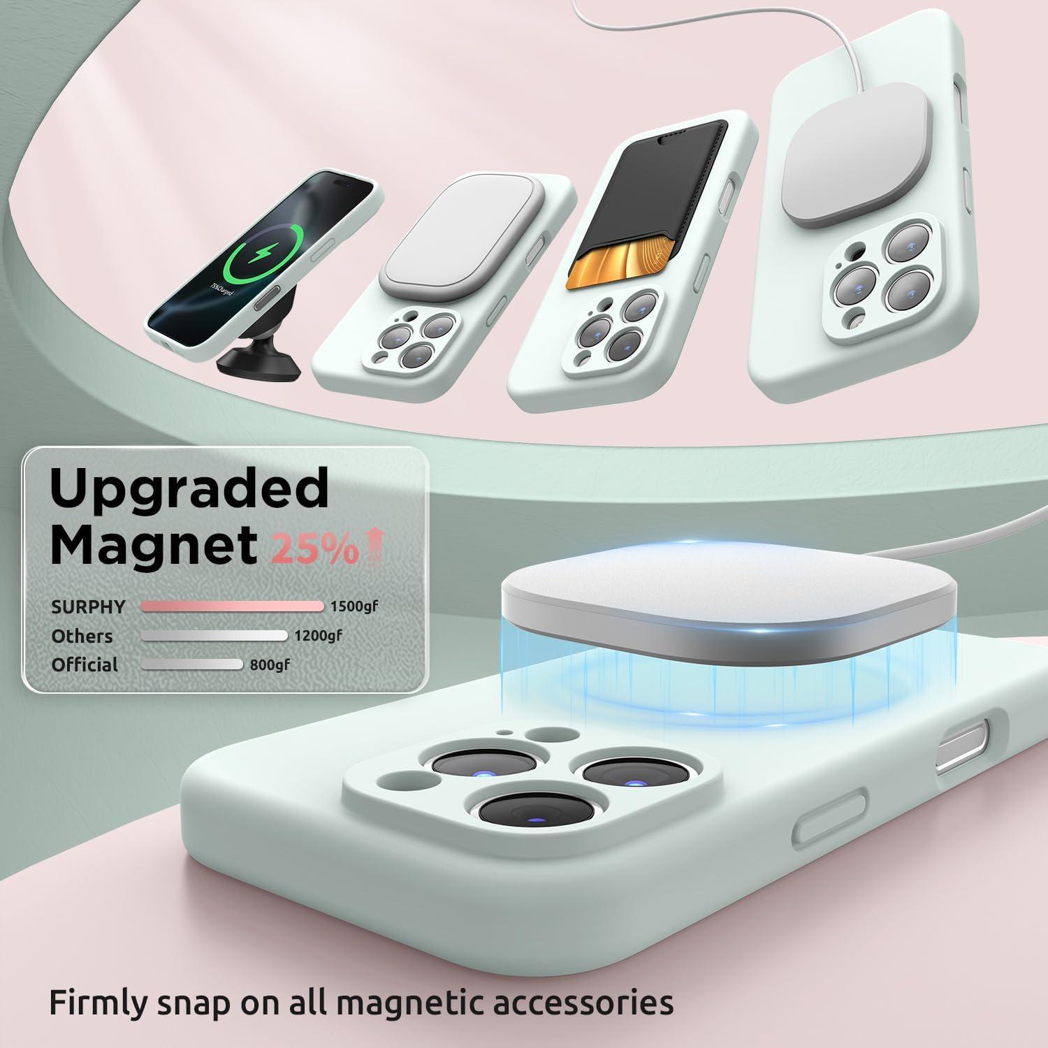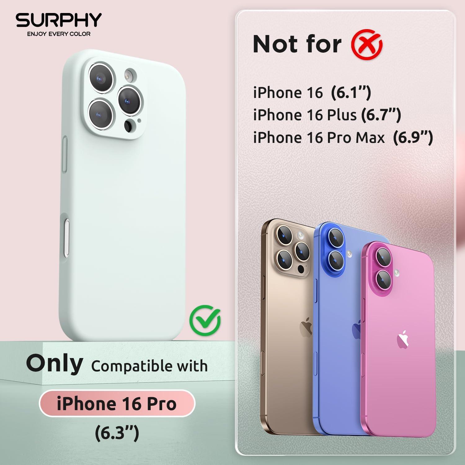 SURPHY Designed for iPhone 16 Pro Case Compatible with MagSafe (6.3 inch 2024), Liquid Silicone Phone Case (Camera Protective, Soft Microfiber Lining), Pink(Soft Mint)