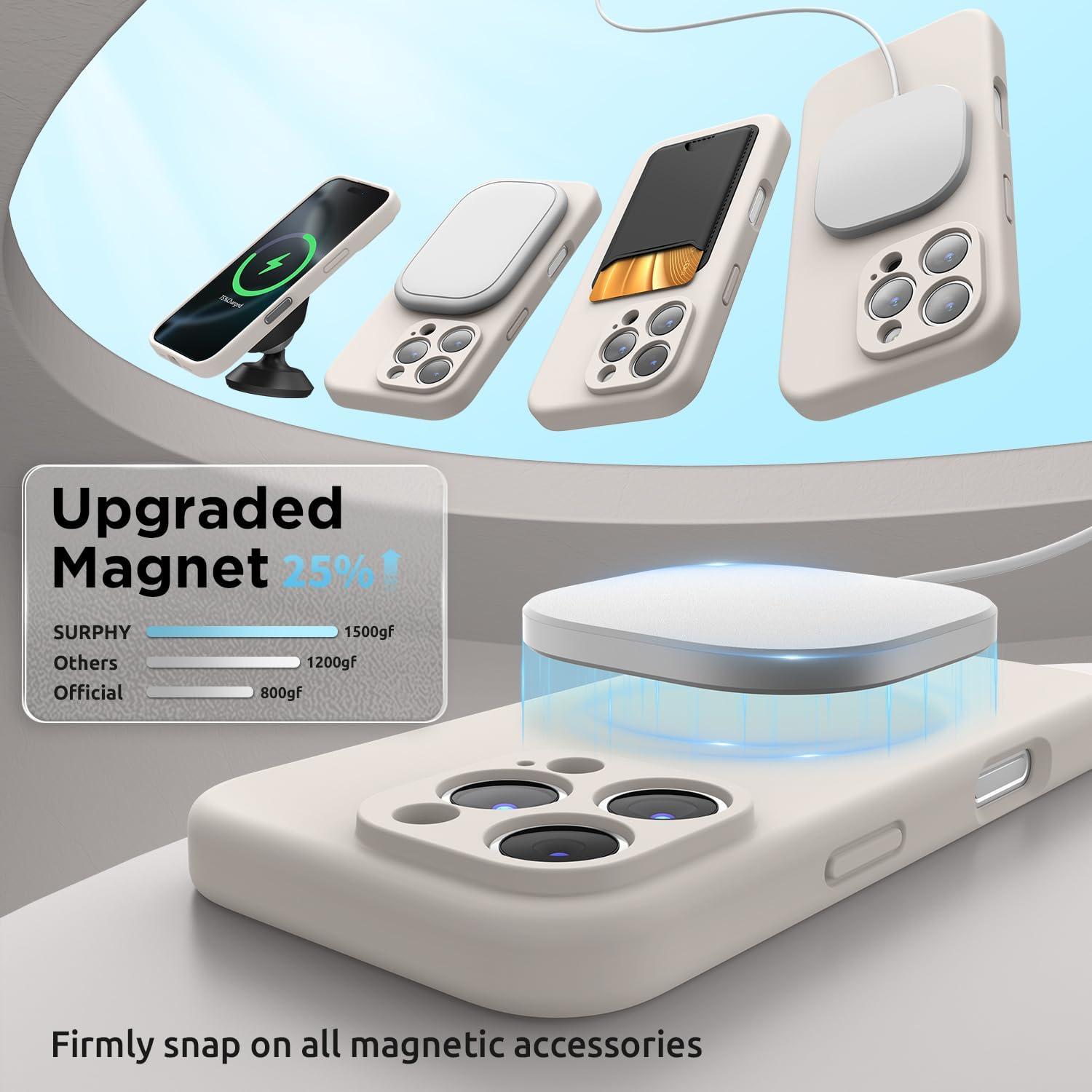 SURPHY Designed for iPhone 16 Pro Case Compatible with MagSafe (6.3 inch 2024), Liquid Silicone Phone Case (Camera Protective, Soft Microfiber Lining), Pink(Stone)