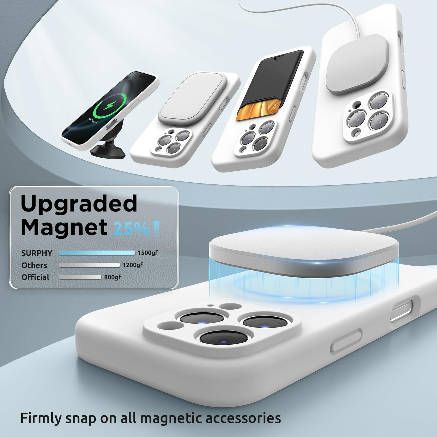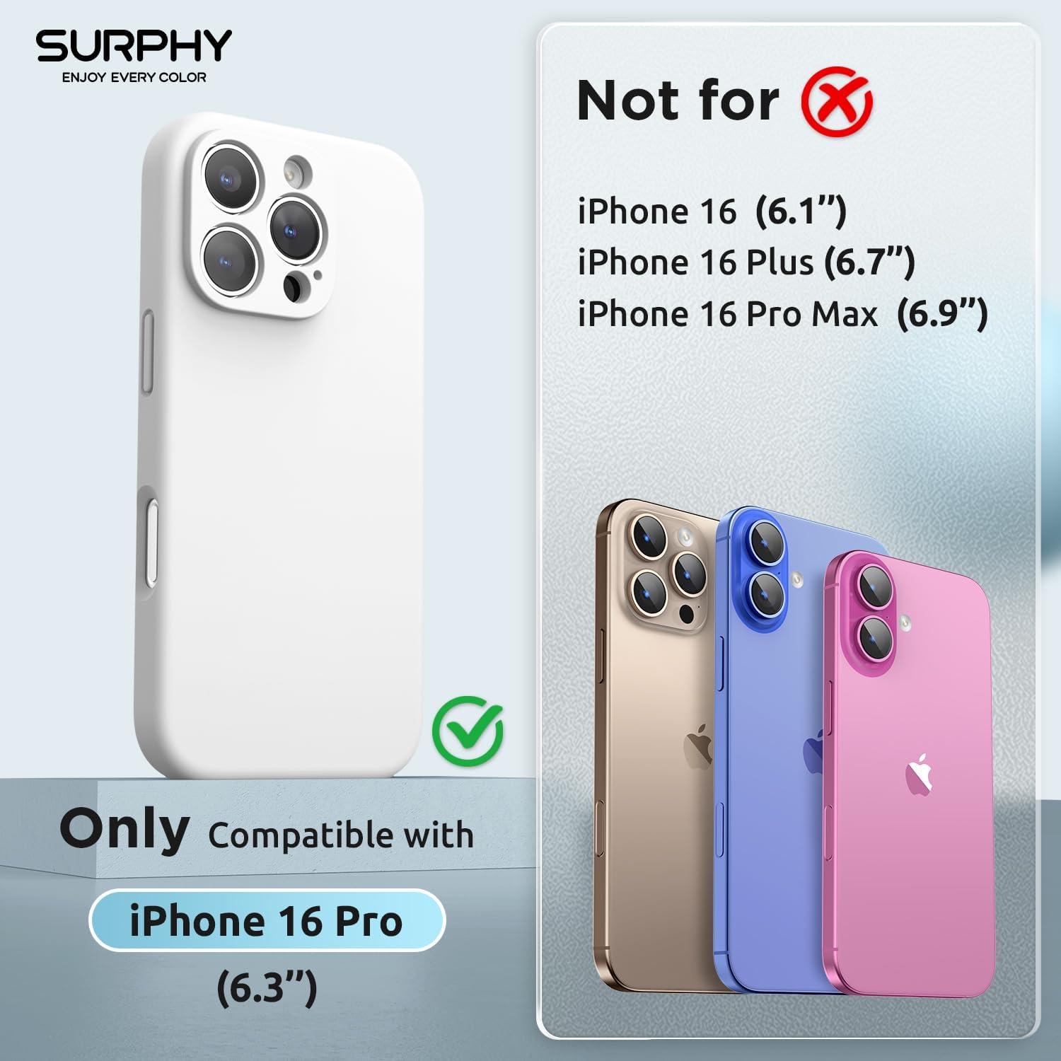 SURPHY Designed for iPhone 16 Pro Case Compatible with MagSafe (6.3 inch 2024), Liquid Silicone Phone Case (Camera Protective, Soft Microfiber Lining), Pink(White)