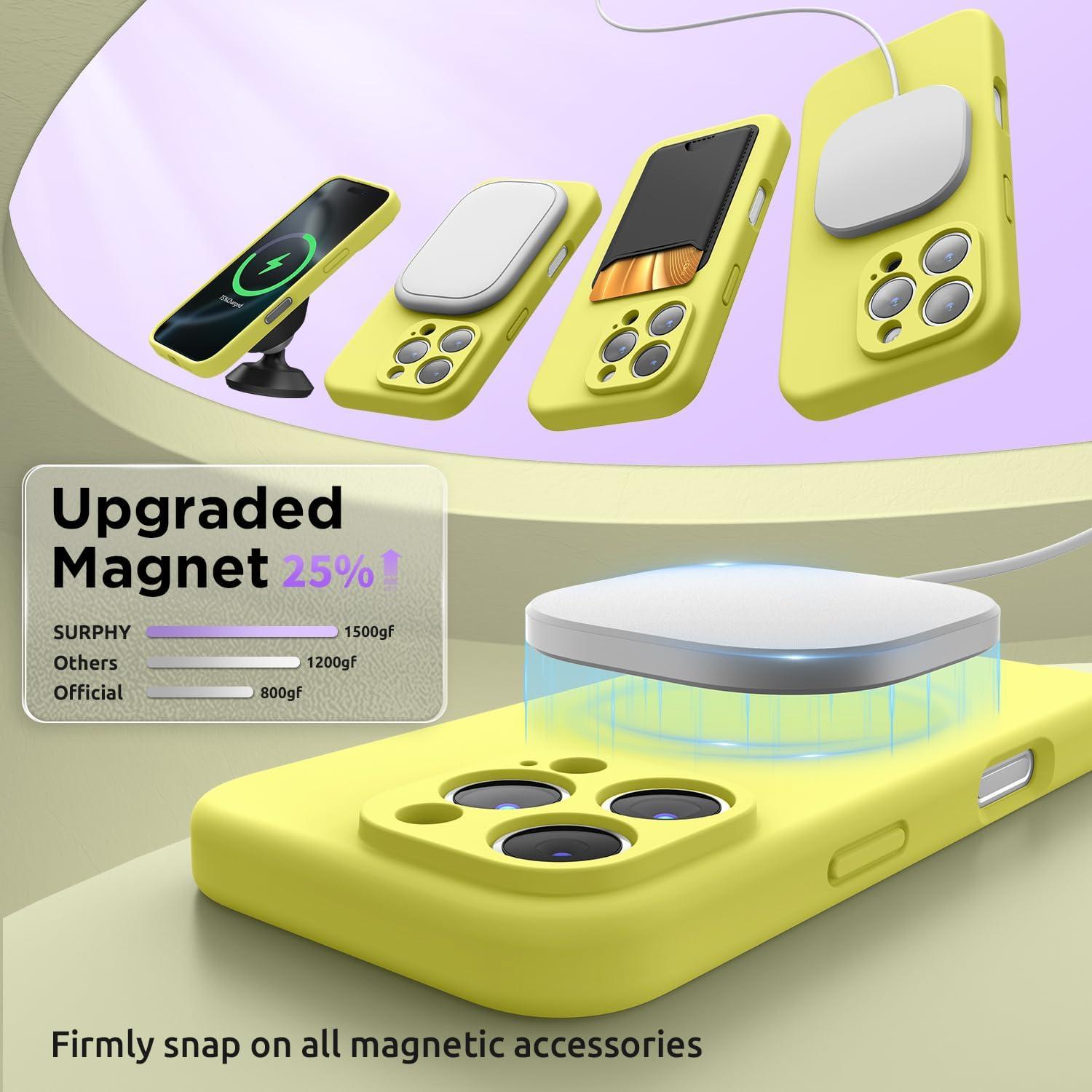 SURPHY Designed for iPhone 16 Pro Case Compatible with MagSafe (6.3 inch 2024), Liquid Silicone Phone Case (Camera Protective, Soft Microfiber Lining), Pink(Yellow)