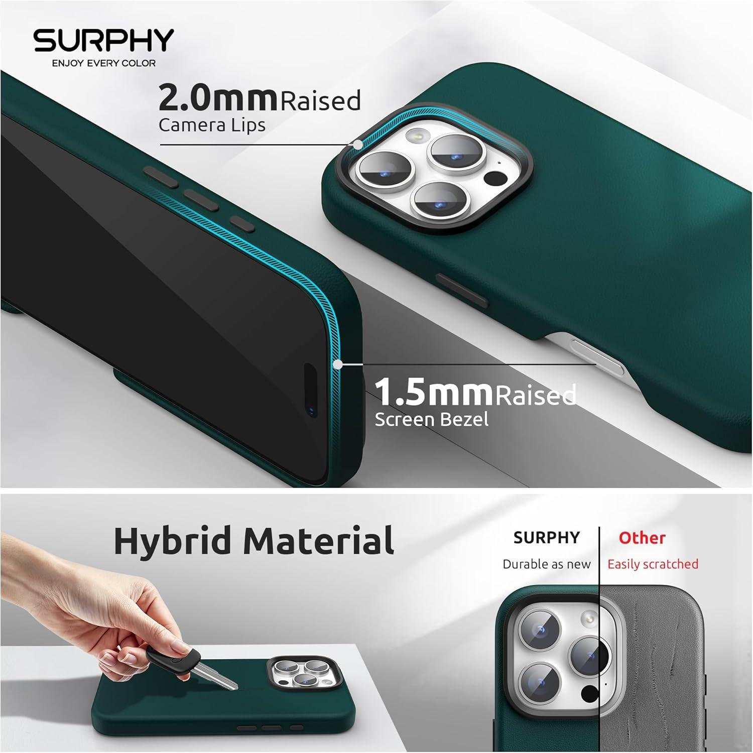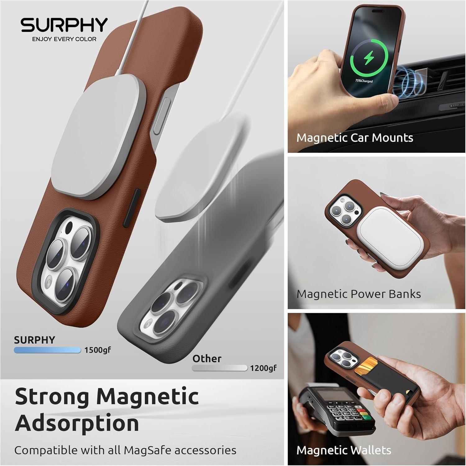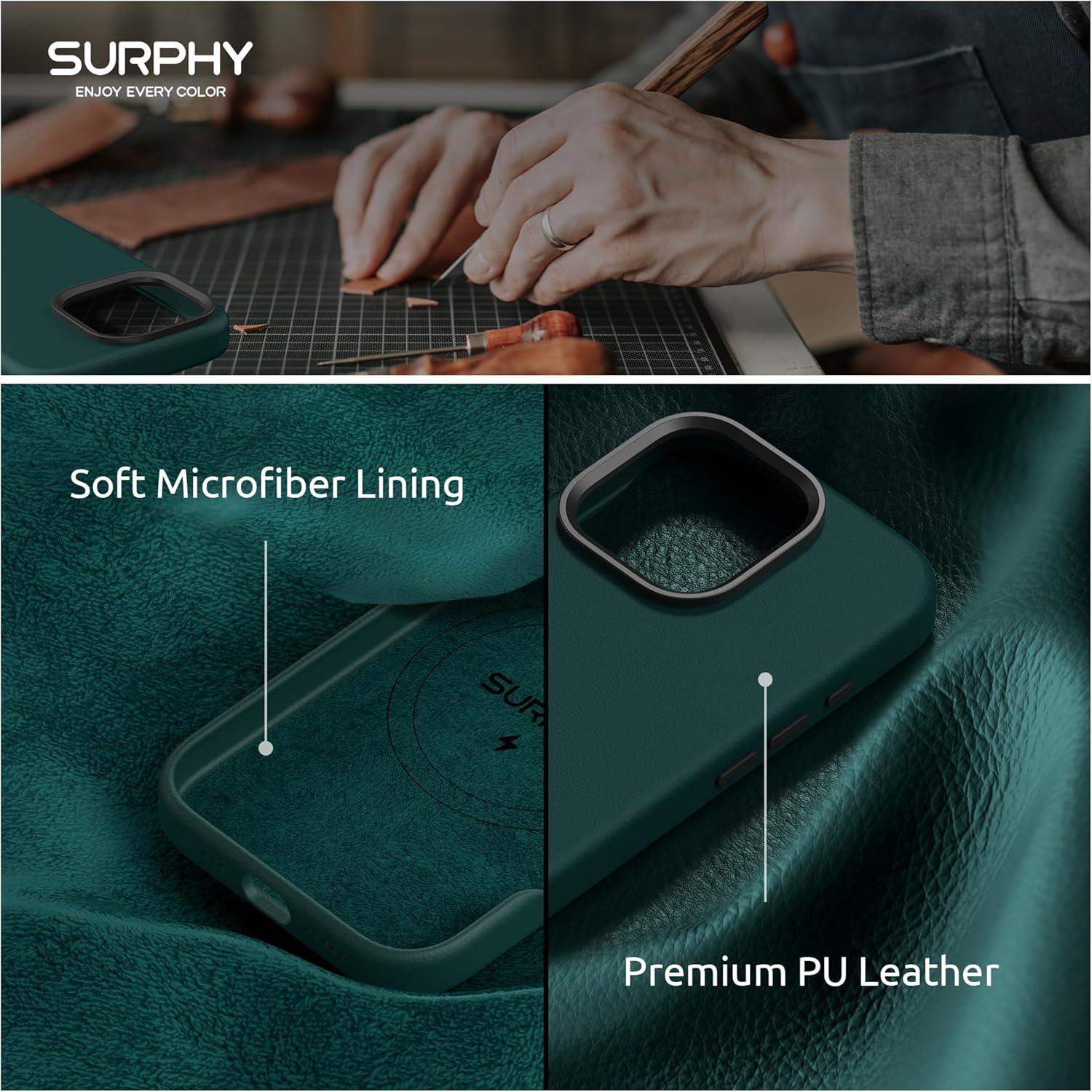 SURPHY Designed for iPhone 16 Pro Leather Case Compatible with MagSafe, Faux Leather Phone Case (Metallic Buttons, Microfiber Lining) for 16 Pro 6.3 inch 2024, Brown(Forest Green)