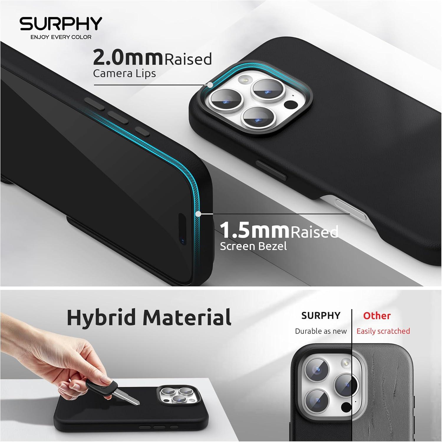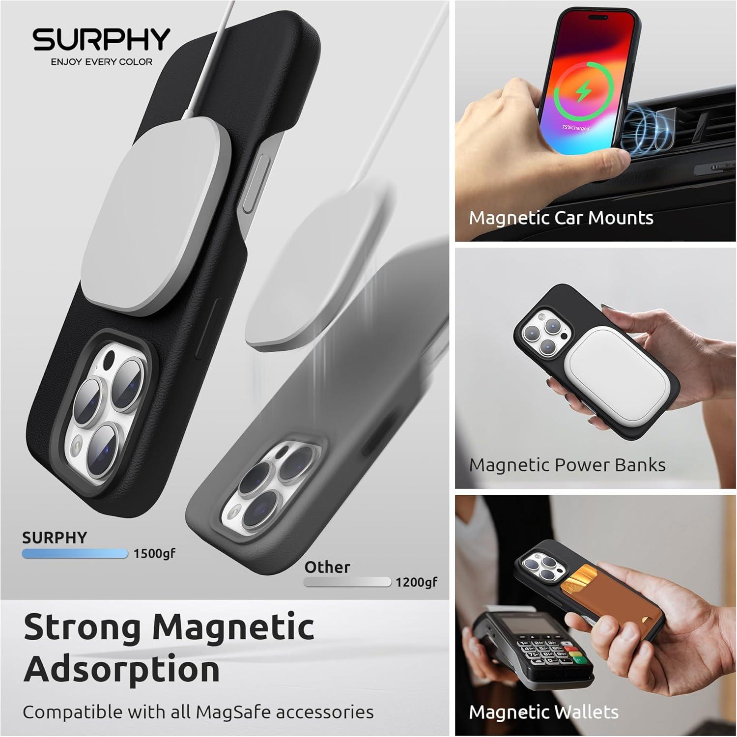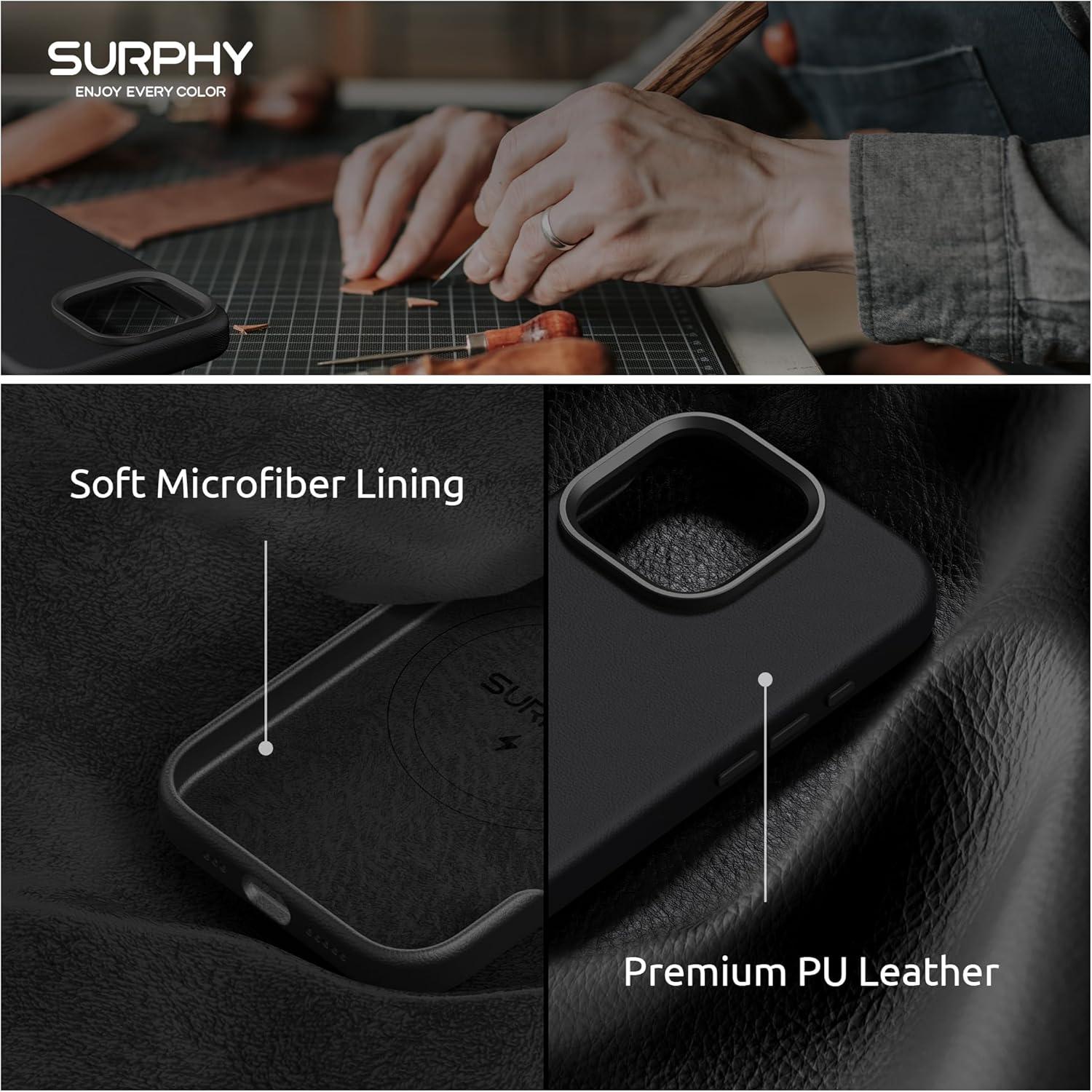 SURPHY Designed for iPhone 16 Pro Leather Case Compatible with MagSafe, Faux Leather Phone Case (Metallic Buttons, Microfiber Lining) for 16 Pro 6.3 inch 2024, Brown(Black)