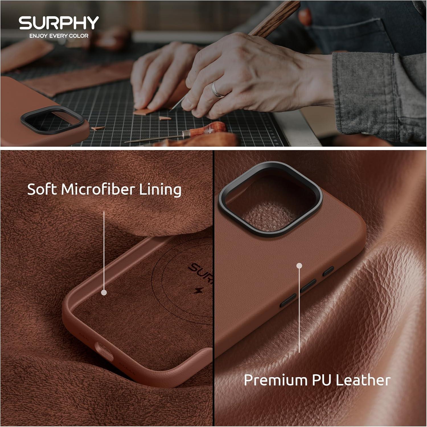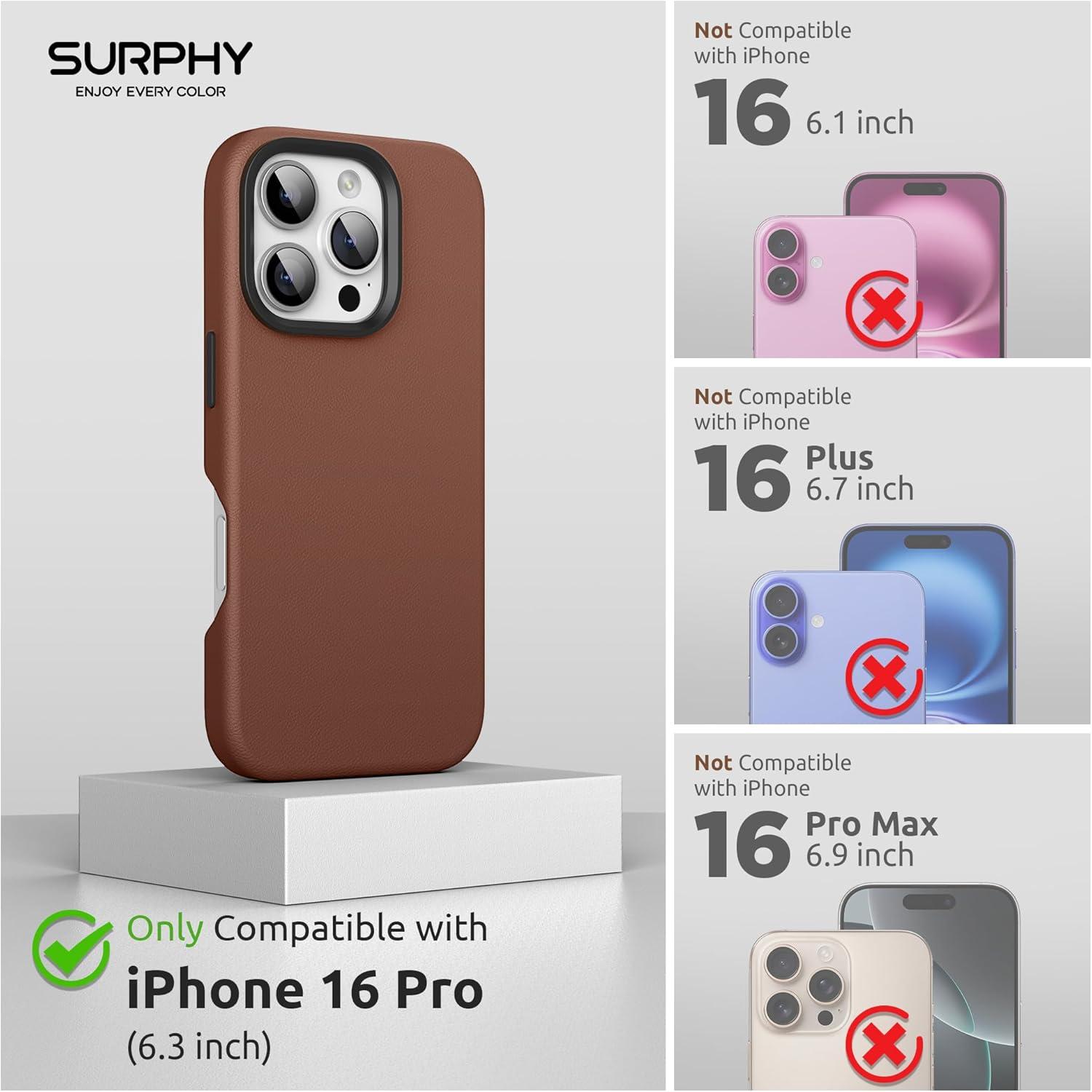 SURPHY Designed for iPhone 16 Pro Leather Case Compatible with MagSafe, Faux Leather Phone Case (Metallic Buttons, Microfiber Lining) for 16 Pro 6.3 inch 2024, Brown(Brown)