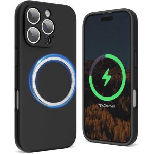 SURPHY Designed for iPhone 16 Case Compatible with MagSafe (6.1 inch 2024), with Screen Protector Liquid Silicone Phone Case (Camera Protective, Soft Microfiber Lining), Black(Black)