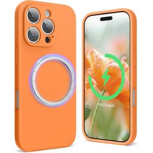 SURPHY Designed for iPhone 16 Case Compatible with MagSafe (6.1 inch 2024), with Screen Protector Liquid Silicone Phone Case (Camera Protective, Soft Microfiber Lining), Black(Marigold Orange)