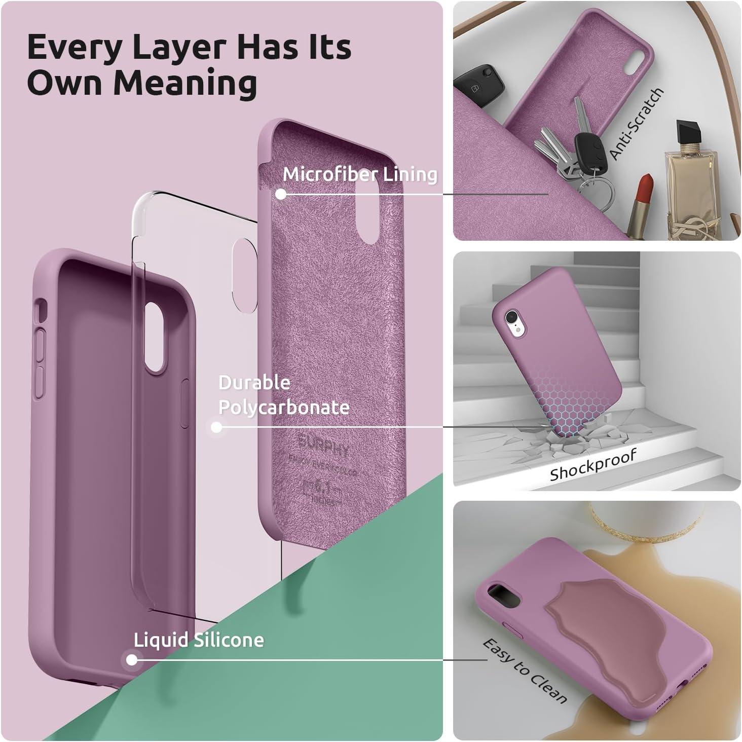 SURPHY Compatible with iPhone XR Case, Thickened Liquid Silicone Phone Case (with Microfiber Lining) for iPhone XR 6.1 inches, Red(Lilac Purple)