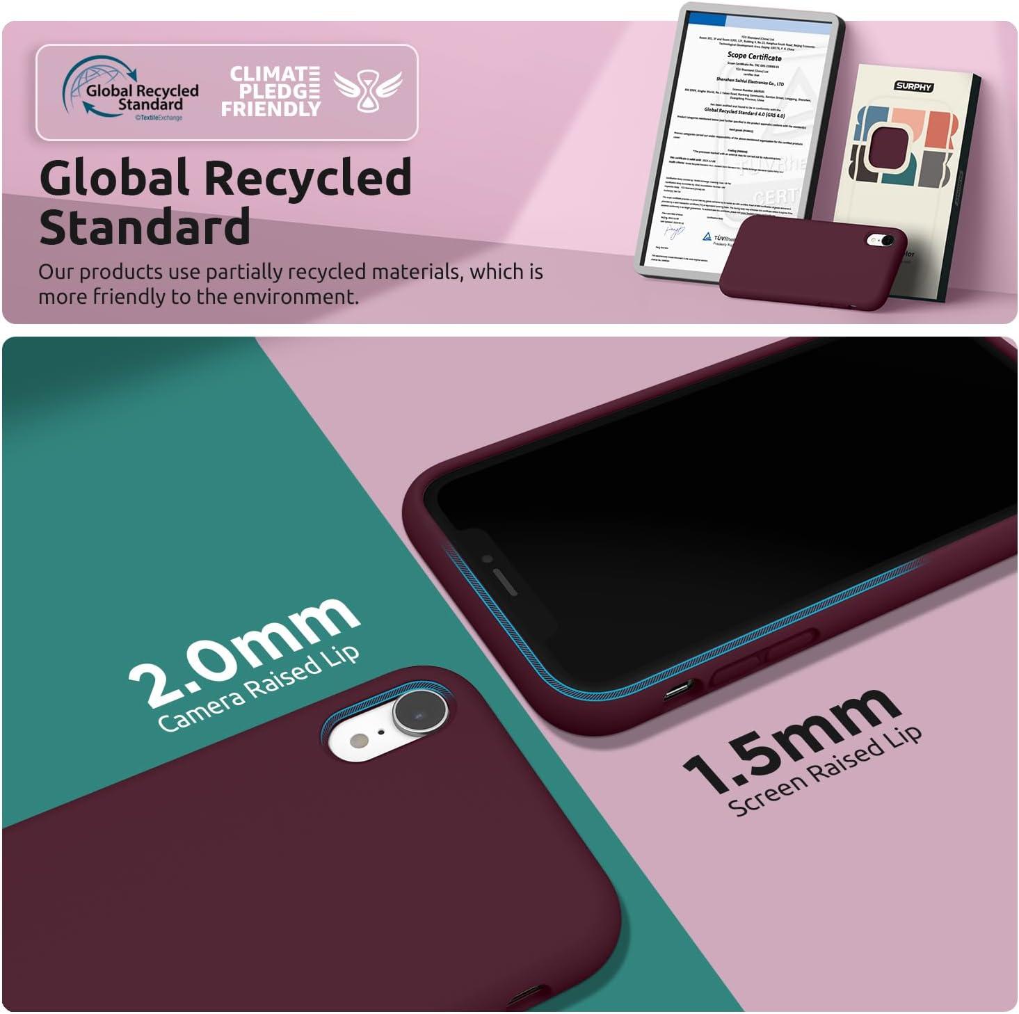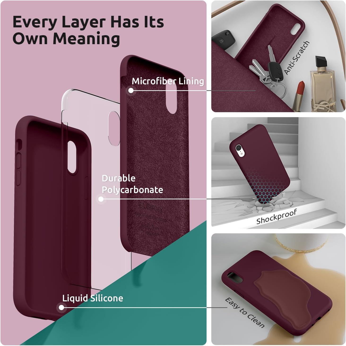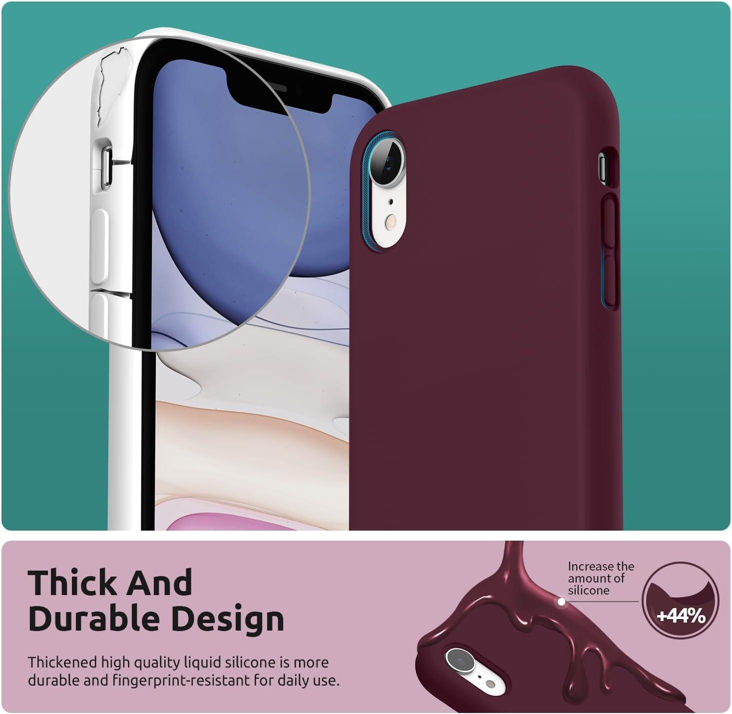 SURPHY Compatible with iPhone XR Case, Thickened Liquid Silicone Phone Case (with Microfiber Lining) for iPhone XR 6.1 inches, Red(Plum)